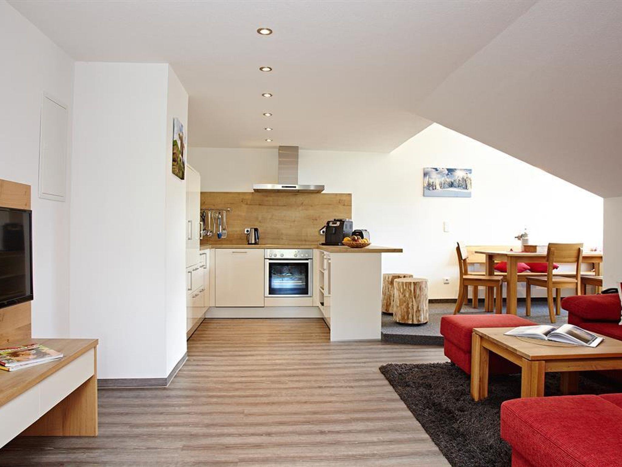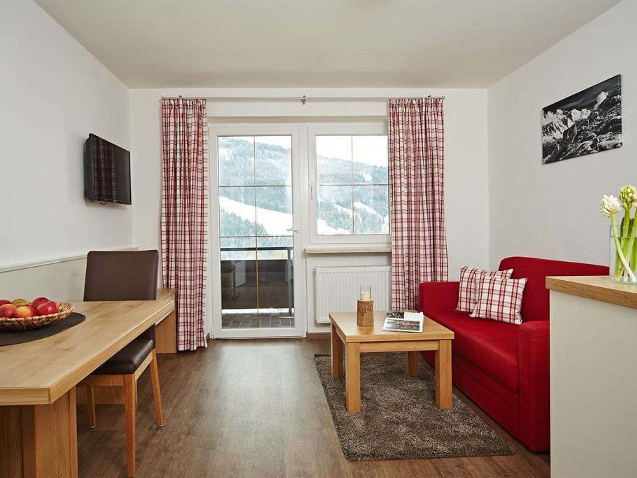 Die allergiefreundliche Wohnung 40m² groß, in der 1. Etage, verfügt über 1 separates Schlafzimmer mit TV und Balkon . Einen gemütlichen Wohn.- und Essbereich mit integr. Küche, sowie einen Südbalkon mit freien, traumhaften Bergblick.