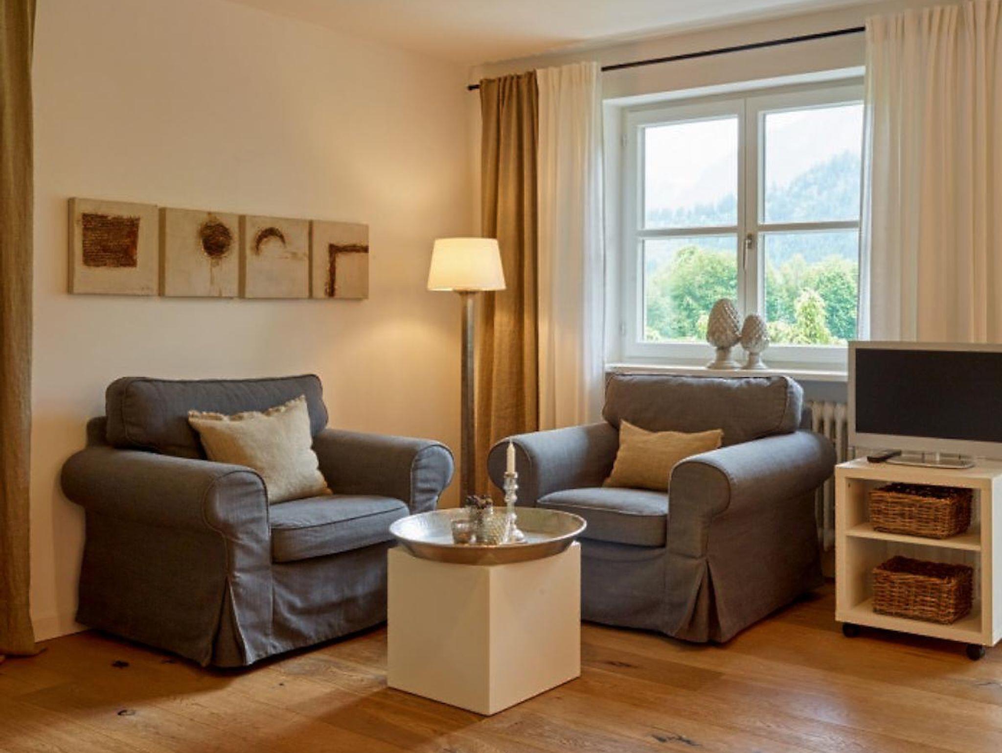 Moderne 2-Zimmer-Wohnung (4 DTV-Sterne, 55 qm) für 1 - 2 Personen mit hochwertiger Ausstattung: Schlafzimmer, Bad, großes Wohn- / Esszimmer mit Küche, TV und WLAN. 2 Balkone mit freiem Blick auf Wiesen und Berge. Gerne können Begleitpersonen ein zusätzliches Doppelzimmer dazubuchen.