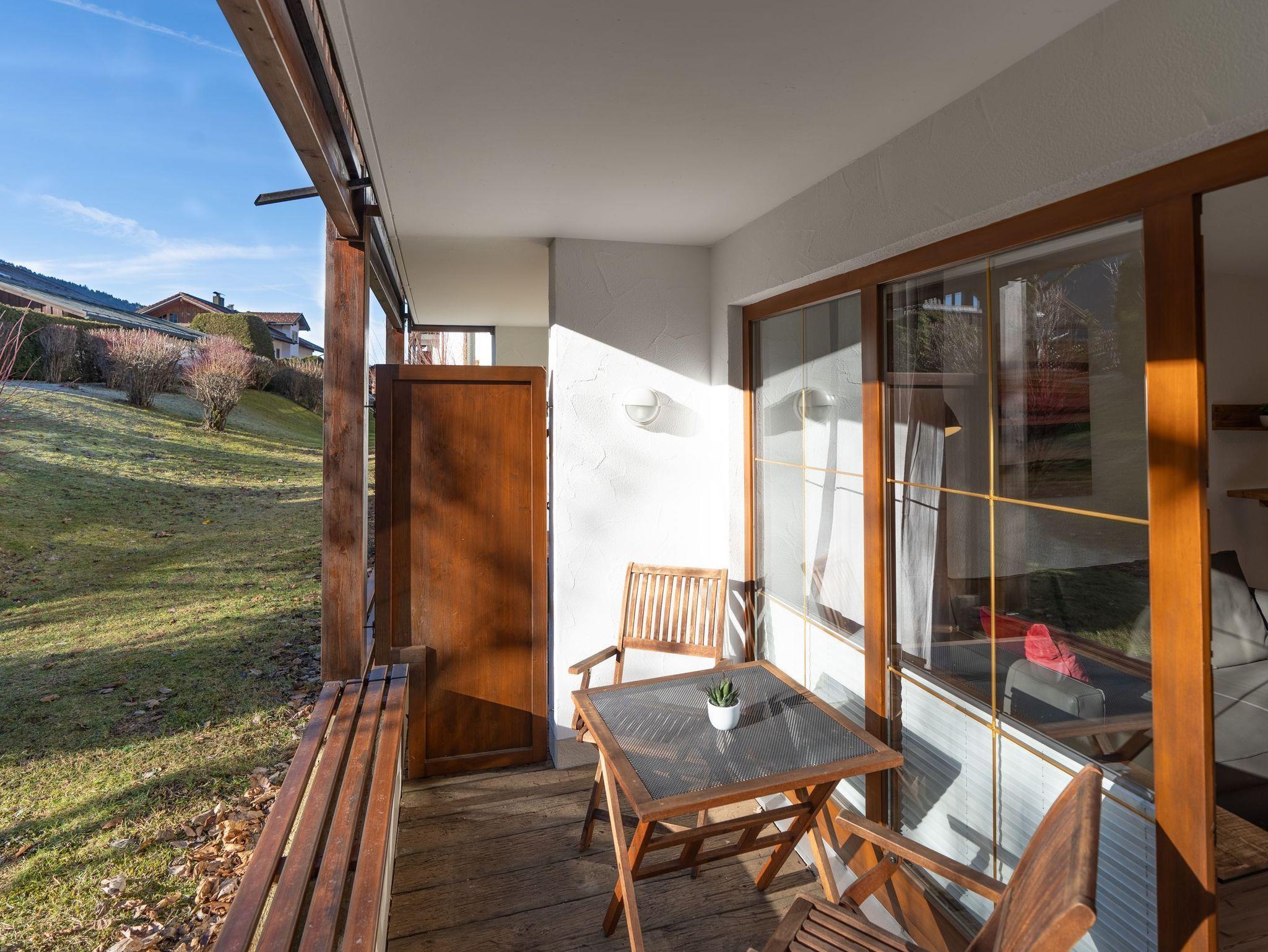 Die Wohnung bietet Ihnen den perfekten Rückzugsort für einen entspannten Urlaub zu zweit oder alleine. Das Einzimmerappartement verfügt über einen kombinierten Wohn-/Schlafraum mit einem bequemen Dauerschläfersofa und eine kleine offene Küche, die mit allem Wichtigen ausgestattet ist. Das moderne Badezimmer bietet Ihnen eine Badewanne mit Dusche, ein Waschbecken und ein WC. Genießen Sie den herrlichen Bergblick auf der Terrasse und verbringen Sie angenehme Stunden im Freien.
