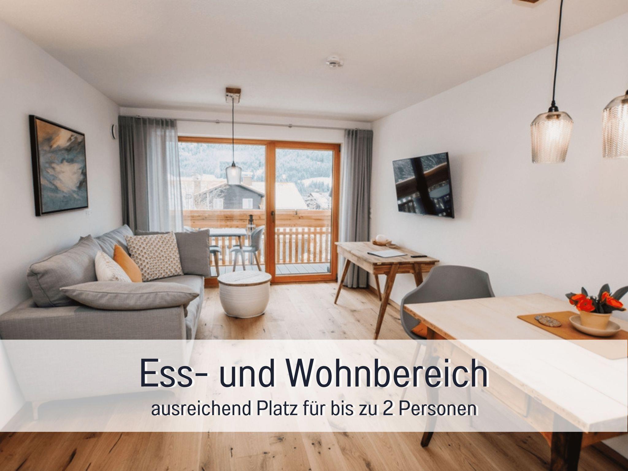 • vollausgestattete, moderne Küchenzeile, Esstisch und Couch