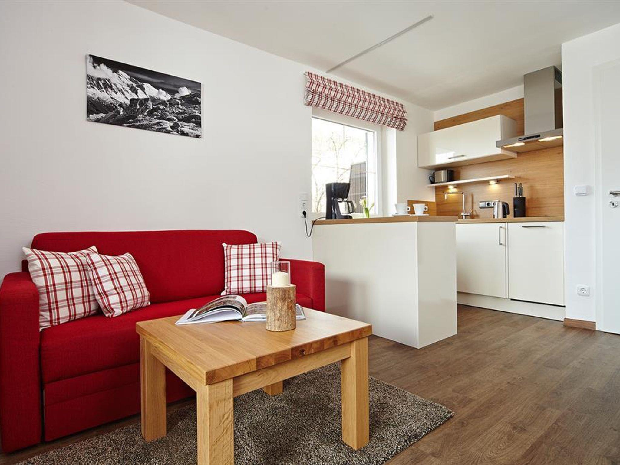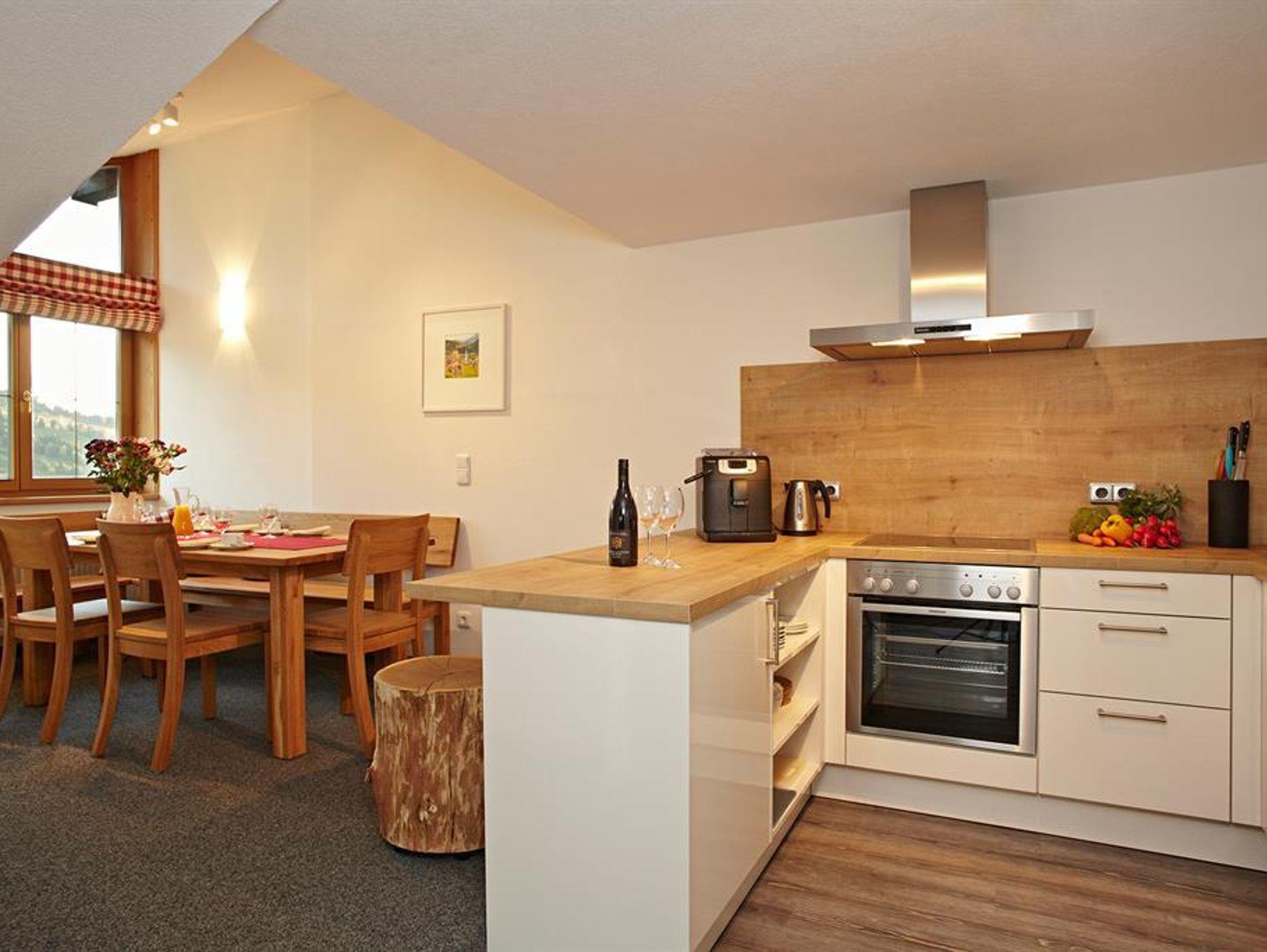Die offene Küche mit gemütlicher Essecke ist komplett ausgestatte.