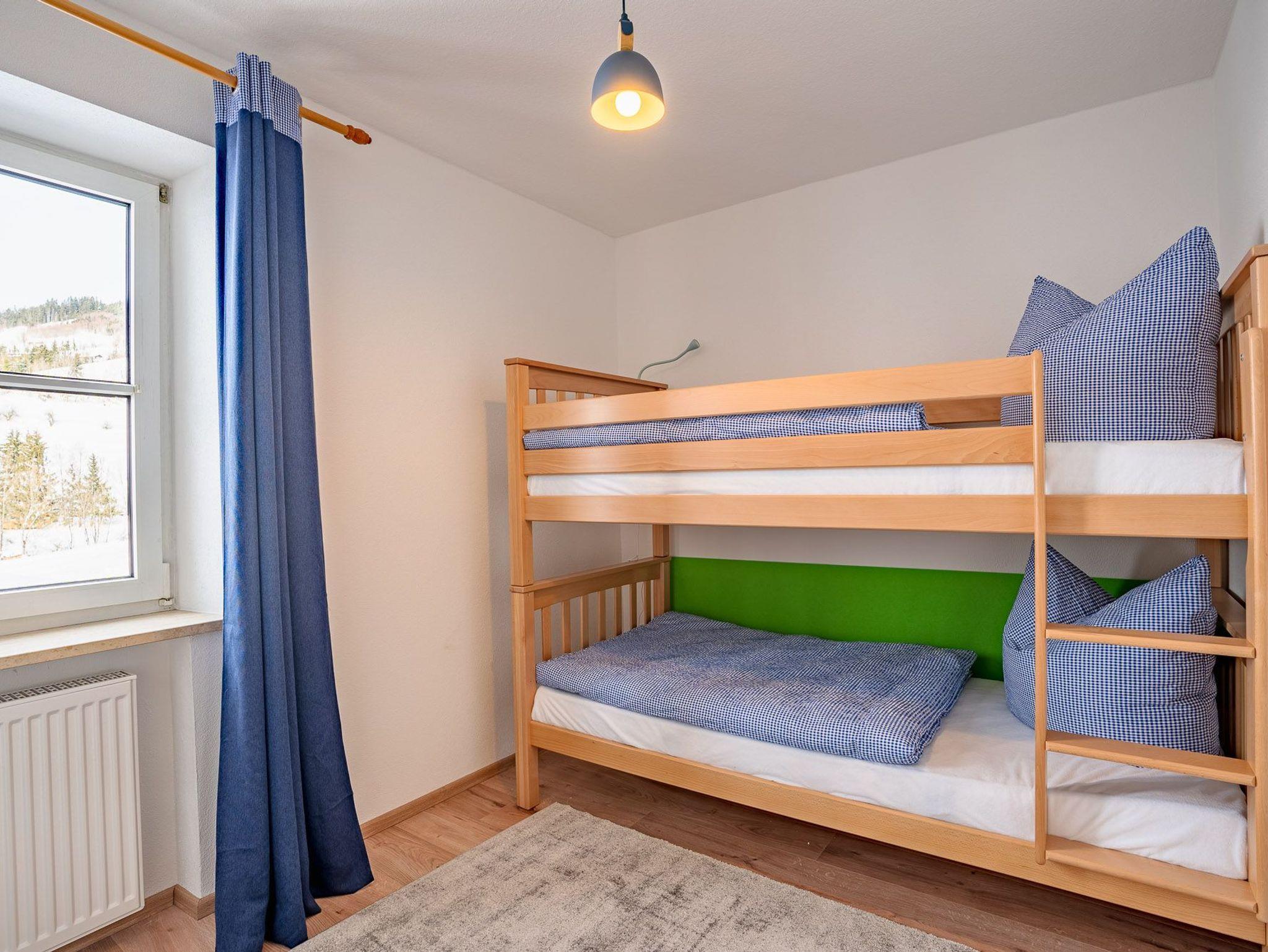 Im 1. Schlafzimmer befinden sich ein Doppelbett und ein Kleiderschrank, der ausreichend Platz für Ihre Urlaubsgarderobe bietet. Das 2. Schlafzimmer ist mit einem Etagenbett ausgestattet.