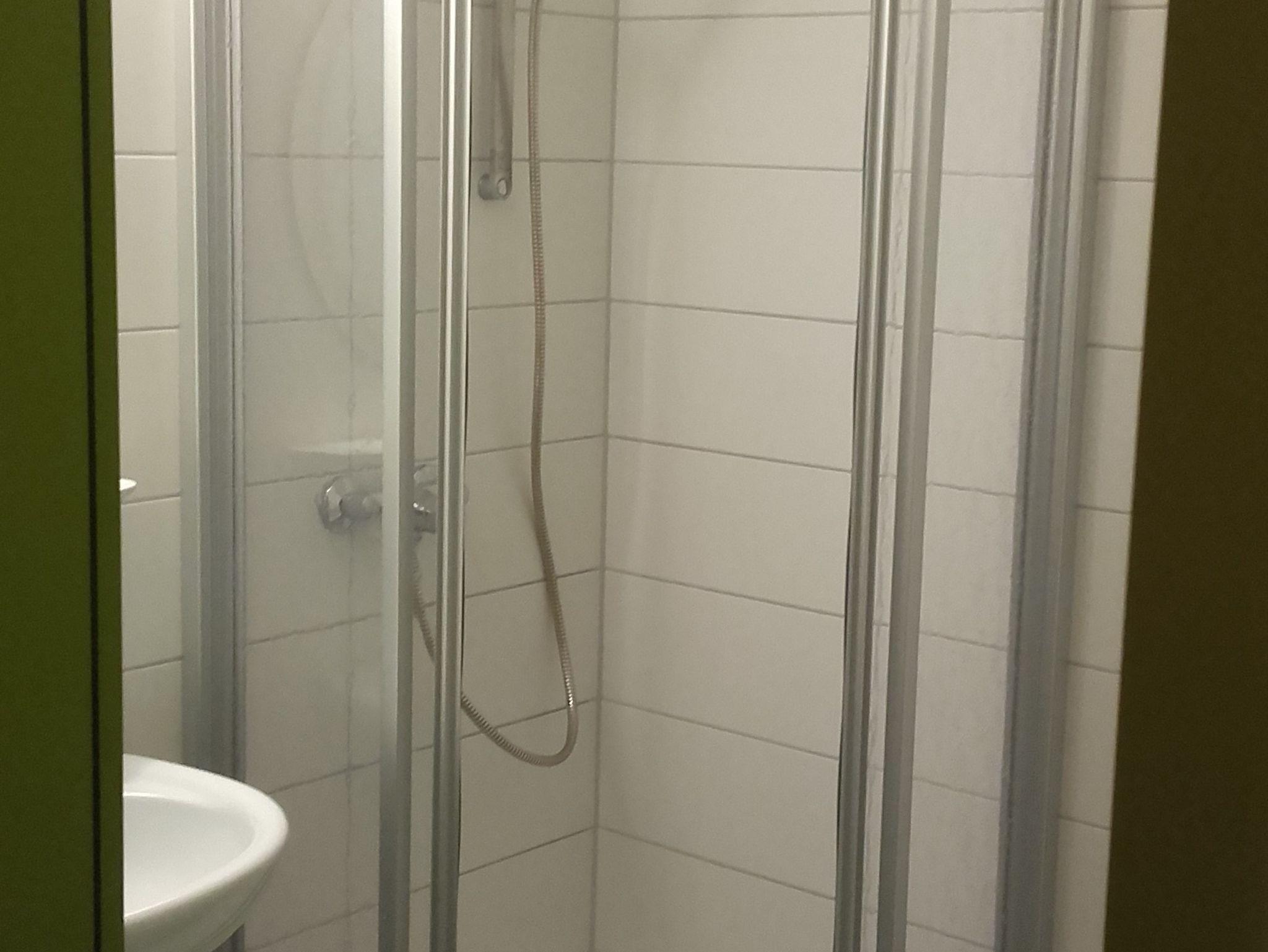 Das 3-Raum-Apartment erstreckt sich auf 60m² und beinhaltet zwei Schlafräume, zwei Badezimmer, ein Wohnzimmer und eine separate Kochnische. Der Schlafraum 1 ist ausgestattet mit einem Doppelbett, 2 Nachttischen sowie einem Kleiderschrank und einem Sideboard. Ein direkter Zugang zum Balkon ist durch eine Balkontüre möglich. Direkt neben dem Schlafraum befinden sich das Wohnzimmer und das Badezimmer. Im Badezimmer befindet sich eine Dusche ein WC und ein Waschbecken.
