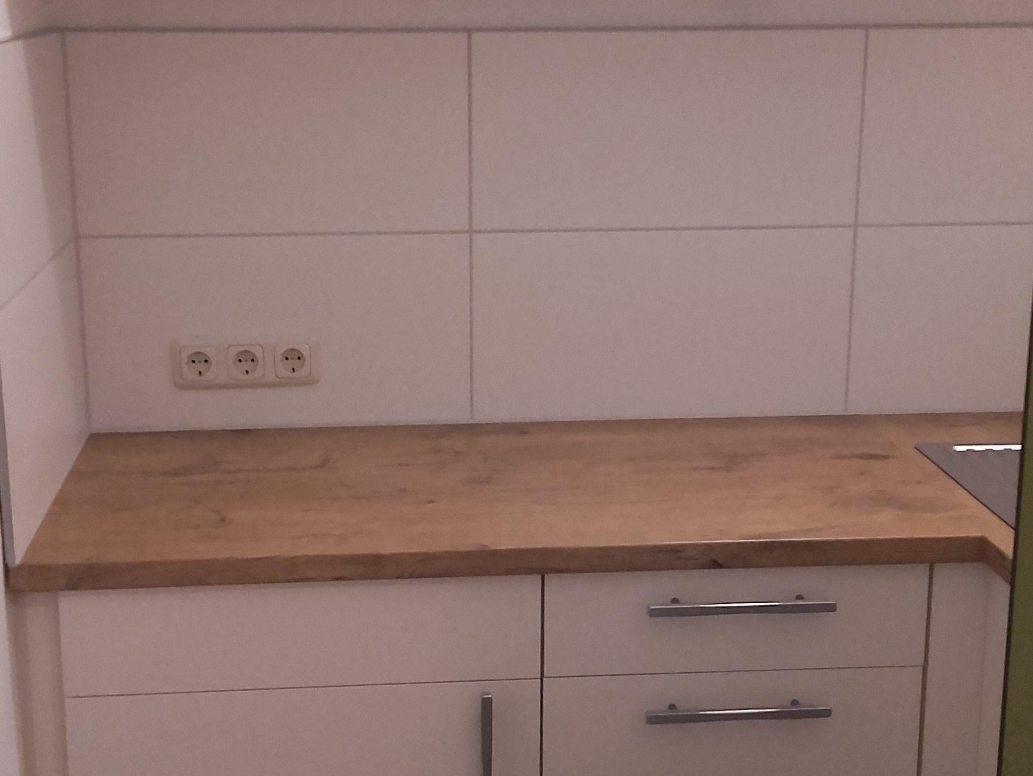 Das Wohnzimmer, bestehend aus einem Wandschrank mit Flachbildfernseher sowie einem Esstisch mit Sitzgelegenheit, verfügt über einen LAN- Anschluss. Des Weiteren ist W-LAN frei verfügbar. Auch vom Wohnzimmer ausgehend kann man direkt auf den Balkon.