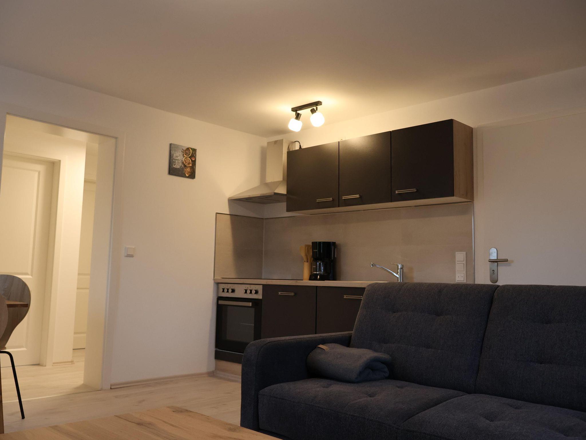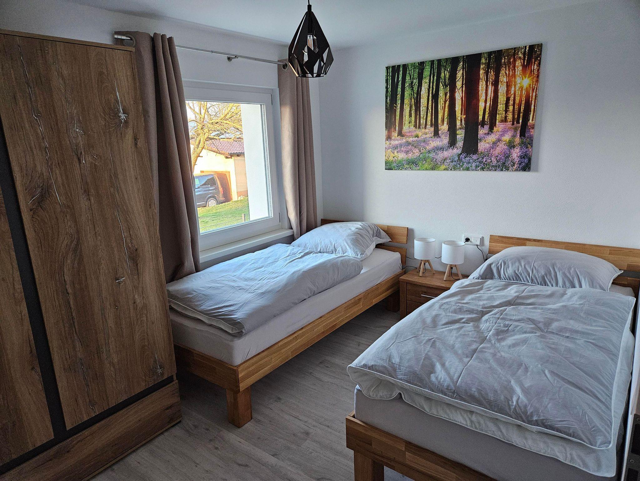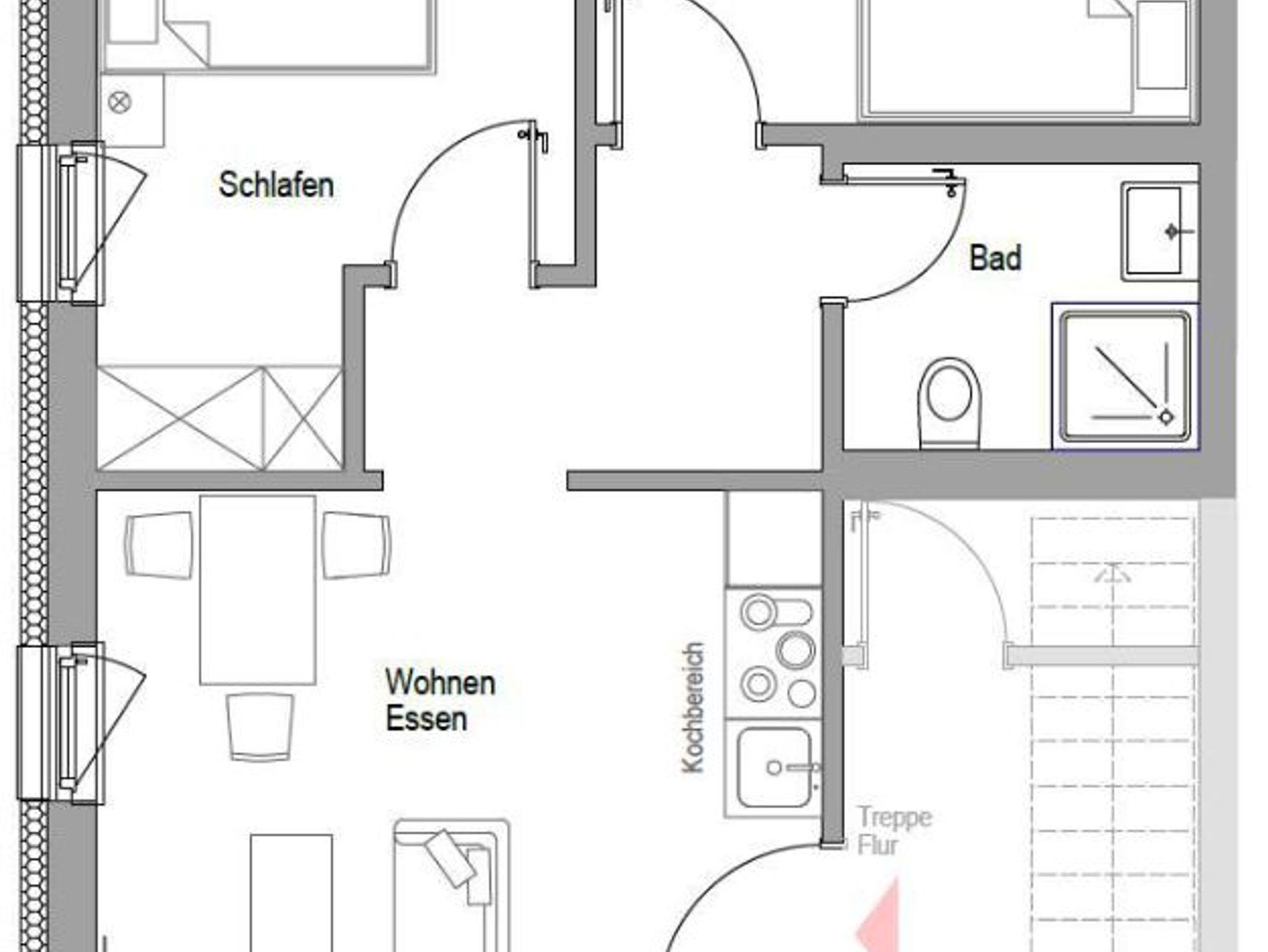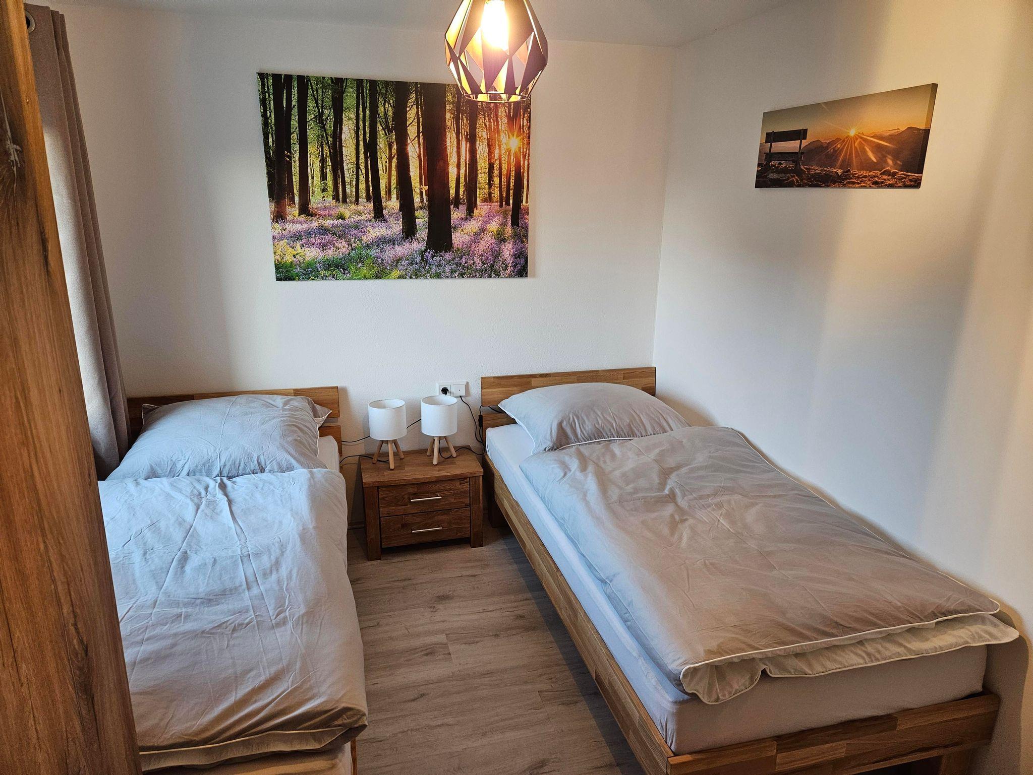 Unsere neue Ferienwohnung mit 50 m² Wohnfläche bietet im Erdgeschoss mit Gartenblick Platz für 1-4 Personen. Die gemütliche Wohnküche mit Sofa und Flachbild-TV lädt zum Verweilen ein. Die komplett ausgestattete Küchenzeile mit Geschirrspüler, Kühlschrank inkl. Gefrierfach, Herd, Backofen, Mikrowelle, Wasserkocher, Toaster und Kaffeemaschine lässt keine Wünsche offen. Die Ferienwohnung verfügt über zwei separate Schlafzimmer mit einem Doppelbett und zwei Einzelbetten. Das Badezimmer mit ebenerdiger Dusche, WC, Waschtisch und Handtuchtrockner rundet das Gesamtbild ab. Vor allem im Sommer können Sie entspannte Grillabende in unserem Garten verbringen. Bitte beachten Sie, dass keine Haustiere erlaubt sind. Das WLAN und den Parkplatz vor dem Haus können Sie kostenfrei nutzen.