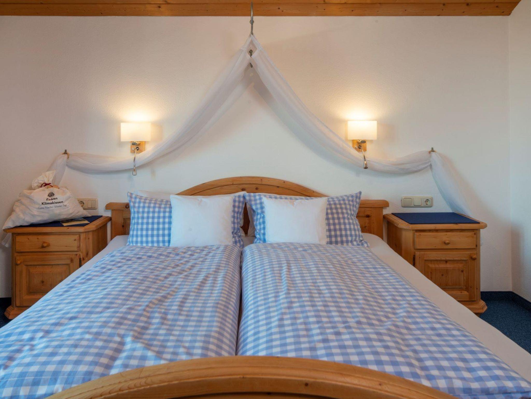 • Schlafzimmer mit Zirbenholz-Klimakissen für einen guten Schlaf