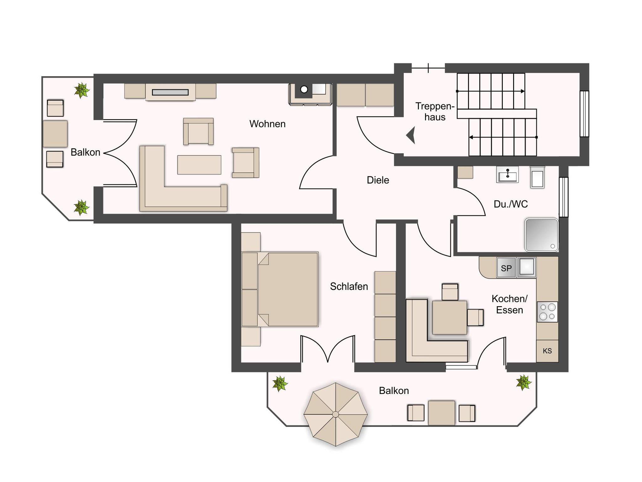 • bezogene Betten, ausreichend Hand- Bade- Geschirrtücher