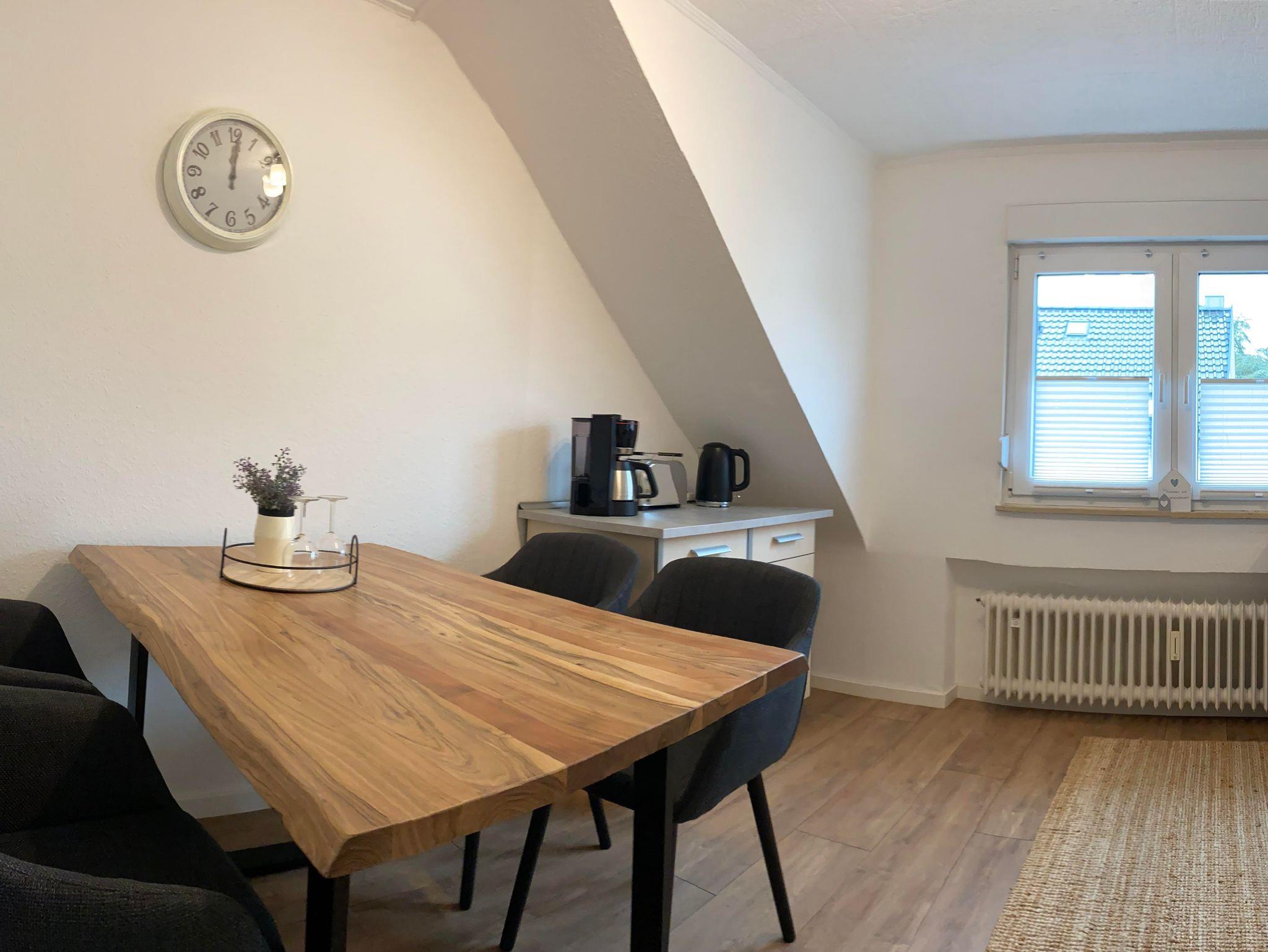 Im Wohnzimmer kann man nach einem langen Tag wunderbar den Tag ausklingen lassen und auf der komfortablen Schlafcouch oder dem dazugehörigen Sessel die Beine baumeln lassen, um gemeinsam die Eindrücke des Tages Revue passieren lassen . Ein Smart TV steht für Ihre eigene Zugänge bereit. Die ausziehbare Schlafcouch bietet darüber hinaus ein bequemes zweites Nachlager für weitere 1-2 Personen. Die Couch ist 1,40m x 2 m und hat eine durchgängige Matraze. Dadurch kann ein seperates Wohn-Schlafzimmer entstehen. Zum Streamen steht kostenlos ein Wlan zur Verfügung. Gerne können Sie auf Nachfrage ein zusätzliches, separates Zimmer buchen, wenn Sie lieber ein weiteres Schlafzimmer möchten statt der Schlafmöglicherkeit auf der Couch. Fragen Sie bitte unser Jokerzimmer gezielt an. Dieses befindet sich auf der 1. Etage als Zusatzraum.