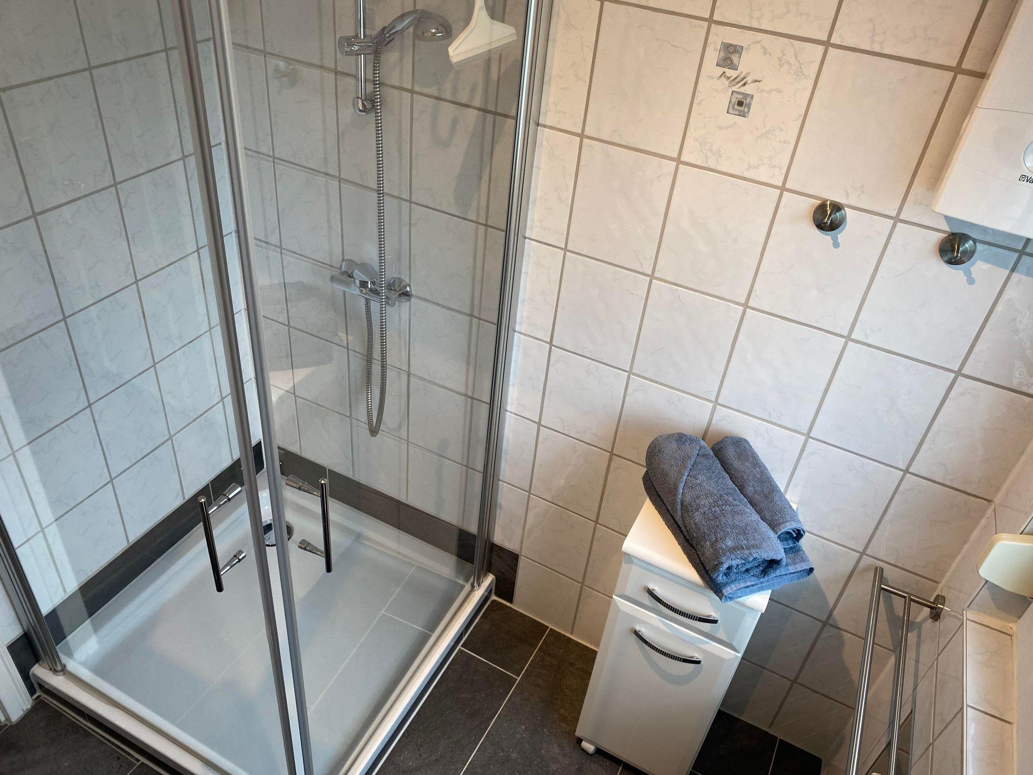 Das Badezimmer mit Tageslicht bietet neben WC und Waschbecken auch eine Dusche, um sich den Staub von Anreise und Ausflügen bei ihrem Aufenthalt in Bad Neuenahr abzuwaschen und sich für den kommenden Tag wieder frisch zu machen. Alle sanitären Elemente in unserer Ferienwohnung in Bad Neuenahr sind modernisiert.