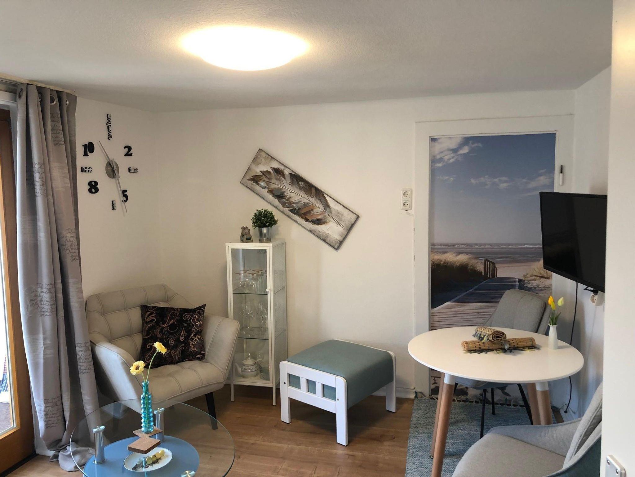Das 2-Raum Appartement Nr. 12 liegt in der 2. Etage und verfügt über ein Schlafzimmer mit Doppelbett, einen Wohnraum, einen Essplatz, eine kleine Küche mit Geschirrspüler, ein Badezimmer mit Du/WC, Badewanne und einen Balkon mit Gartenmöbeln. TV im Wohnzimmer und auch im Schlafzimmer bieten Abwechslung. Das Appartement wurde Anfang 2022 fertiggestellt und ist komplett neu eingerichtet. Es besticht durch seine behagliche Atmospähre und der mit sehr viel Liebe zum Detail gewählten Einrichtung. Der Balkon ist überdacht und kann daher auch bei einem leichten Sommerabend genutzt werden. Ideal für einen Kur- oder Urlaubsaufenthalt oder auch für eine längere Geschäftsreise gibt es im Appartementhaus Blume eine Waschmaschine sowie einen Trockner zur eigenen Benutzung gegen eine kleine Gebühr. Ihr Auto steht auf den hauseigenen Parkplätzen entweder direkt am oder hinter dem Haus.