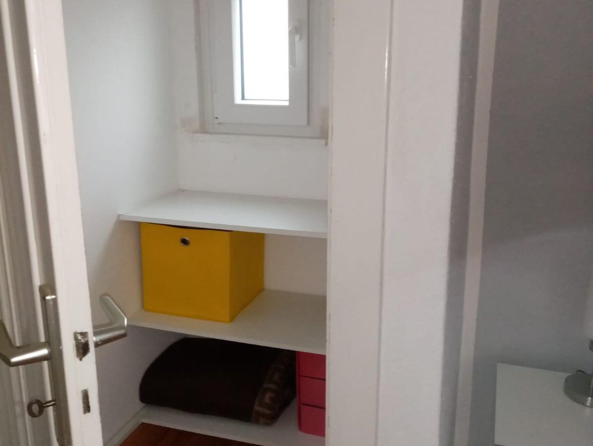 Das Bett befindet sich in einem separaten angrenzendem Raum mit einem Waschbecken, von dem auch das kleine Duschbad/WC erreichbar ist. Ein kleiner Einbauschrank bietet zusätzliche Möglichkeit eigene Sachen gut zu verstauen.
