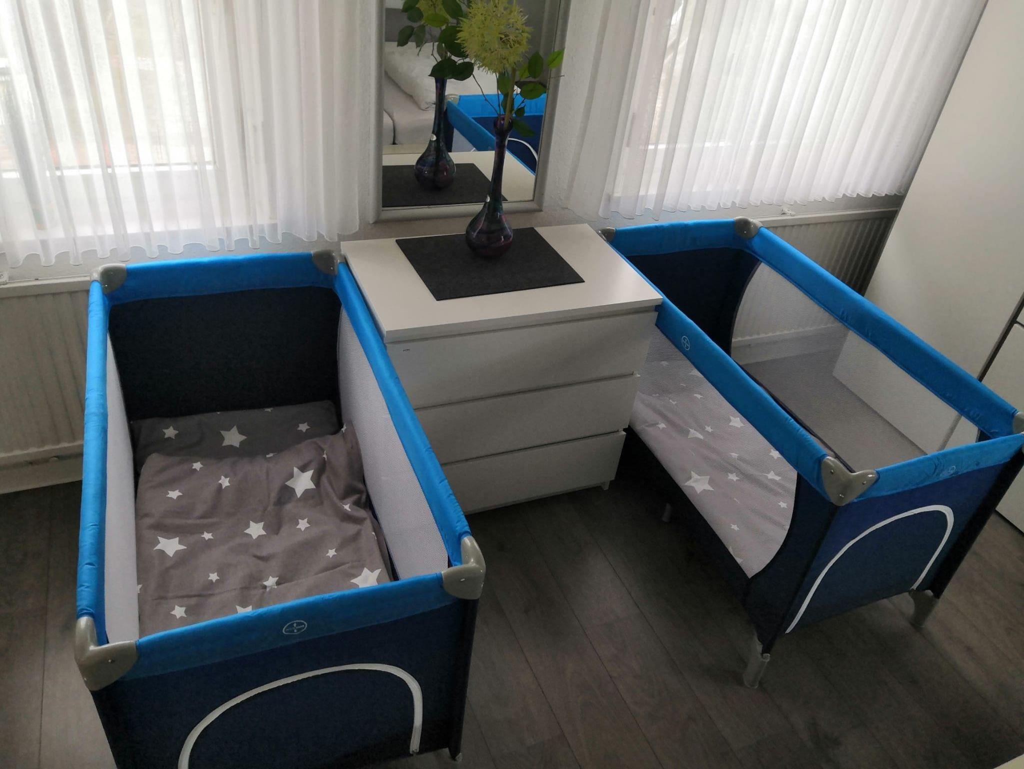 Ausstattung, Balkone in oberen Etagen, idyllischer Hof mit Grillmöglichkeiten und schöne Terrasse vor dem Haus sind sehr beliebt. Baby-Reisebett mit Bettwäsche und ein