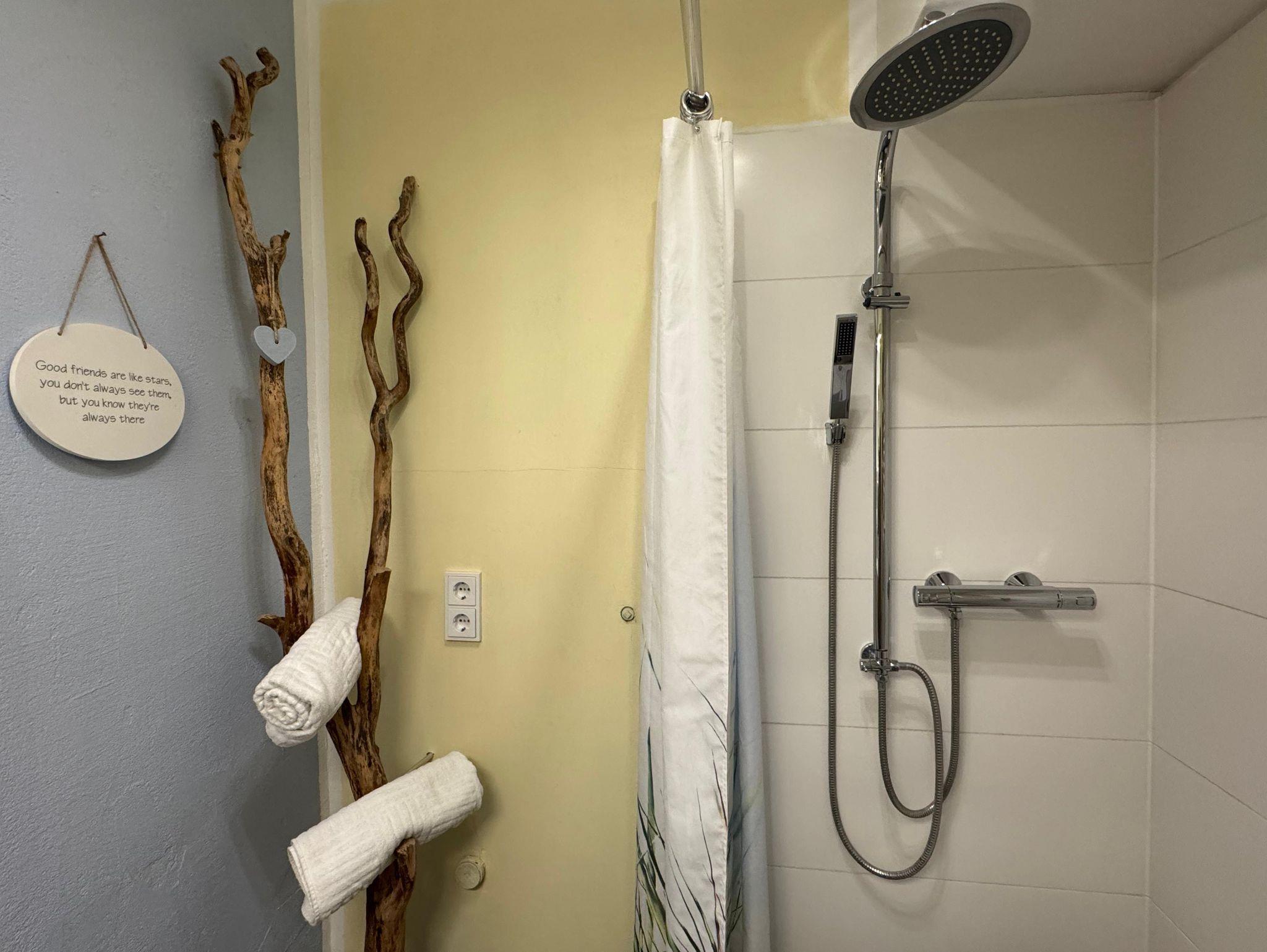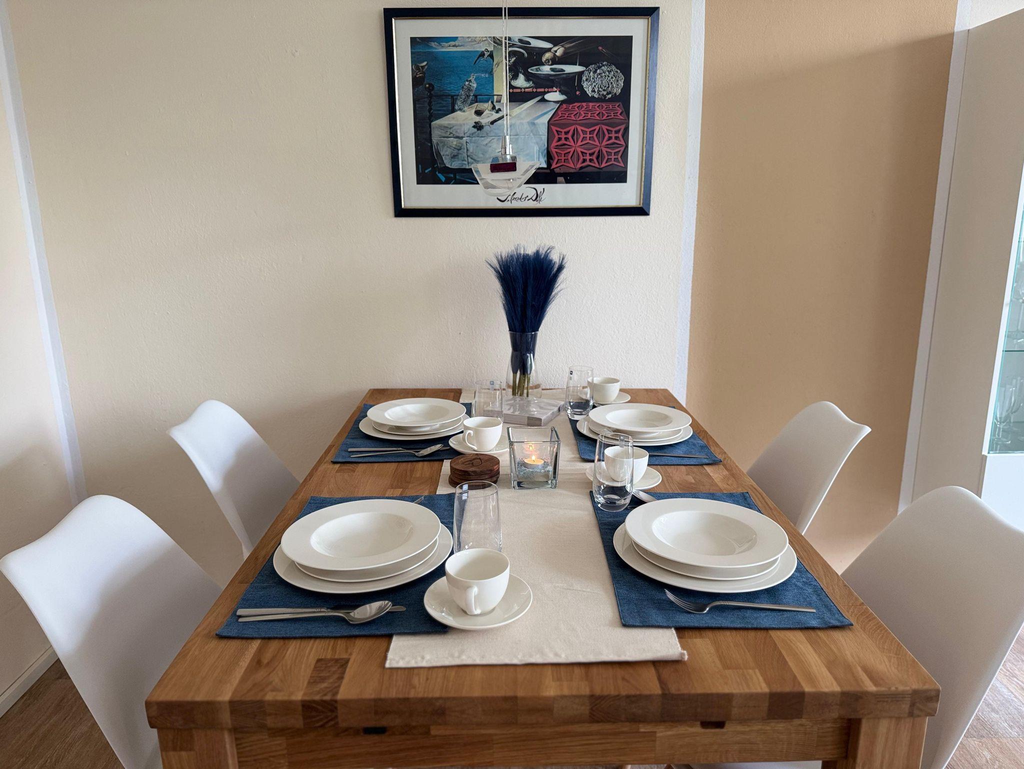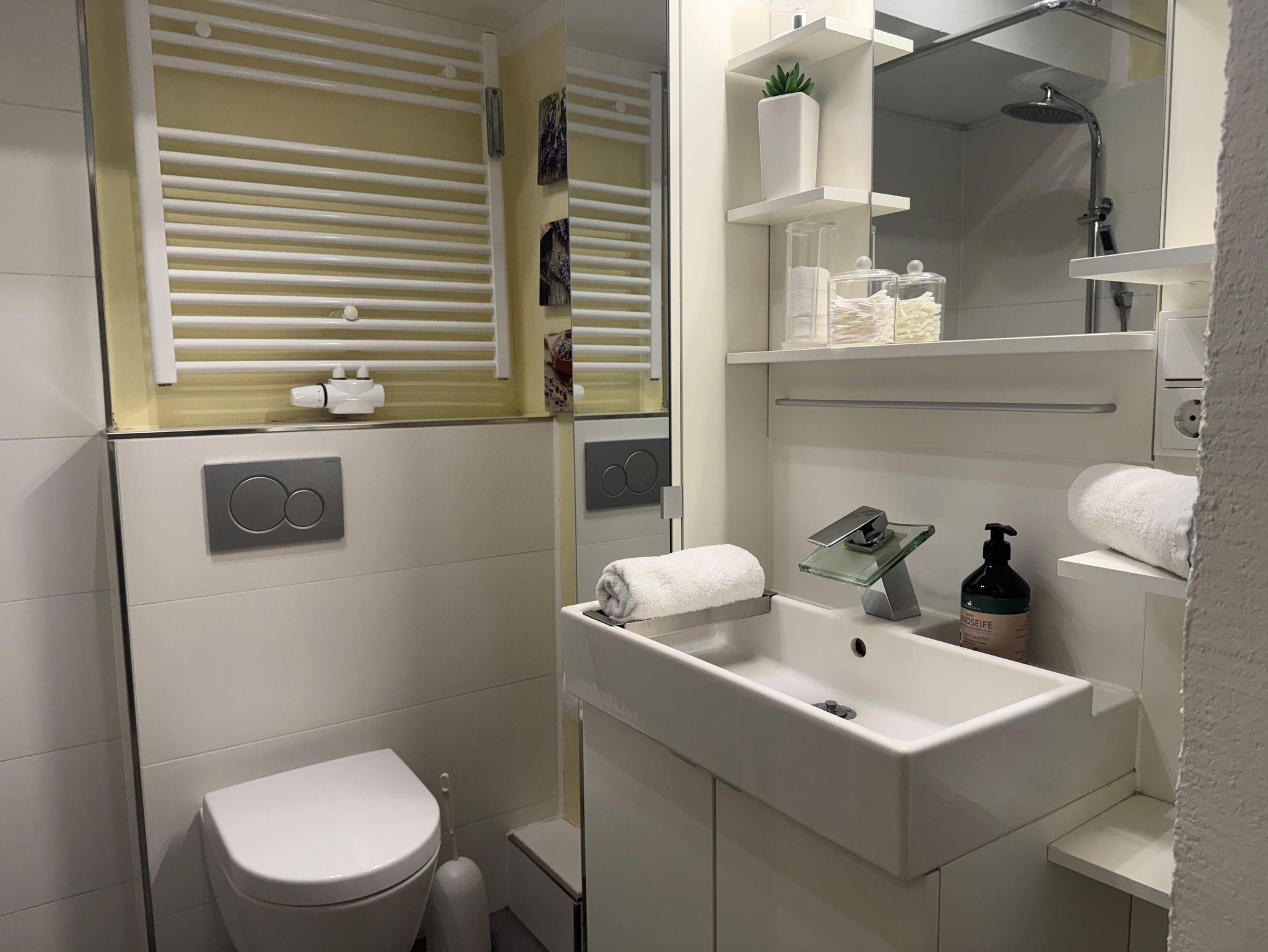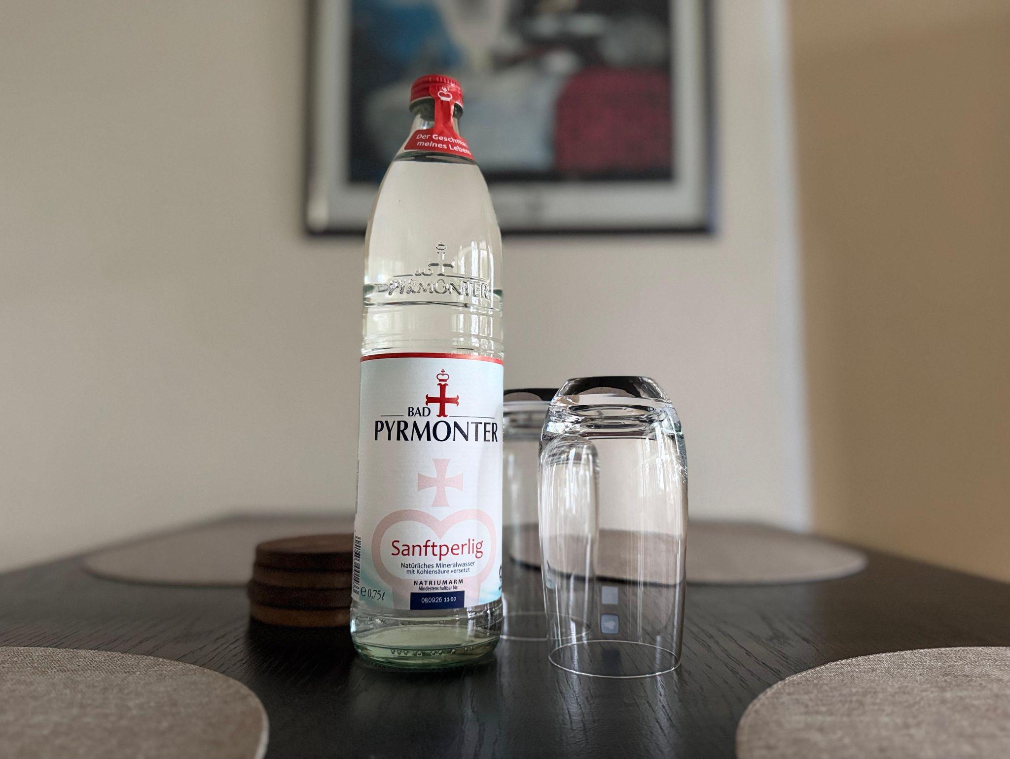 Die moderne Ferienwohnung lädt mit seinem modernen und komfortablen Charme zur Erholung ein. Vergessen Sie in der gemütlichen und mit Liebe zum Detail eingerichteten Wohnung den Alltag oder erholen Sie sich von Ihren Aktivitäten in und um Bad Pyrmont. Ein Komfort-Boxspringbett lädt zum Träumen ein und in dem großen Kleiderschrank und einer Kommode haben Sie viel Platz zum Verstauen Ihrer Garderobe. Zwei große Smart TVs befinden sich im Wohnbereich und im Schlafzimmer. Kostenloses Internet / WLAN rundet das Angebot ab. In der geräumigen Küche befinden sich ein Kühlschrank, Geschirrspüler, Ceranherd mit Backofen, Wasserkocher, Kaffeemaschine, hochwertiges Porzellan, Besteck, Gläser, Töpfe und Pfannen, sowie Grundgewürze, Kaffee und Tee. Im hochmodernen Dusche/WC-Bad befinden sich eine bodenebene Rain-Shower-Dusche mit separater Handbrause, Seife und Shampoo, ein Fön und ein Verbandsset sowie eine moderne Kunstinstallation für Ihre Handtücher. Wir stellen Ihnen Hand- und Badetücher, Geschirrtücher, sowie sämtliche Hygienepapiere zur Verfügung. Der Wohn- und Essbereich bietet genügend Platz zur Entspannung und besticht durch sein sonnendurchflutetes Flair. Eine gemütliche Sitzgruppe und ein robuster Esstisch aus Eiche laden dazu ein, Mahlzeiten in entspannter Atmosphäre zu genießen. Geschmackvolle Ölbilder und Accessoires komplettieren den Gesamteindruck und unterstreichen das gemütliche Ambiente. Genießen Sie die Natur mitten in der Stadt und trotzdem im Grünen, auf der ruhigen und überdachten Terrasse auf bequemen Teakholzmöbeln. Sie finden bei uns Bettwäsche, Handtücher, Badetücher, Hygienepapiere, Seife, Shampo, Duschgel und noch vieles mehr vor. Das 62 qm große Apartment zeichnet sich durch seine zentrale Lage innerhalb von Bad Pyrmont aus. Durch die Hanglange bedingt, geht es erst einmal „abwärts“ für Sie, da sich das Apartment im zweiten Hausbereich im Parterre befindet. Sie gelangen über den Fahrstuhl oder eine Treppe hinab. Nun trennen Sie lediglich noch drei gut begehbare Treppenstufen von Ihrem Feriendomizil.