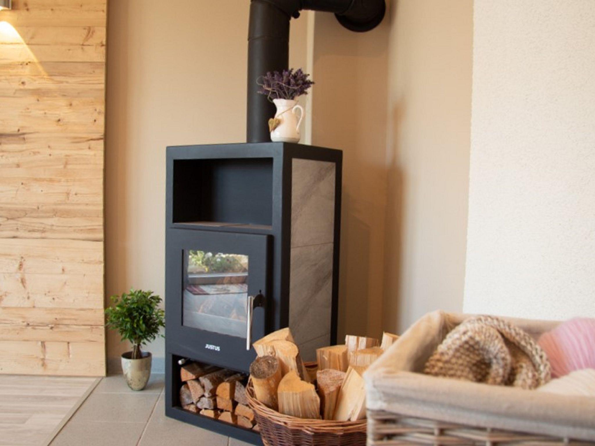 Der Kaminofen sorgt nicht nur für wohlige Wärme, sondern auch für eine besonders heimelige Stimmung, ideal für entspannte Abende.