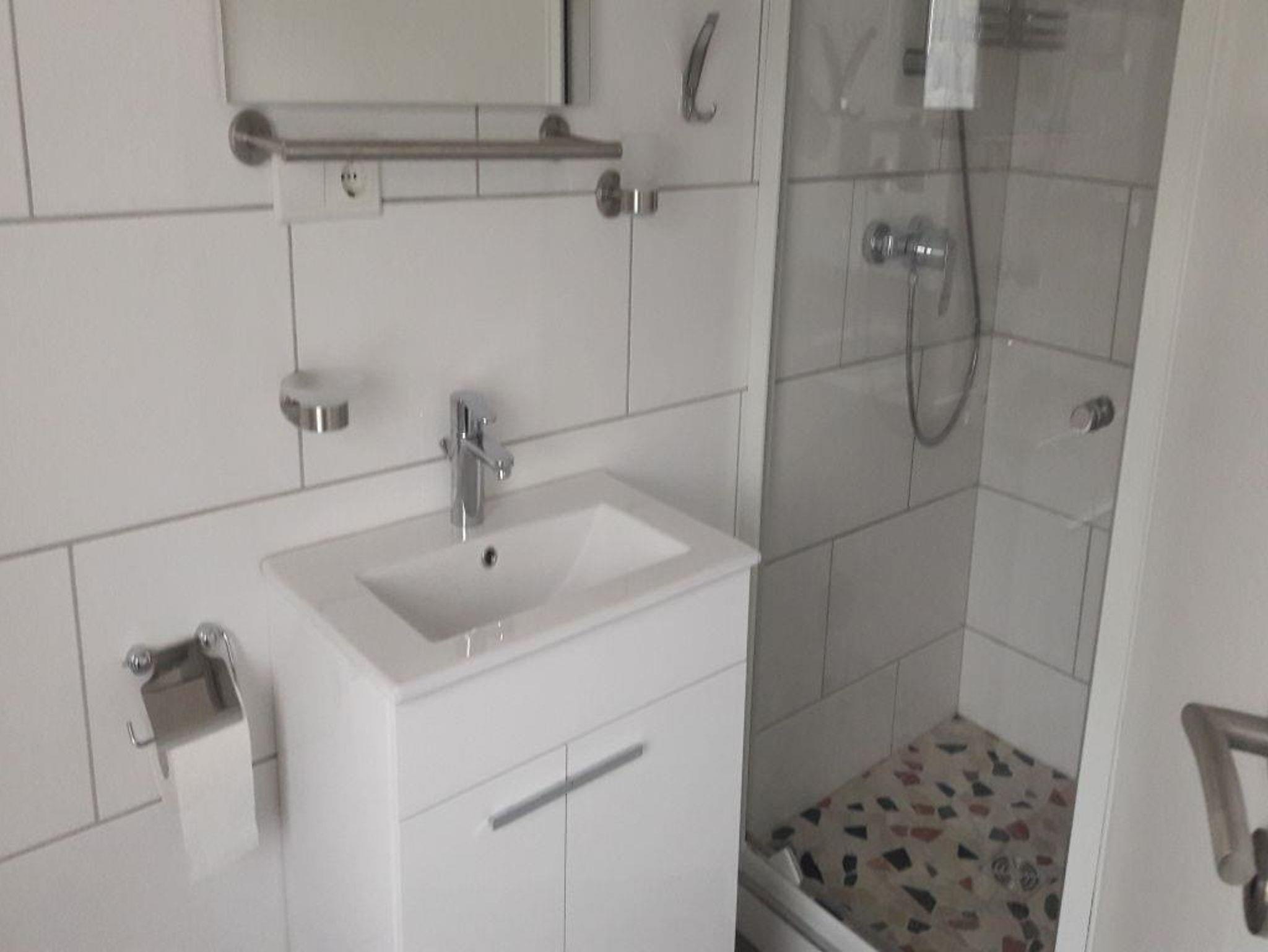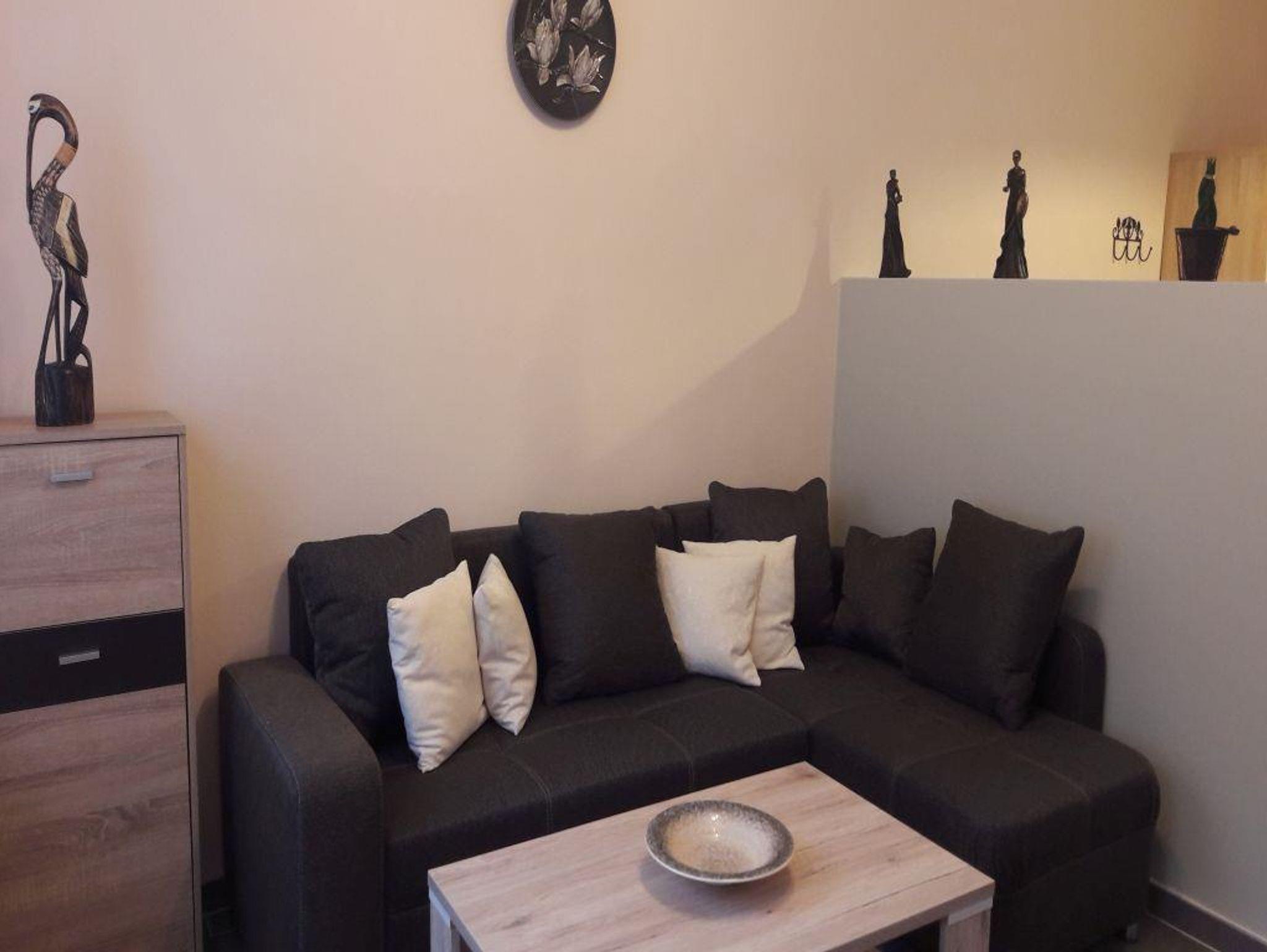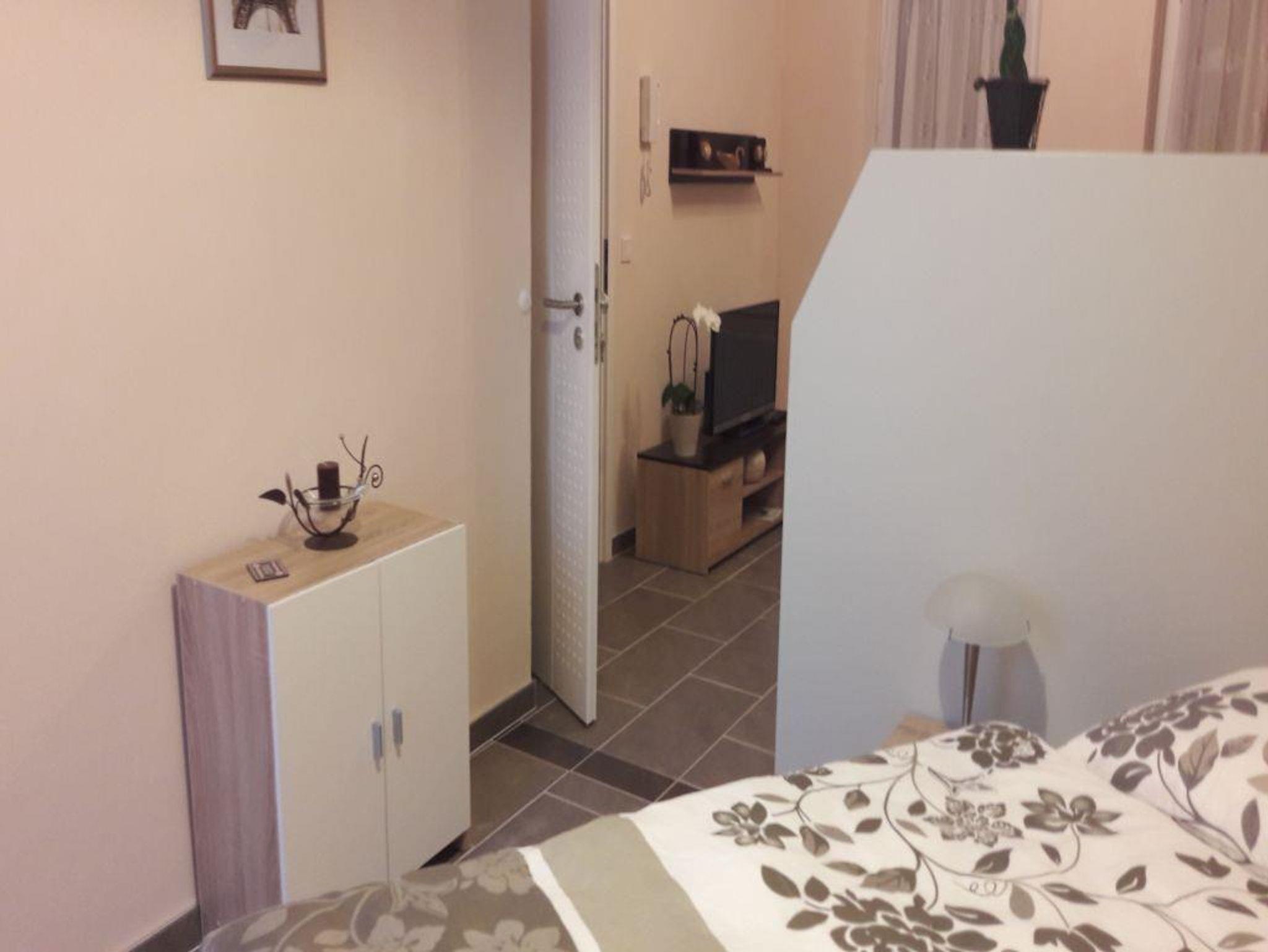 Wohnbereich mit Doppelschlafcouch und TV, Schlafbereich mit 1 Einzelbett sowie Kochnische und Bad mit Dusche und WC, WLAN Terrasse und Gartennutzung.