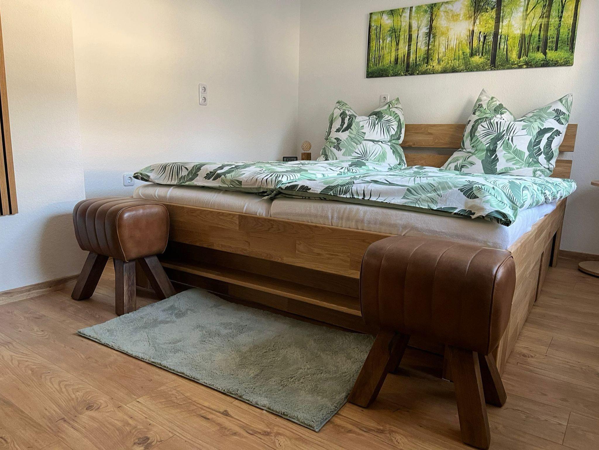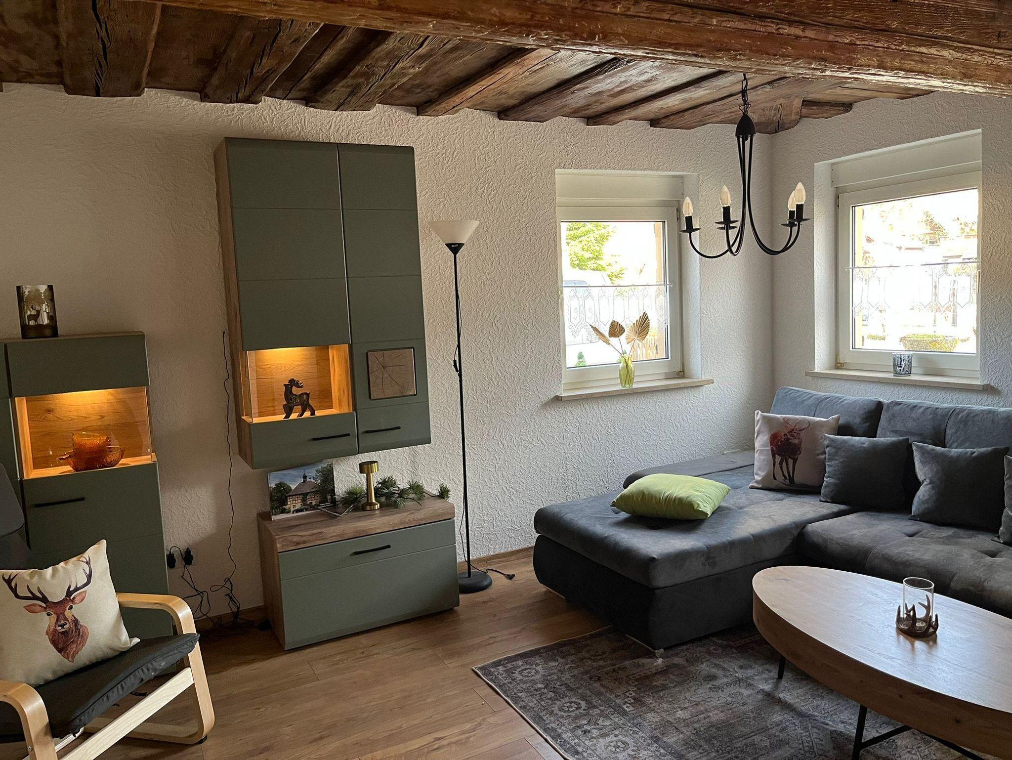 Unsere Ferienwohnung heißt sie mit moderner Einrichtung genauso willkommen, wie mit den alterstypischen Merkmalen unseres schönen Hauses. Alte, würdevolle Decken, knarzende Balken und großzügig geschnittene Wohnräume laden zum verweilen ein. Das Thema Natur wurde aufgegriffen und zieht sich, wie ein roter Faden durch die Zimmer.