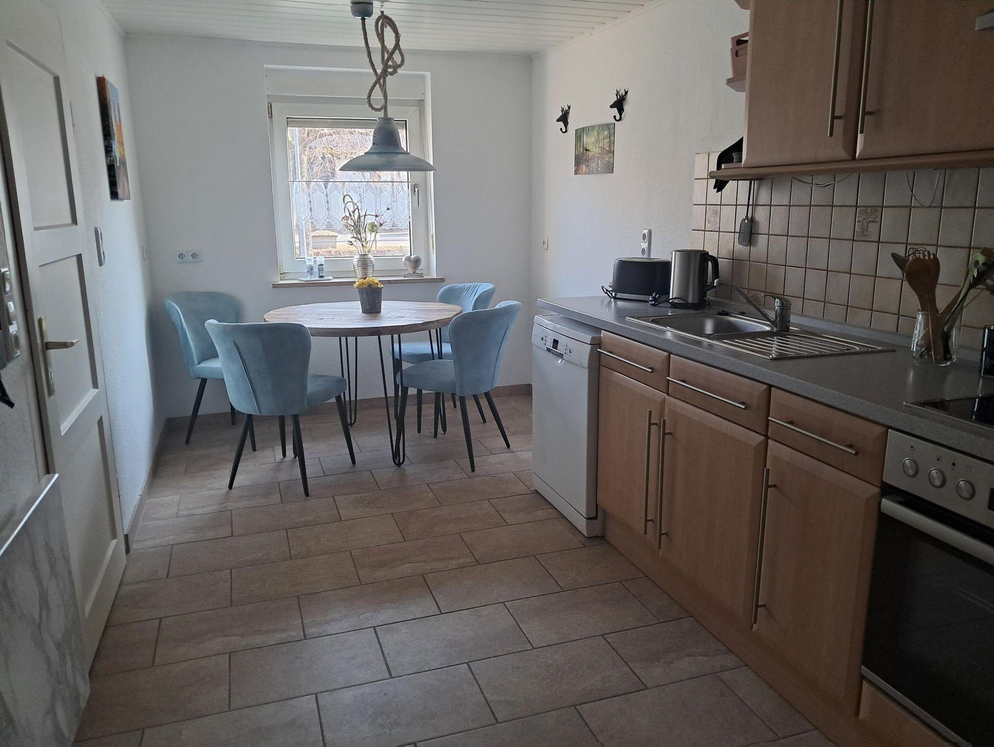 Im Wohnzimmer können sie sich nach einem erlebnisreichen Urlaubstag entspannen und in der Küche finden sie alles vor, was sie zum Kochen benötigen, während sie durchs Fenster auf den Staffelberg schauen.