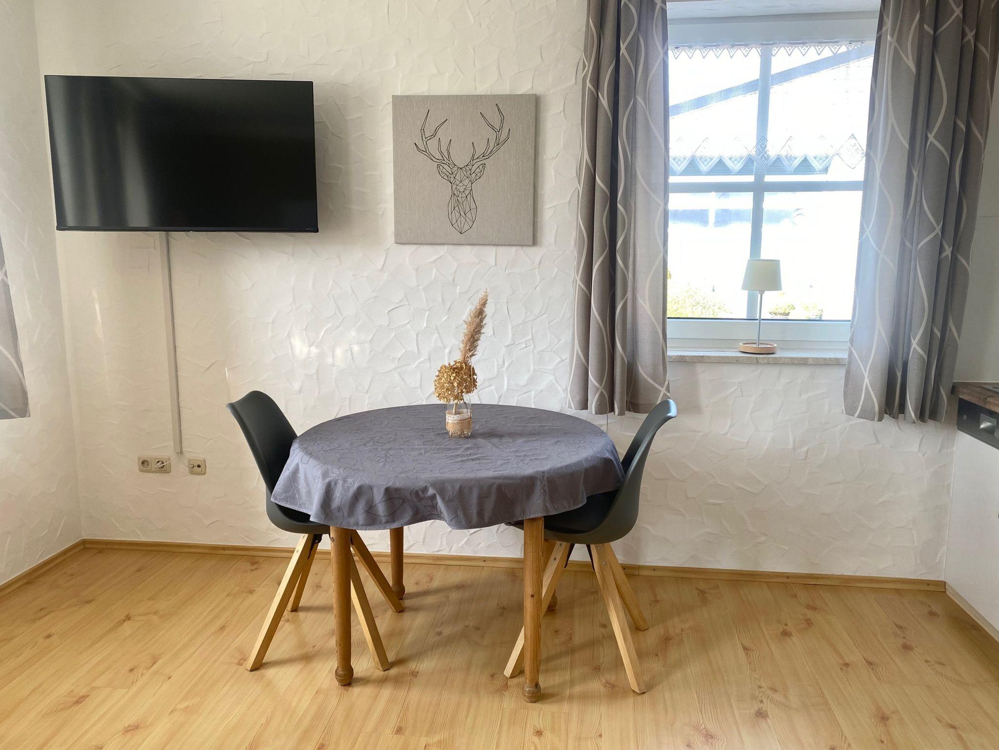 Unsere Ferienwohnung Gartenblick unten ist liebevoll und modern mit Naturholzmöbel eingerichtet.