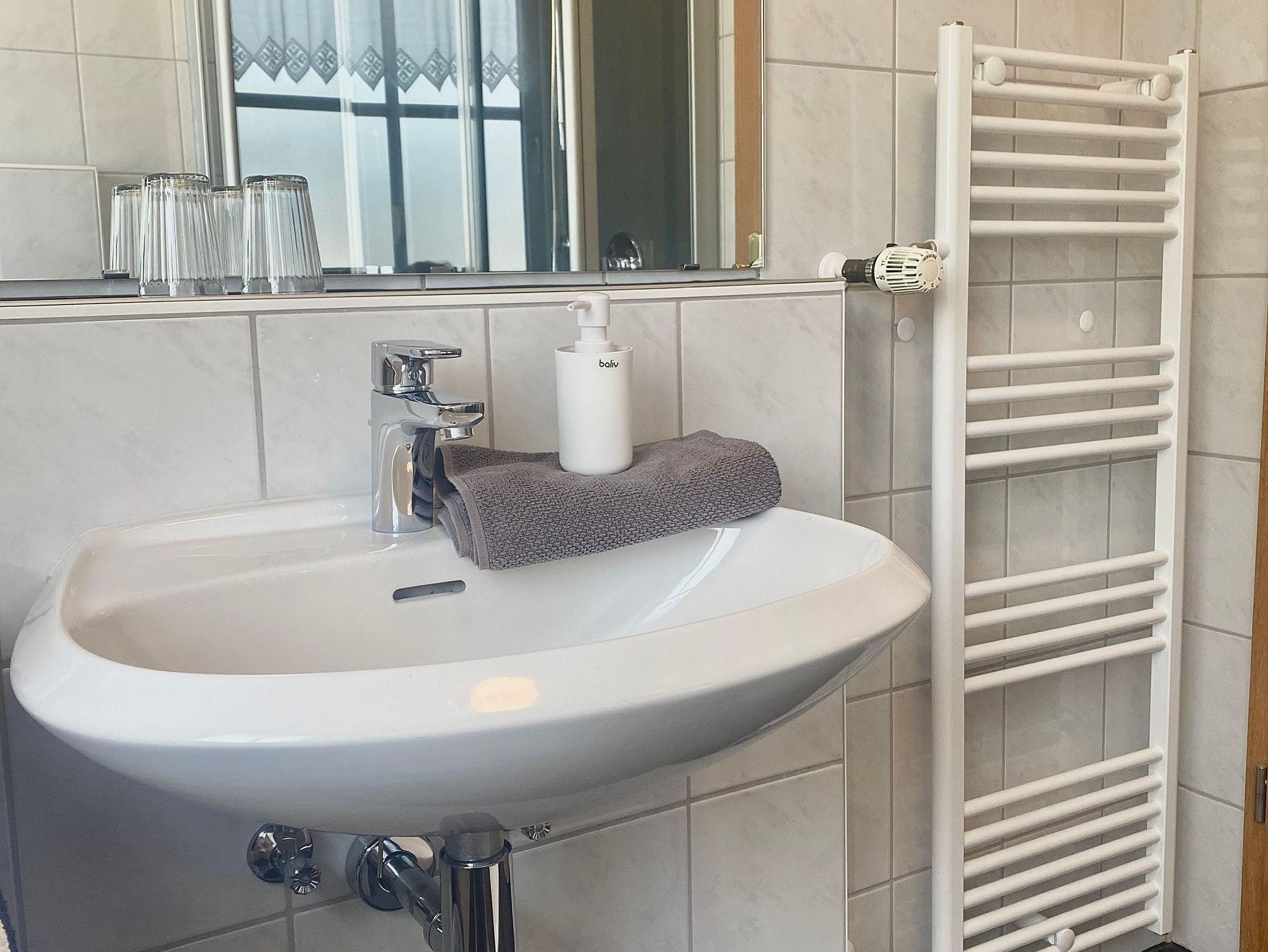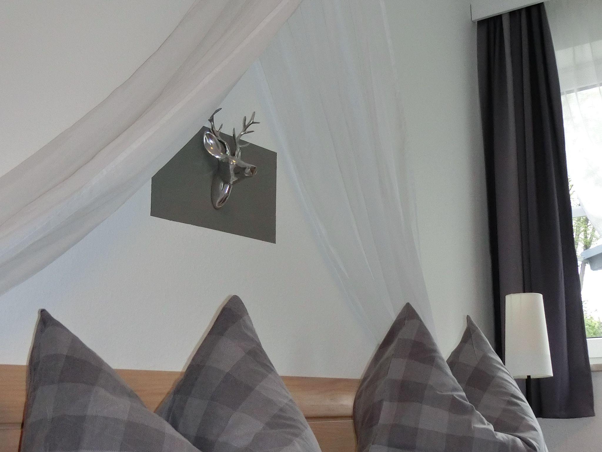 Die komplette Wäsche Ausstattung wie Bettwäsche,Handtücher Dusch und Geschirrtücher wird gestellt und auf Wunsch gerne gewechselt. In unserer Fewo. Gartenblick unten haben wir 1 Flach - Bildschirm mit Kabelanschluss, eine Stereoanlage sowie Telefon und kostenloses W-LAN. Selbstverständlich Können sie unseren schönen Garten mit Liegewiese und Grillplatz nutzen.