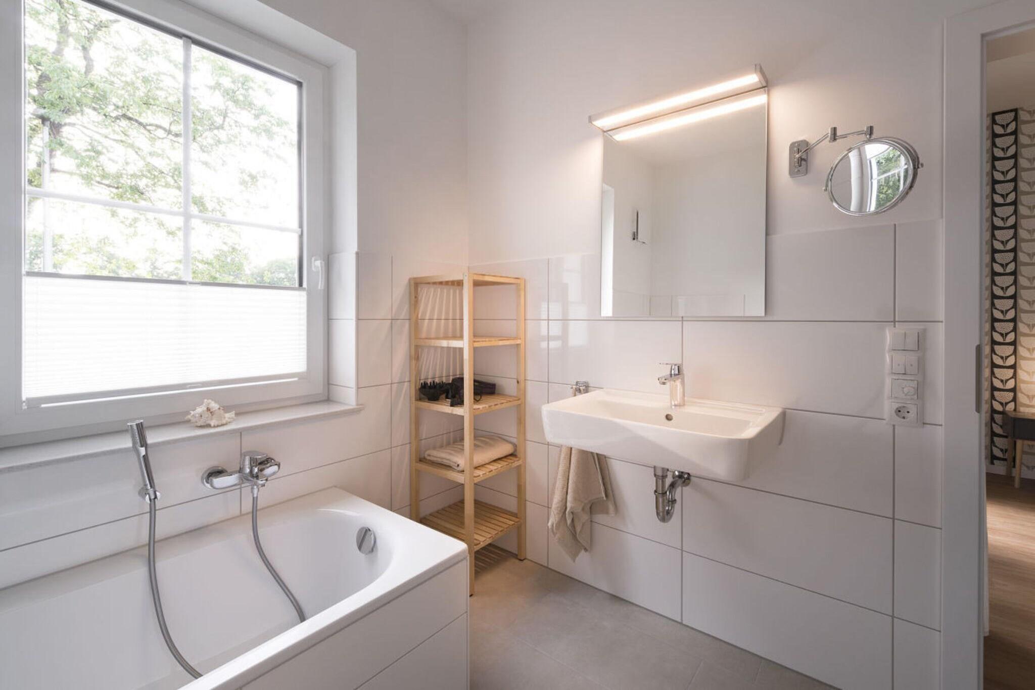 Herzlich Willkommen in unserer freundlichen und hellen 5 Sterne 2-Zimmer Ferienwohnung im Kurort Bad Zwischenahn. Die Wohnung ist modern ausgestattet und sorgt zusätzlich durch das antike Flair der Inneneinrichtung für ein luxuriöses Wohlfühlerlebnis für maximal 2 Erwachsene. Für ein besonders schönes Ambiente sorgen die edlen Bodenbeläge sowie die Fußbodenheizung im gesamten Wohnraum. Das Schlafzimmer ist mit einem elektrisch verstellbarem Boxspring-Doppelbett ausgestattet und bietet einen direkten Durchgang zur Terrasse. Das Herzstück der Ferienwohnung ist der großzügige, offene Wohn-Essbereich, der mit einer modernen, voll ausgestatteten hellen Küche mit E-Herd, Mikrowelle, Backofen und Spülmaschine, keine Wünsche offen lässt. Starten Sie Ihren Tag mit einem frisch gemahlenen Kaffee aus dem bereit-stehenden Kaffee-Vollautomaten. Spielen Sie Ihre Lieblingsmusik über die Bluetooth Hifi-Anlage ab, nutzen Sie das kostenfreie WLAN oder schauen Sie sich Ihre Lieblingsserien über Netflix auf dem TV an. Die großzügige Ausstattung bietet eine perfekte Kombination aus Komfort und Lifestyle. Das Badezimmer mit Fenster lädt Sie zu einem ausgiebigen Schaumbad in der Wanne ein und bietet alternativ auch eine separate ebenerdige Dusche. Für Ihren Aufenthalt bieten wir Ihnen frische Bettwäsche, Handtücher, frische Bademäntel und viele weitere Extras kostenfrei. Zur Ausstattung gehören ebenfalls Waschmaschine und Trockner sowie ein Bügeleisen und Bügelbrett. Bei einem Aufenthalt von mehr als einer Woche, kann die Wohnung auf Ihren Wunsch hin kostenfrei zwischengereinigt werden. Die "Ferienwohnung am See" ist eine kleine Oase zum Wohlfühlen und entspannen. Wir freuen uns auf Ihre Buchung!