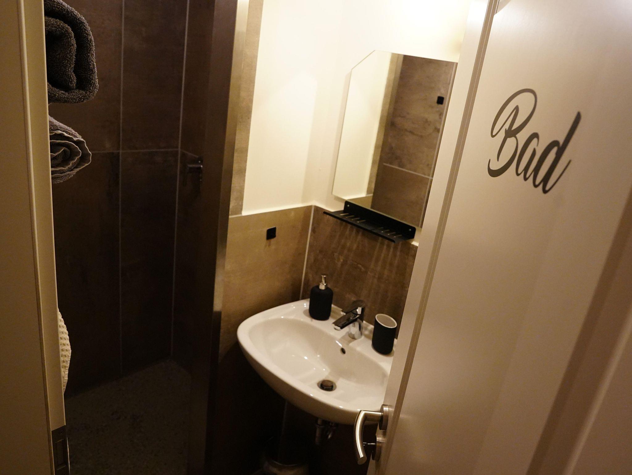 Das Zimmer LILIENSTEIN ist mit einem Doppelbett und einer kleinen Sitzecke sowie Dusche und WC eingerichtet.