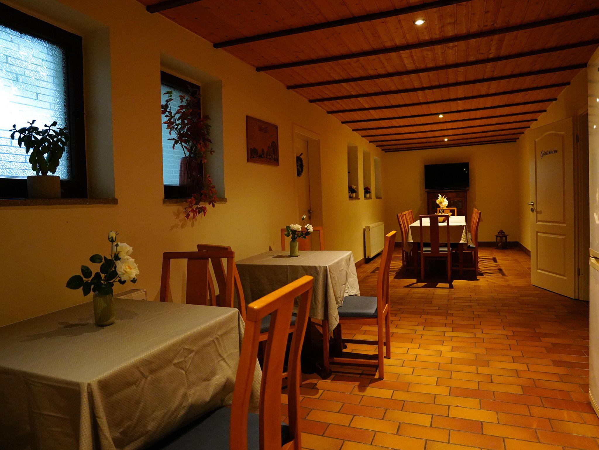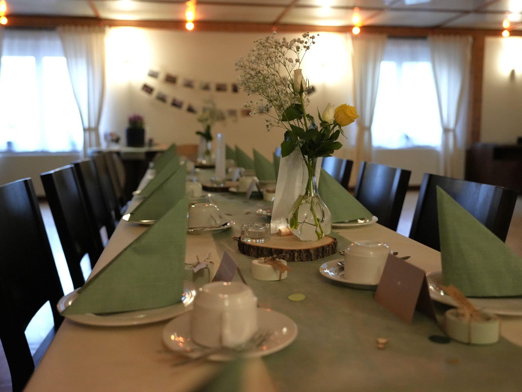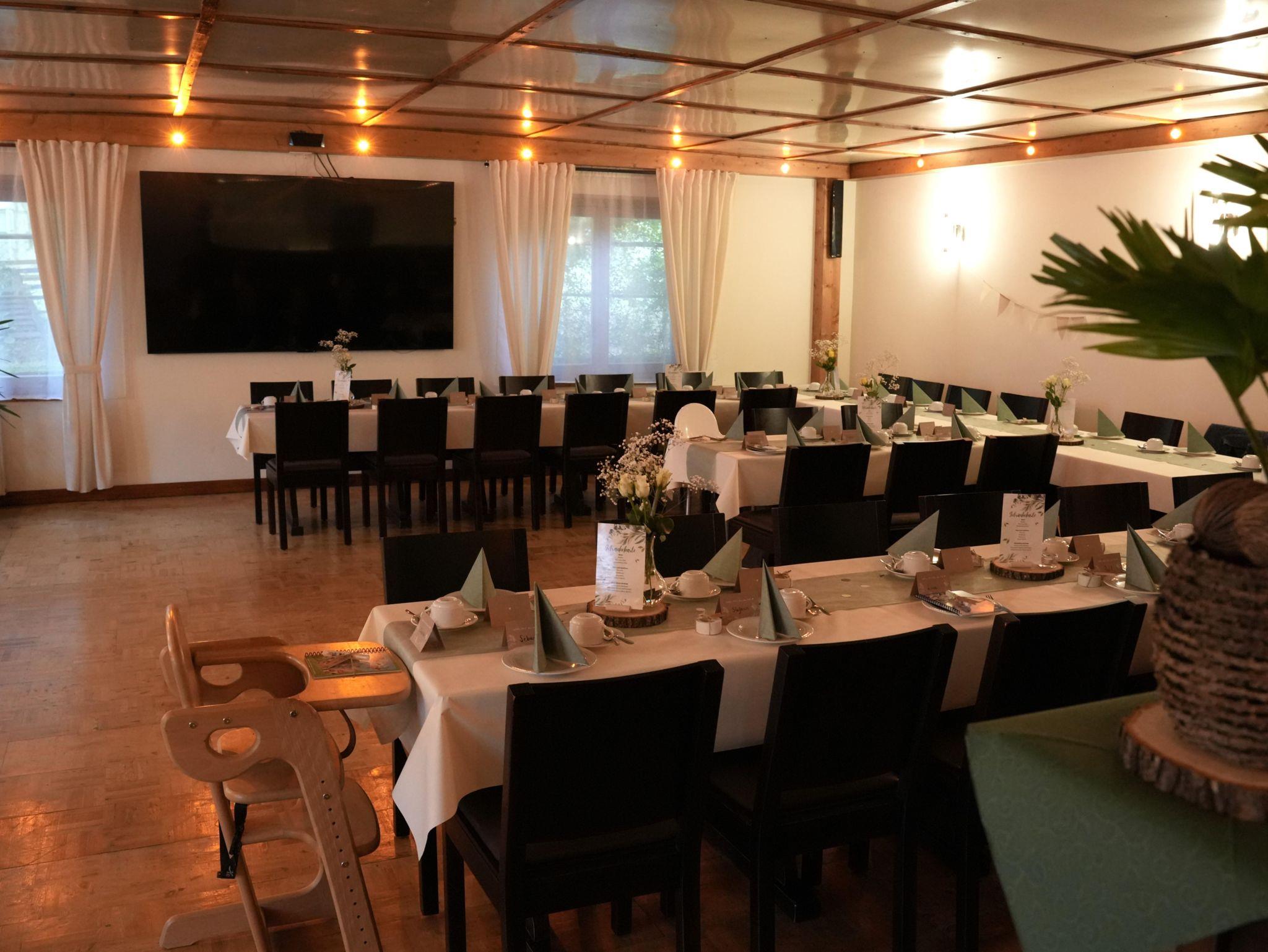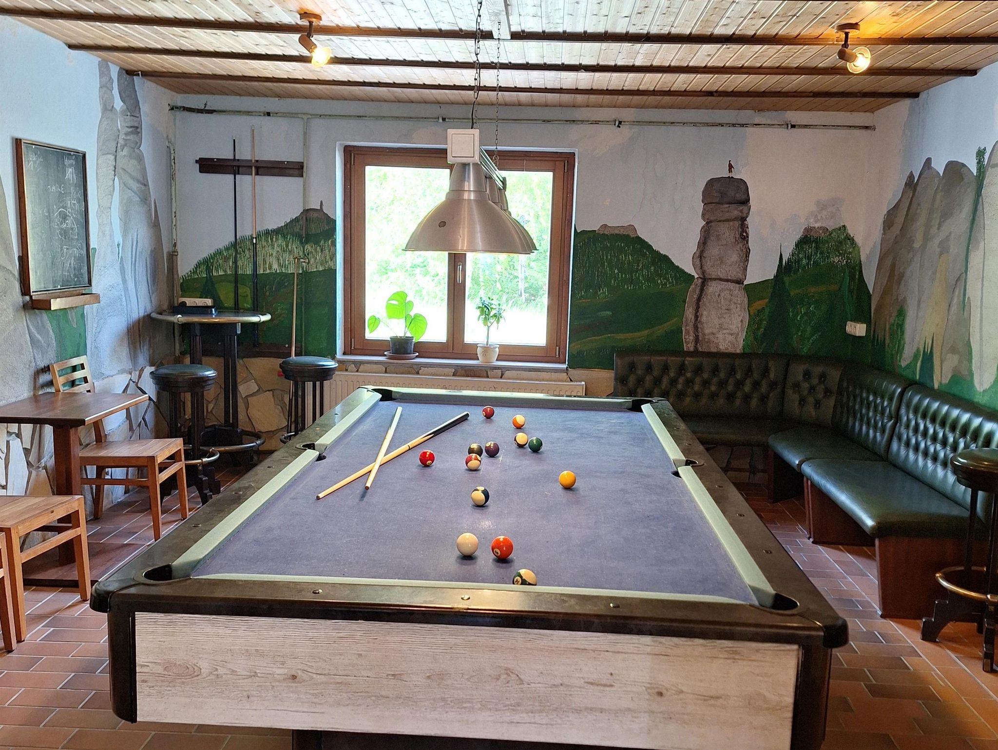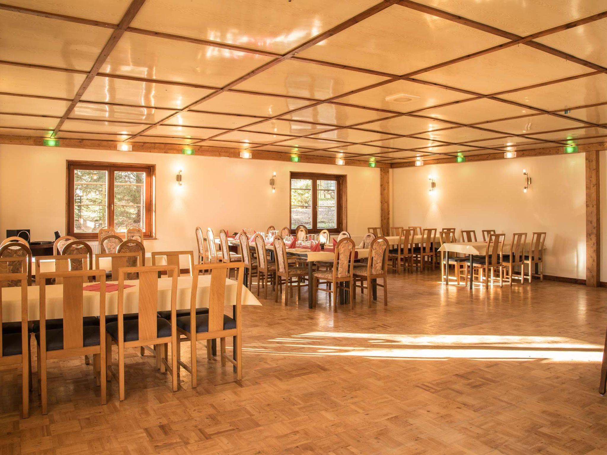 Unsere Pension besticht durch eine ruhige Lage am Ortsrand, ideal für Senioren, Singles sowie Gruppen. Der große Feiersaal bietet Platz für bis zu 90 Personen und ist perfekt für Feiern oder Veranstaltungen. Entspannen Sie in unserem Saunabereich nach einem aktiven Tag in der Natur oder genießen Sie die Zeit im Aufenthaltsraum mit Billardtisch, Darts und Tischtennis.