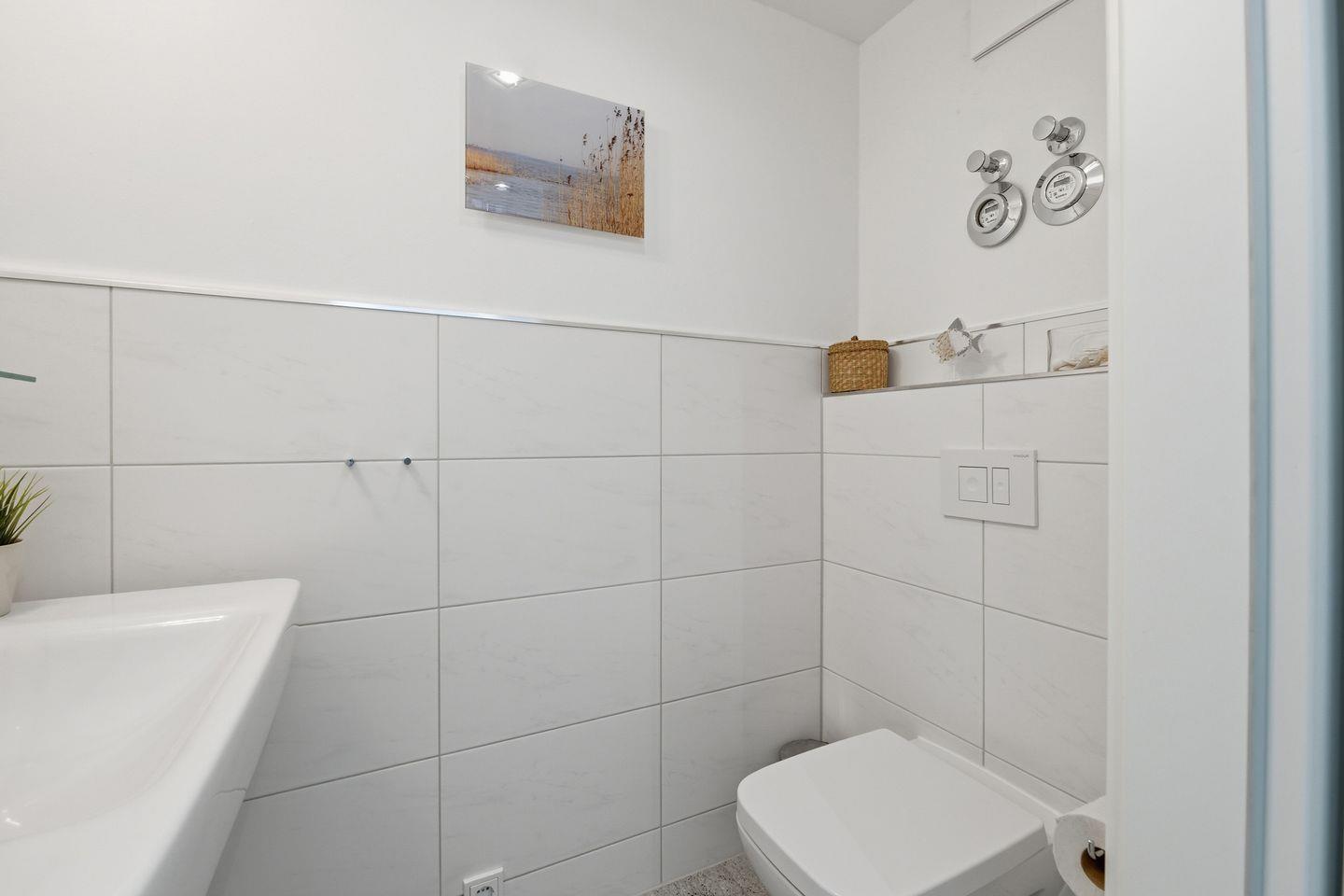 Die großzügige Wohnung erstreckt sich über stolze 74 Quadratmeter, verteilt auf zwei Etagen und ist ideal für bis zu 4 Personen sowie ein kleines Kind. Die besondere Attraktion dieser Unterkunft ist der traumhafte Ausblick vom überdachten Balkon auf das Achterwasser und die naturbelassene Umgebung, der Ihnen zu jeder Tageszeit eine malerische Kulisse bietet.