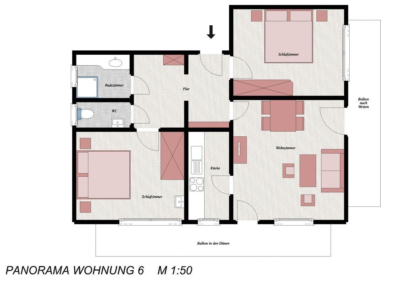Das Ferienhaus Panorama liegt zentral am Rand der Dünen. Die Wohnungen sind großzügig geschnitten, mit 2 sep. Schlafzimmern, herrlichem Balkon zur Watt- oder Meerseite. Ein großteil der Wohnungen verfügt über Spülmaschine und Mikrowelle. Der Strand, das Schwimmbad, Einkaufsmöglichkeiten und Restaurants sind nur wenige Schritte entfernt.