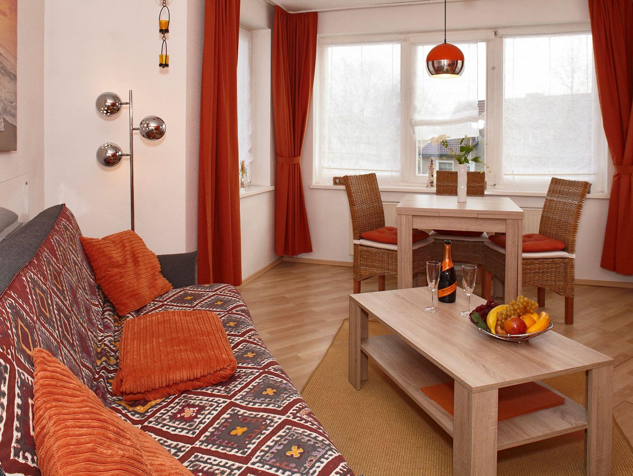 Freundliche, helle Räume, kräftige Wandfarben und moderne Möbel lassen dieses schöne 2-Raum Appartement zu einem wahren Wohlfühlort für Ihren Urlaub auf der Sonneninsel Usedom werden.