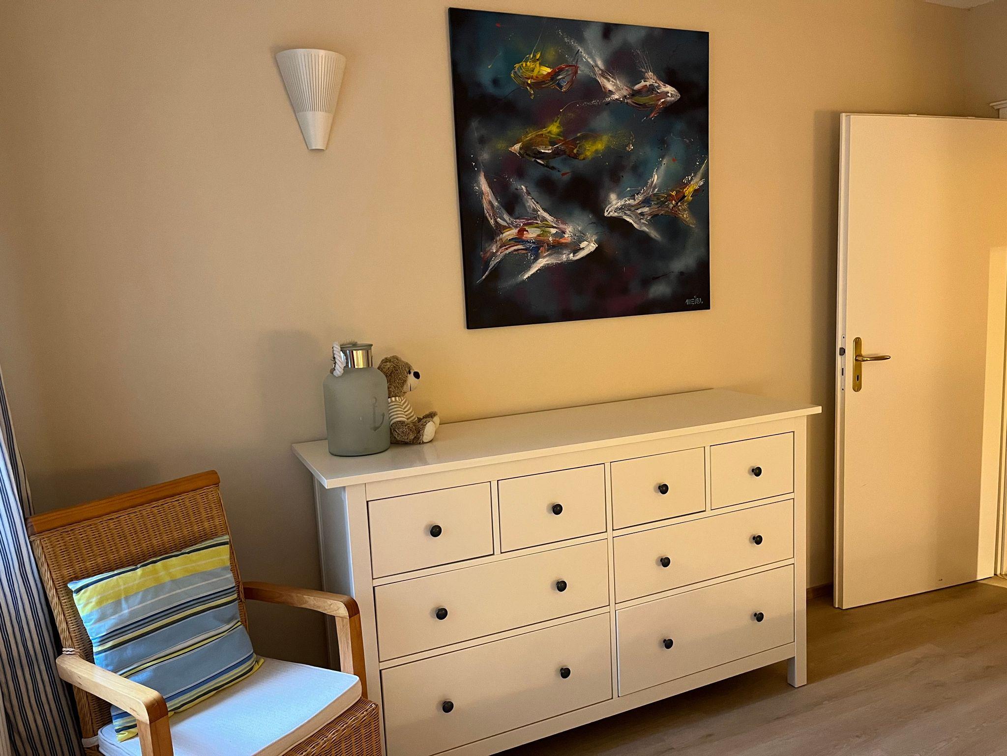 Die helle Wohnung im Erdgeschoss verfügt über 120 m² mit 3 separaten Schlafzimmern (davon ein Familienzimmer mit einem Doppelbett und einem Schlafsofa) und einem Wohnzimmer und bietet Platz für bis zu 8 Personen. Ein geräumiger begehbarer Kleiderschrank ist vorhanden. Die Süd-Terrassen mit eigenem Strandkorb grenzen unmittelbar an das Naturschutzgebiet Schloonsee. Die Wohnung besitzt zwei geräumige Bäder mit Waschmaschine und Trockner. Die Küche ist voll ausgestattet mit Geschirrspüler, Ceran-Kochherd und Kühl-/Gefrierkombination. Unseren Gästen stehen zwei Parkplätze zur Verfügung.