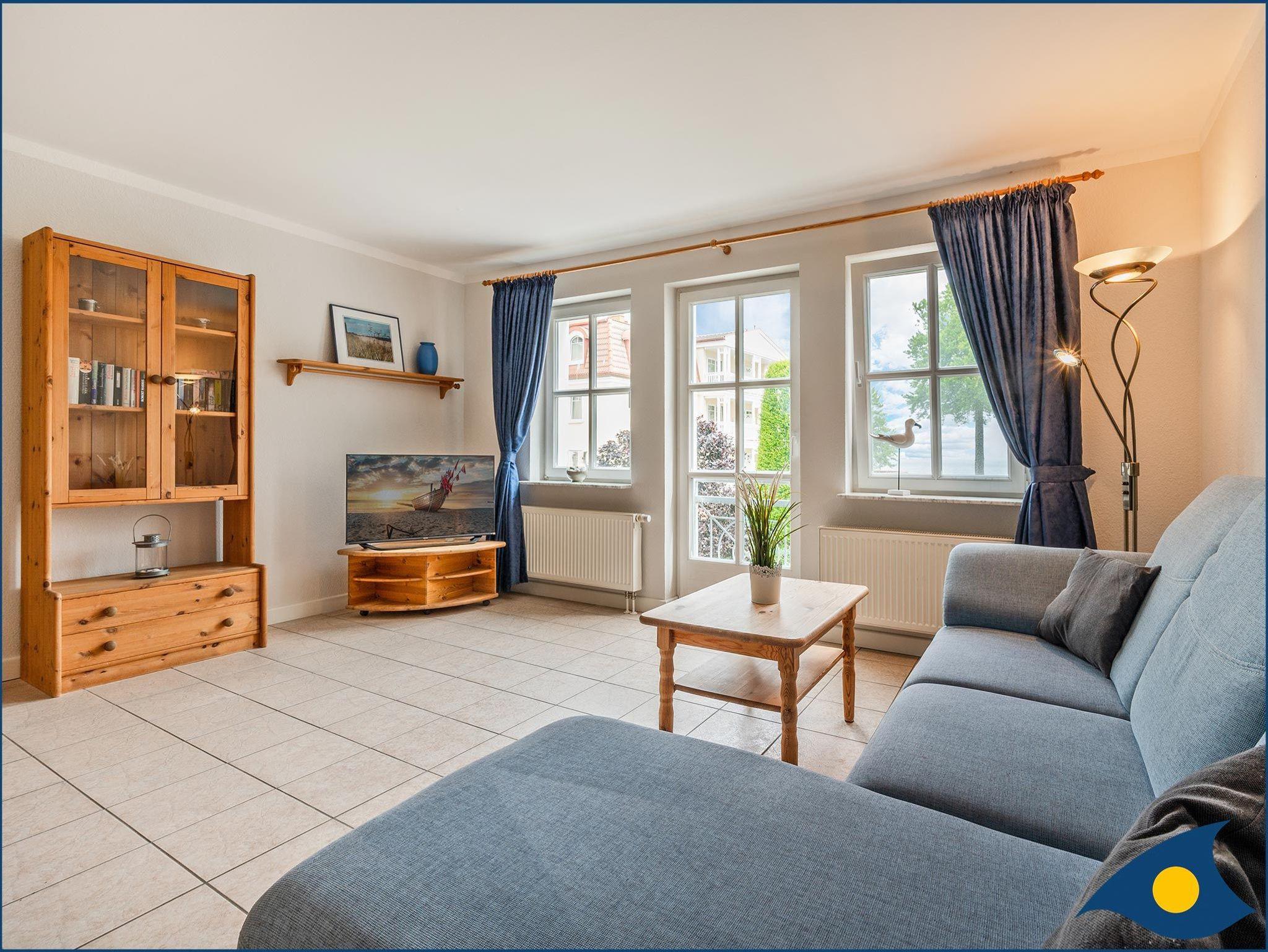 Auf 56 m² Wohnfläche erwartet Sie ein großzügiger und heller Wohnraum. Das bequeme Ecksofa lädt zu gemütlichen Fernsehabende oder einem Mittagsschläfchen inkl. Meeresrauschen ein. Die Essgruppe, bestehend aus Bänken, Tisch und Stühlen bietet genügend Platz für ein gemeinsames Abendbrot mit Freunden. In der separaten Küche mit einer Durchreiche zum Wohnzimmer bereiten Sie das morgendliche Frühstück zu oder kochen Ihr Lieblingsessen.
