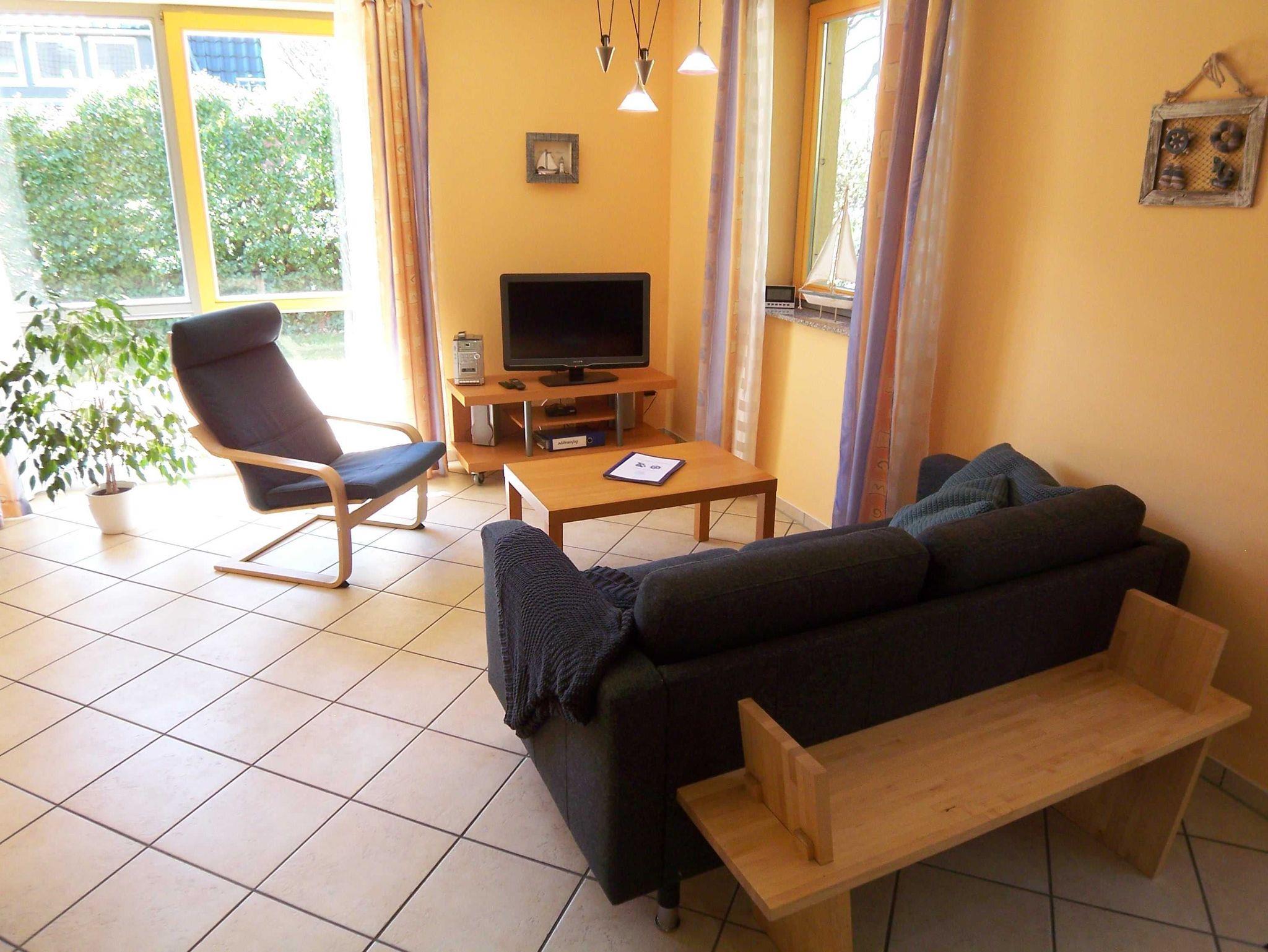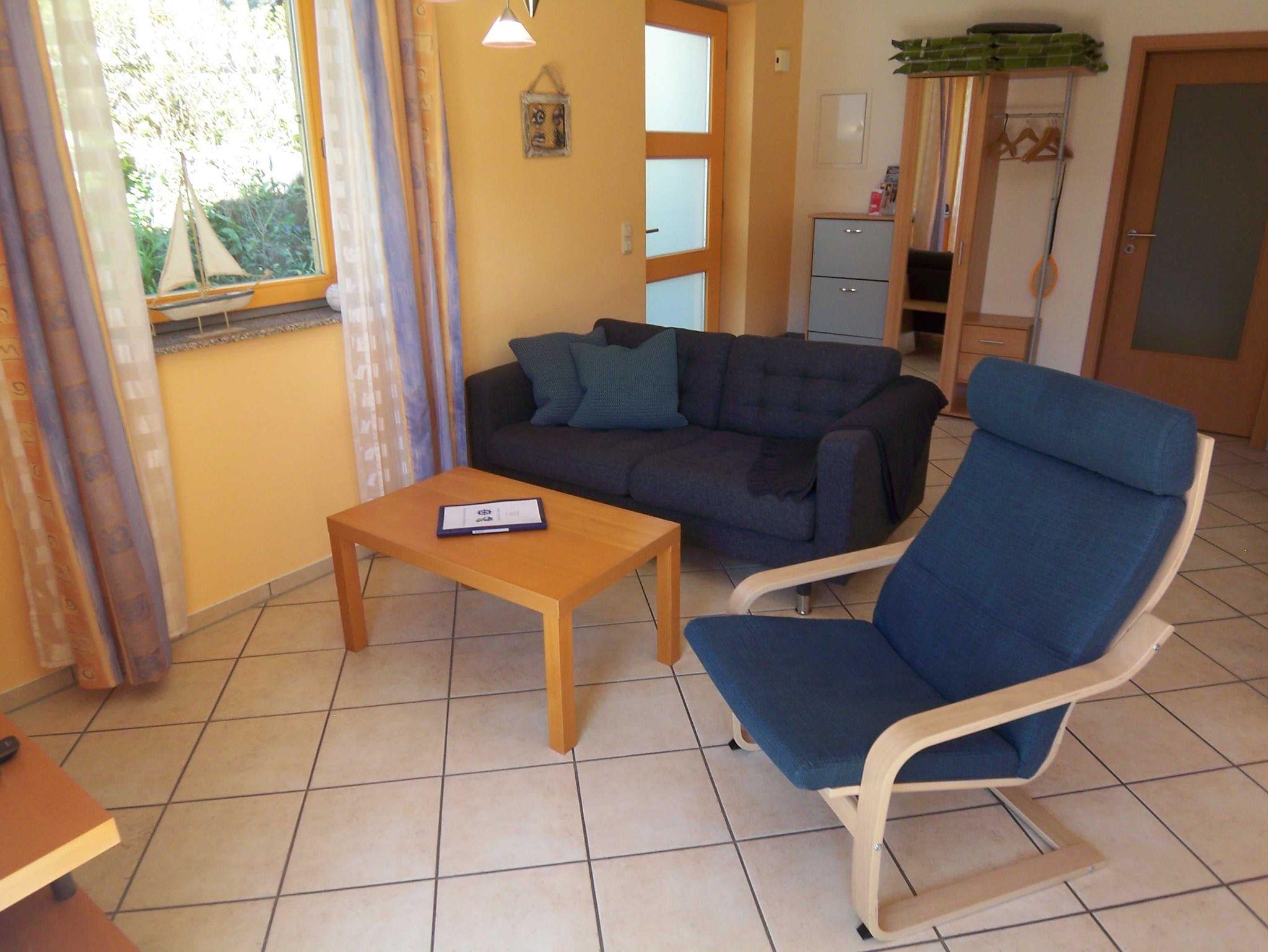 Die maritim eingerichtete Nichtraucherwohnung (36 qm) (separater Eingang) befindet sich in unserem Einfamilienhaus im Erdgeschoss mit Terrasse beinhaltet ein separates Schlafzimmer, ein Bad mit Dusche/ WC und Fön sowie einen Wohnraum mit integrierter Küchenzeile. Diese besteht aus einem Kühlschrank, einem 2-Plattenherd, einer Mikrowelle, einem Toaster, einer Kaffeemaschine und einem Geschirrspüler. Weiterhin ist ein Esstisch mit Stühlen vorhanden. Der Wohnbereich bietet neben einer angenehmen Sitzmöglichkeit für Jedermann auch ein Fernsehgerät und eine Hifi-Anlage. Von hier aus ist die Terrasse zugänglich. Das Schlafzimmer ist mit einem Doppelbett (Liegefläche: 1,80 x 2,00 m) und einem Kleiderschrank ausgestattet. Die komplette Wohnung ist mit Fußbodenheizung ausgestattet. Beachten Sie bitte, dass in der Wohnung sowie auf dem gesamten Gelände nicht geraucht werden darf, da wir als Vermieter eine Nichtraucherfamilie sind. Ihren PKW können Sie auf meinem Hofgelände kostenfrei parken. Durch die gepflegte Ausstattung wird ein erholsames Ambiente geschaffen. Erstausstattung Bettwäsche und Handtücher sind im Preis enthalten.