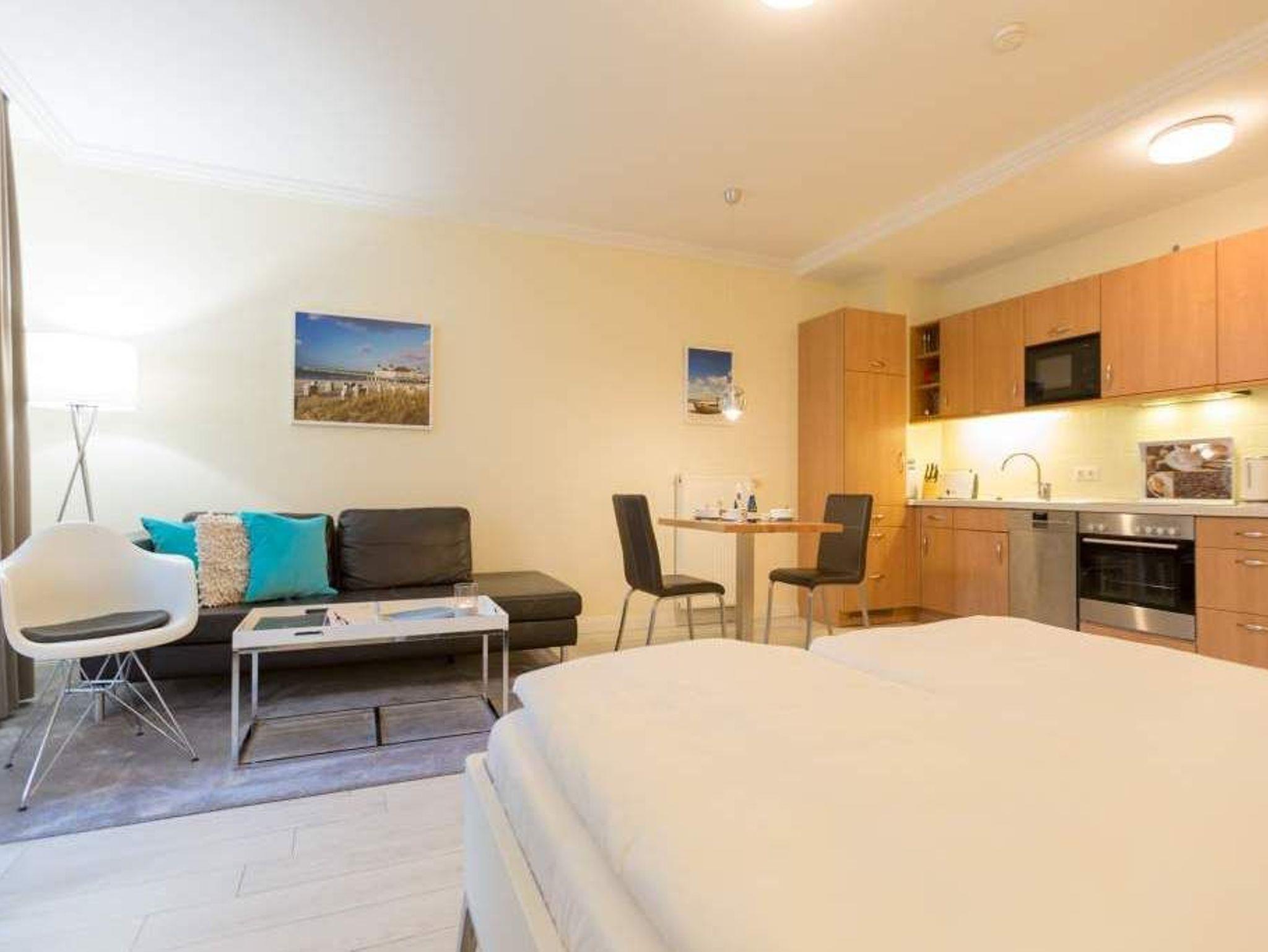Die Ferienwohnung 2.03 empfängt Sie im Erdgeschoss des Neubaus im Seehof und liegt direkt an der Bansiner Strandpromenade. Das gemütliche Einraumdomizil (41 qm) ist ideal für zwei Personen. Der Wohnschlafbereich ist mit einem Doppelbett, bequemer Ledercouch, Flat-TV, Esstisch und Küchenzeile (Kochfeld, Backofen, Mikrowelle, Geschirrspüler) ausgestattet. Das moderne Bad mit bodenebener Dusche, Echtglas-Duschwand und WC ergänzt dieses Appartement. Auf der Terrasse mit Gartenmöbeln lässt es sich geschützt (hinter dem Dünenbereich) in der Morgensonne frühstücken. Ein Pkw-Stellplatz Nr. 4 steht in der Doppelparker Garage unten (max. PKW-Höhe 1,50 m, PKW Länge max. 5,00m/ Gewicht max. 2t ) bereit.