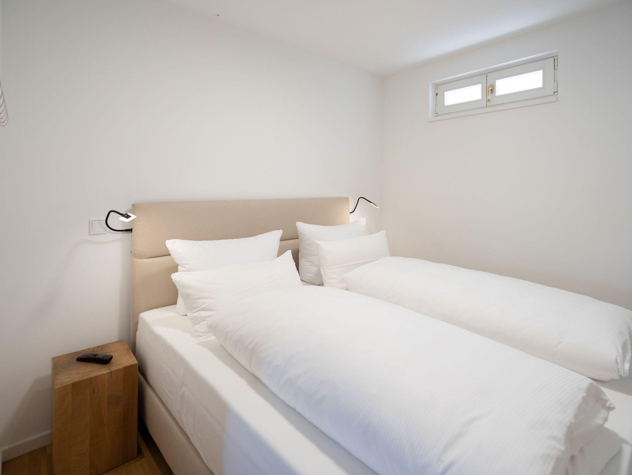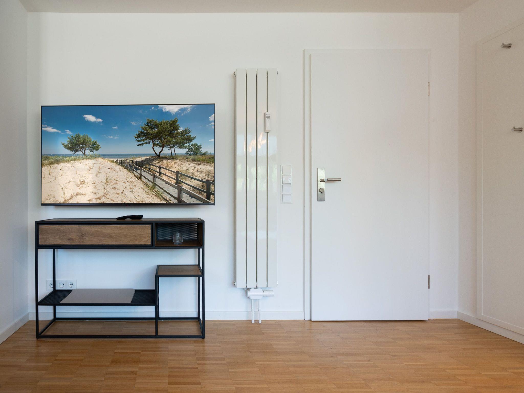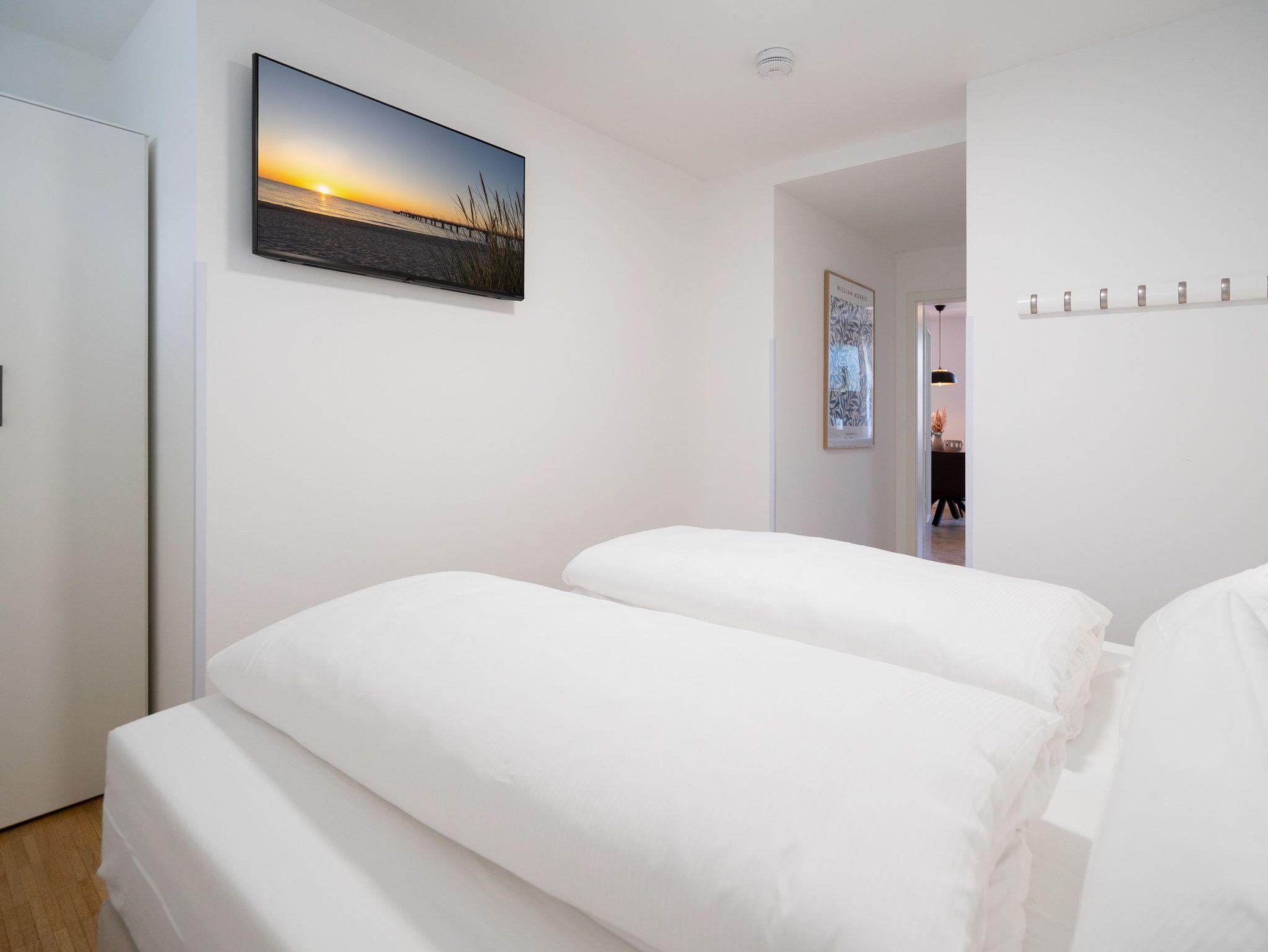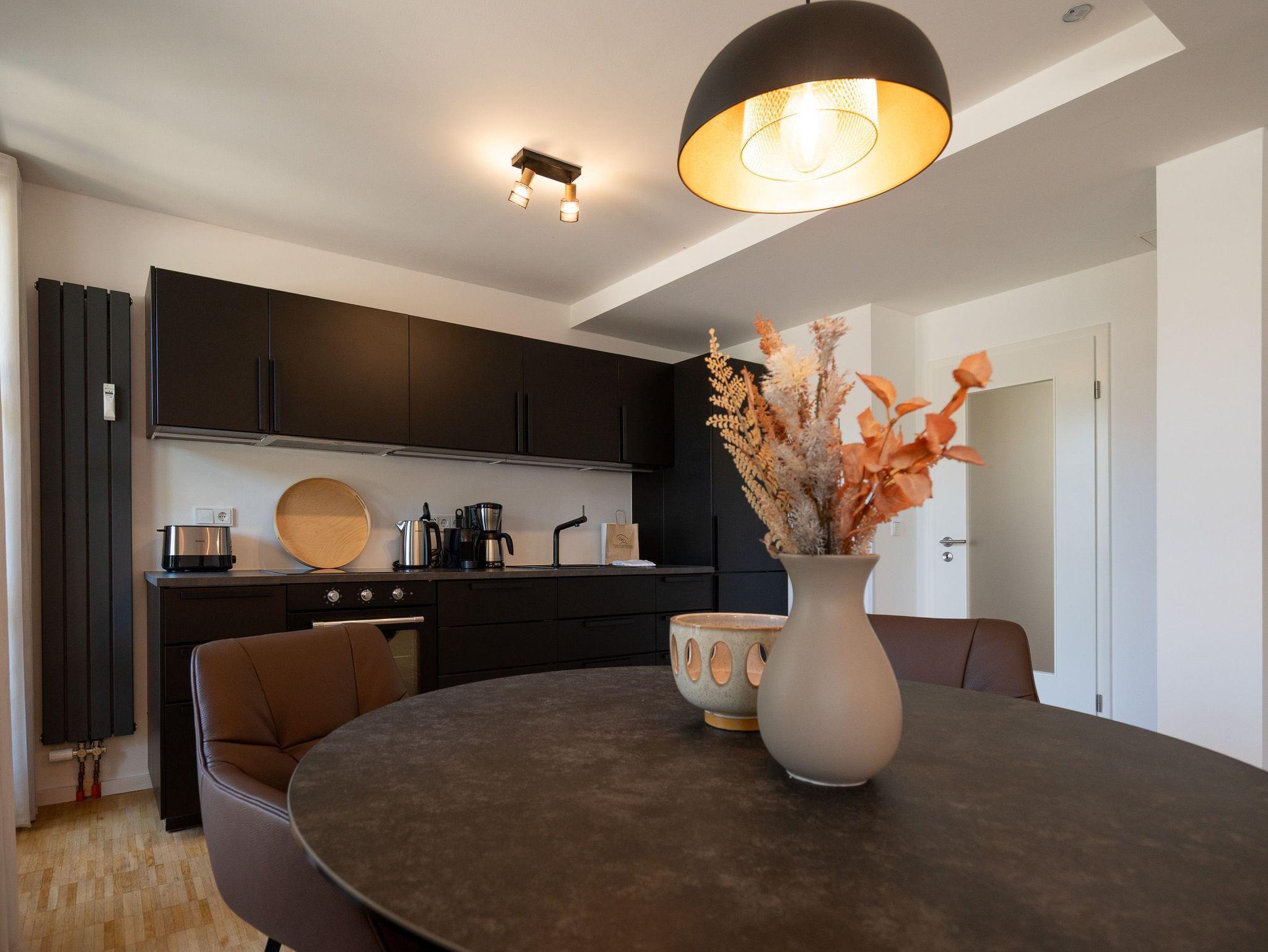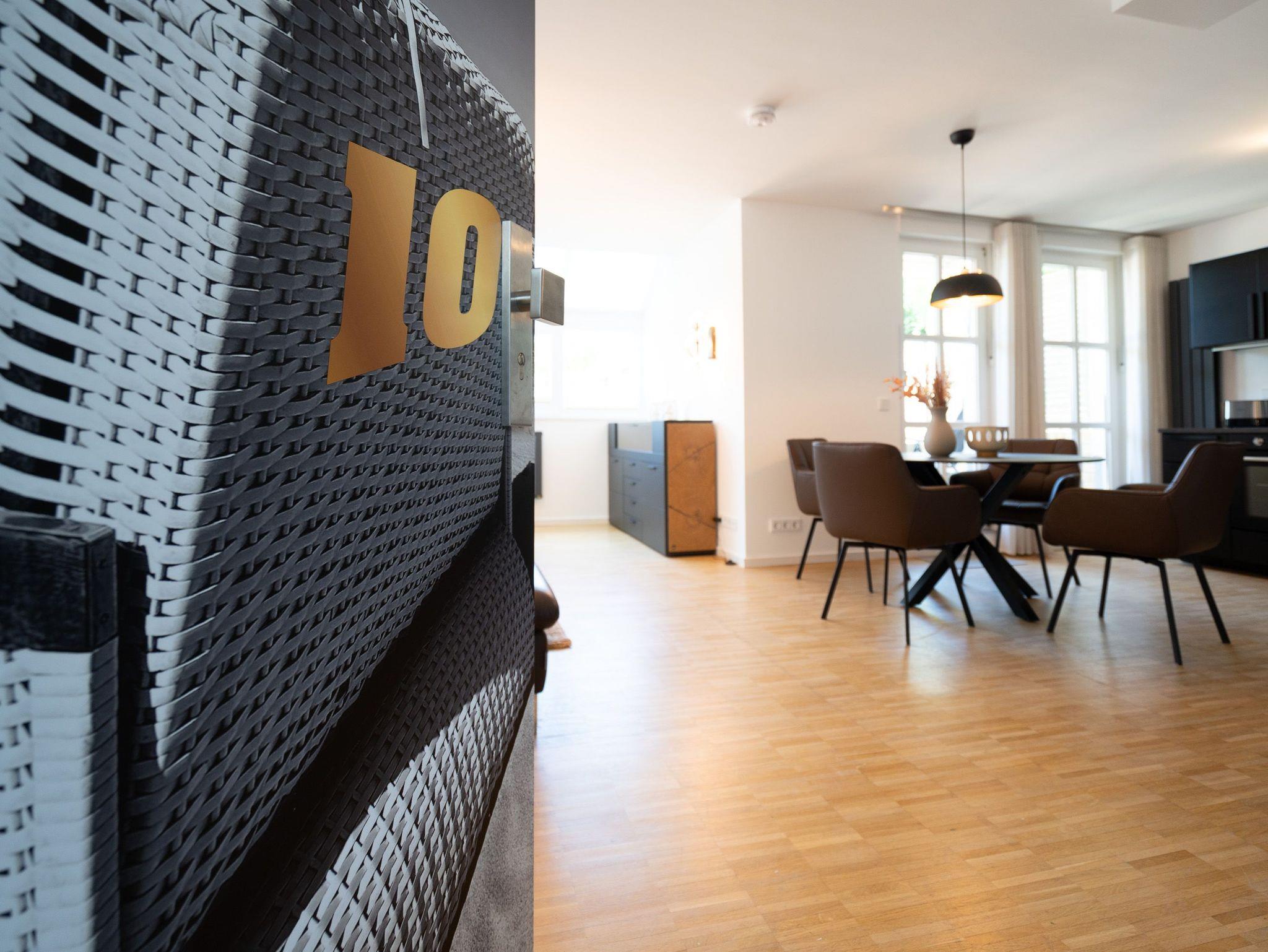 Großzügiges 2-Raum-Appartement mit Terrasse ? stilvoll wohnen im Terrassengeschoss. Appartement Nr.?10 im Terrassengeschoss (Souterrain) der Villa Elisabeth überzeugt mit viel Platz, hochwertiger Ausstattung und einem klaren Fokus auf Komfort. Auf 57?m² bietet es ein stilvolles Zuhause für zwei Personen ? ruhig gelegen und dennoch lichtdurchflutet. Der offene Wohnbereich ist großzügig geschnitten und geschmackvoll eingerichtet. Die moderne Küchenzeile verfügt über ein 4-Platten-Cerankochfeld, Backofen, Spülmaschine, Kühlschrank mit Gefrierfach und eine Nespresso-Kapselmaschine ? perfekt für alles vom schnellen Frühstück bis zum selbstgekochten Urlaubsdinner. Am Esstisch für vier Personen ist ausreichend Platz für entspannte Mahlzeiten ? auch mit Besuch. Das gemütliche Sofa und der 55-Zoll-Flat-TV sorgen für entspannte Abende, während der direkte Zugang zur Süd-Ost-Terrasse (ca. 6?m²) ein echtes Highlight darstellt ? ideal für den Morgenkaffee an der frischen Luft oder ein ruhiges Glas Wein im Freien. Im Schlafzimmer erwartet Sie ein komfortables Boxspringbett (1,80?m x 1,95?m), ein geräumiger Kleiderschrank sowie ein zweiter Flat-TV ? für individuelle Entspannungsmomente. Das kompakte Bad ist funktional ausgestattet mit Dusche (0,85m x 0,70m), Waschbecken und WC. Ein fester PKW-Stellplatz (Nr.?10) befindet sich auf dem Hof. WLAN steht Ihnen selbstverständlich kostenfrei zur Verfügung. Ideal für alle, die Großzügigkeit, Willkommen im entspannten Untergeschoss der Villa Elisabeth.