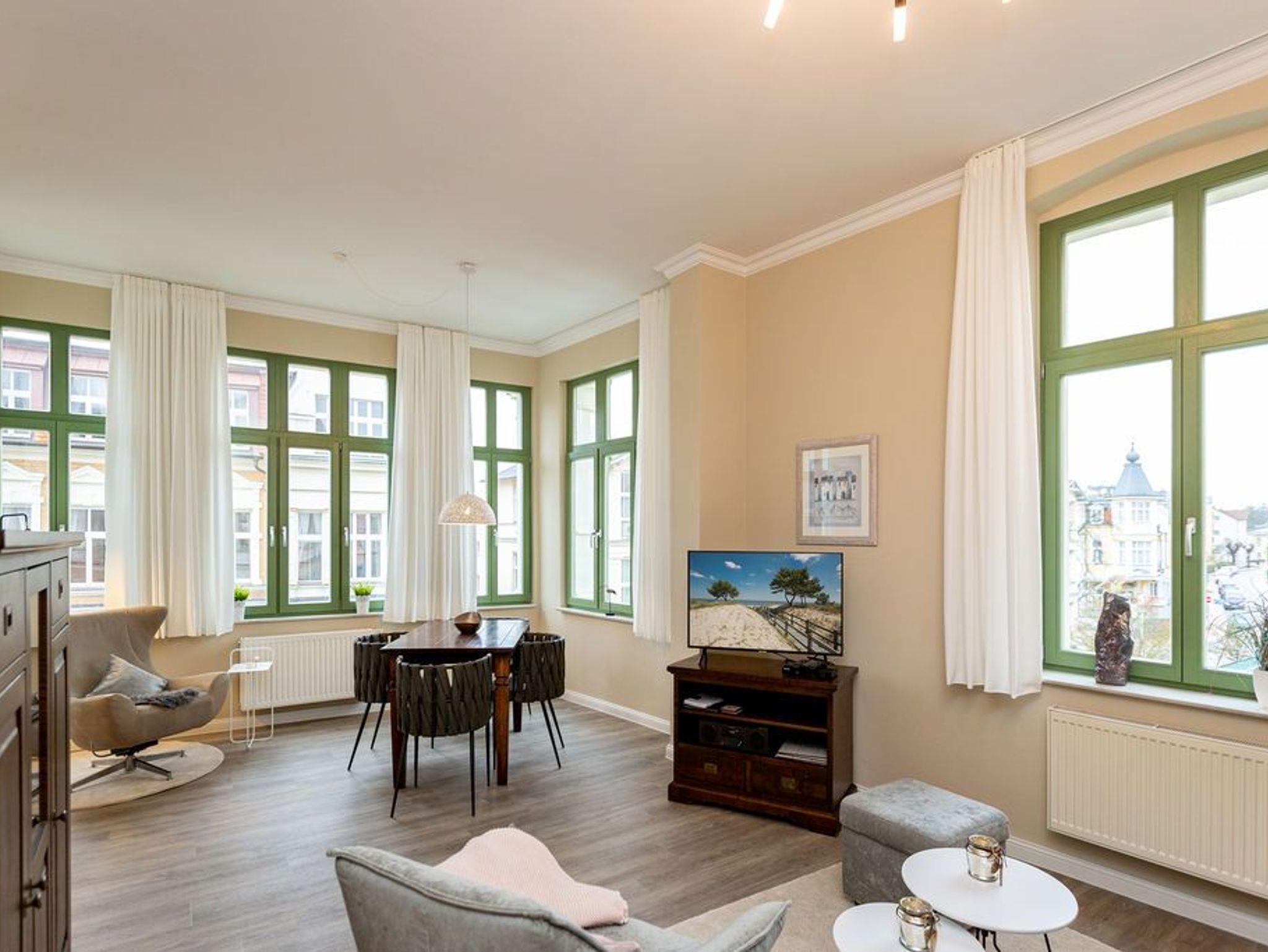 Exklusive 60 qm Ferienwohnung in Bansin mit Meerblick, zwei Balkonen und moderner Ausstattung für entspannte Urlaube am Strand.