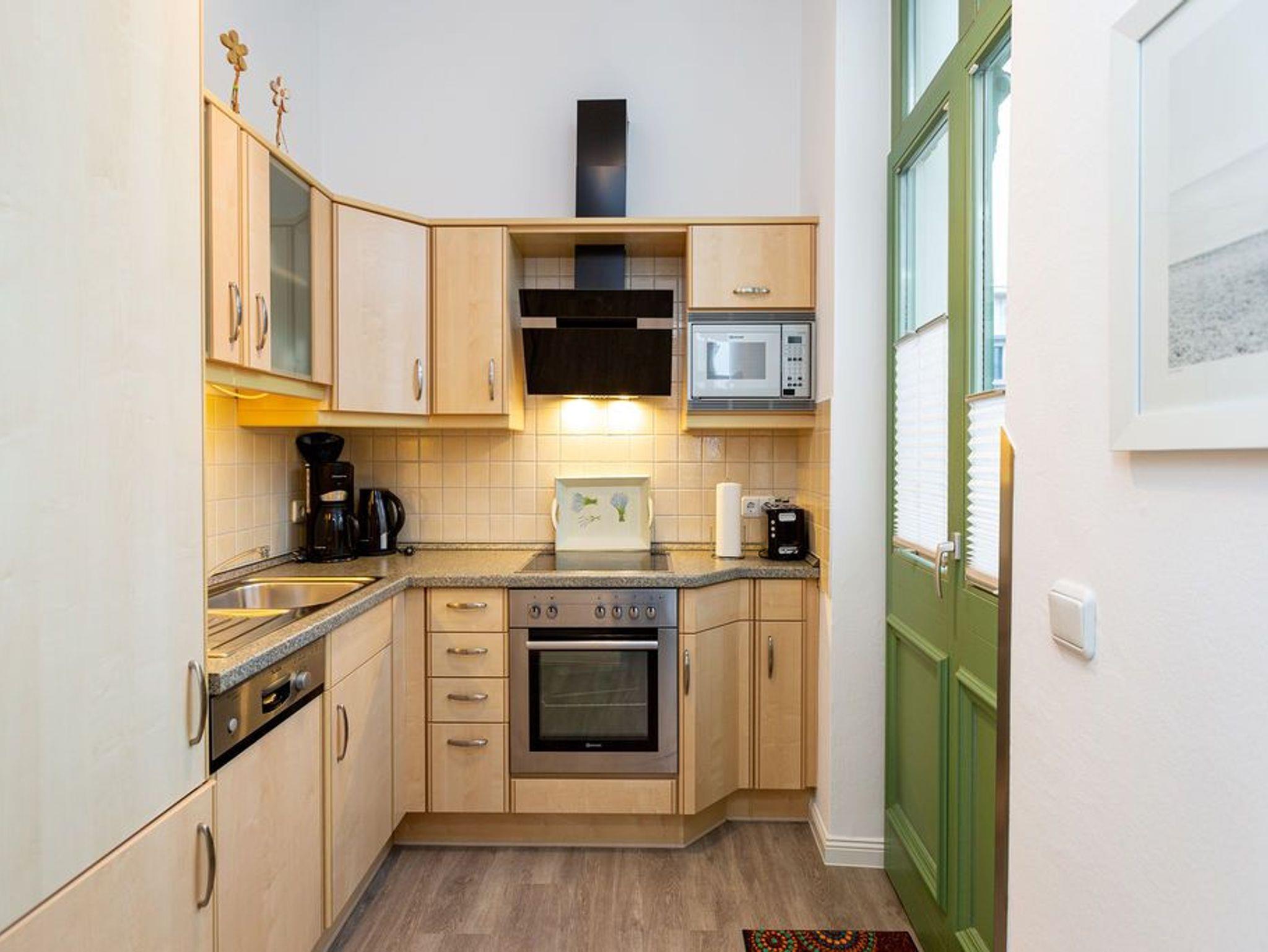 Die exklusive Ferienwohnung im 1. Obergeschoss des Hauses ist 60 qm groß und bietet zwei Personen Platz zum Wohlfühlen und Entspannen. Die moderne und stilvolle Einrichtung lassen keine Wünsche offen. Das Appartement verfügt über ein Wohnzimmer (mit seitlichem Meerblick) mit gemütlicher Sitzgruppe [&] Flat-TV, eine vollständig ausgestattete Küche (Ceranfeld, Geschirrspüler, Mikrowelle), ein Schlafzimmer mit Doppelbett und ein Duschbad. Auf den 2 Balkonen können Sie den Blick auf die Seestraße genießen.