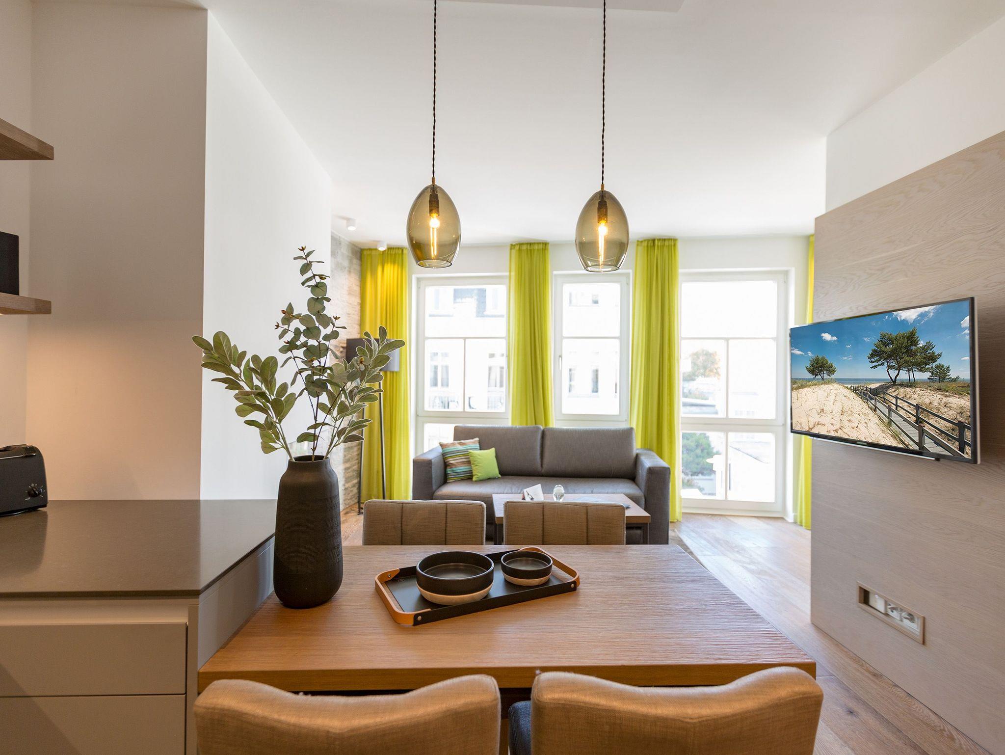 Elegantes Beachhouse Appartement 15 in Bansin mit Balkon, Sauna und Meerblick für entspannte Ostseeferien.