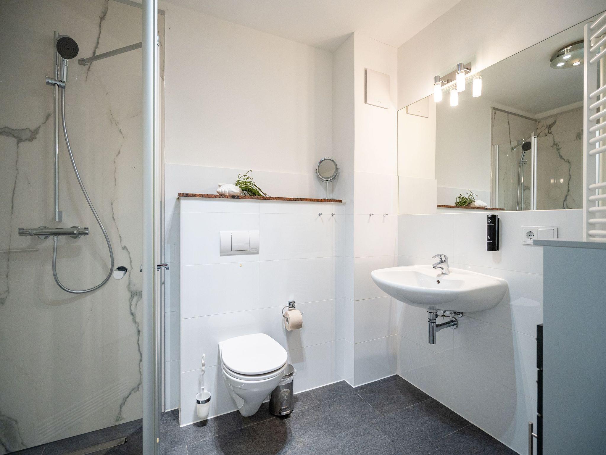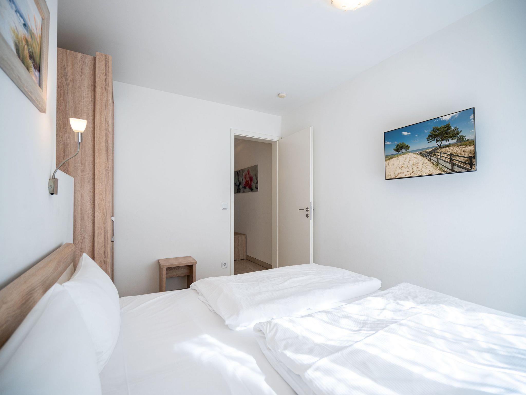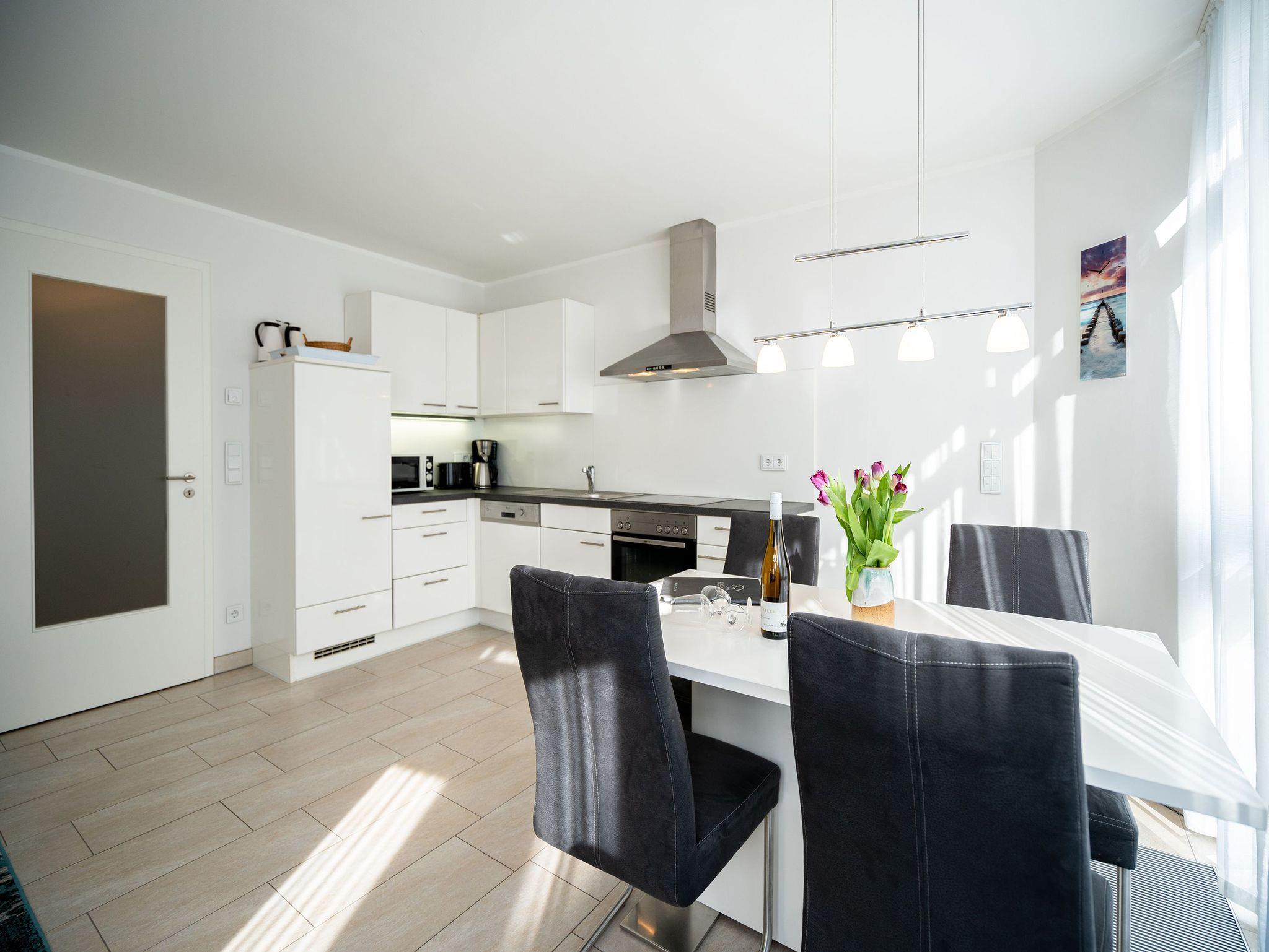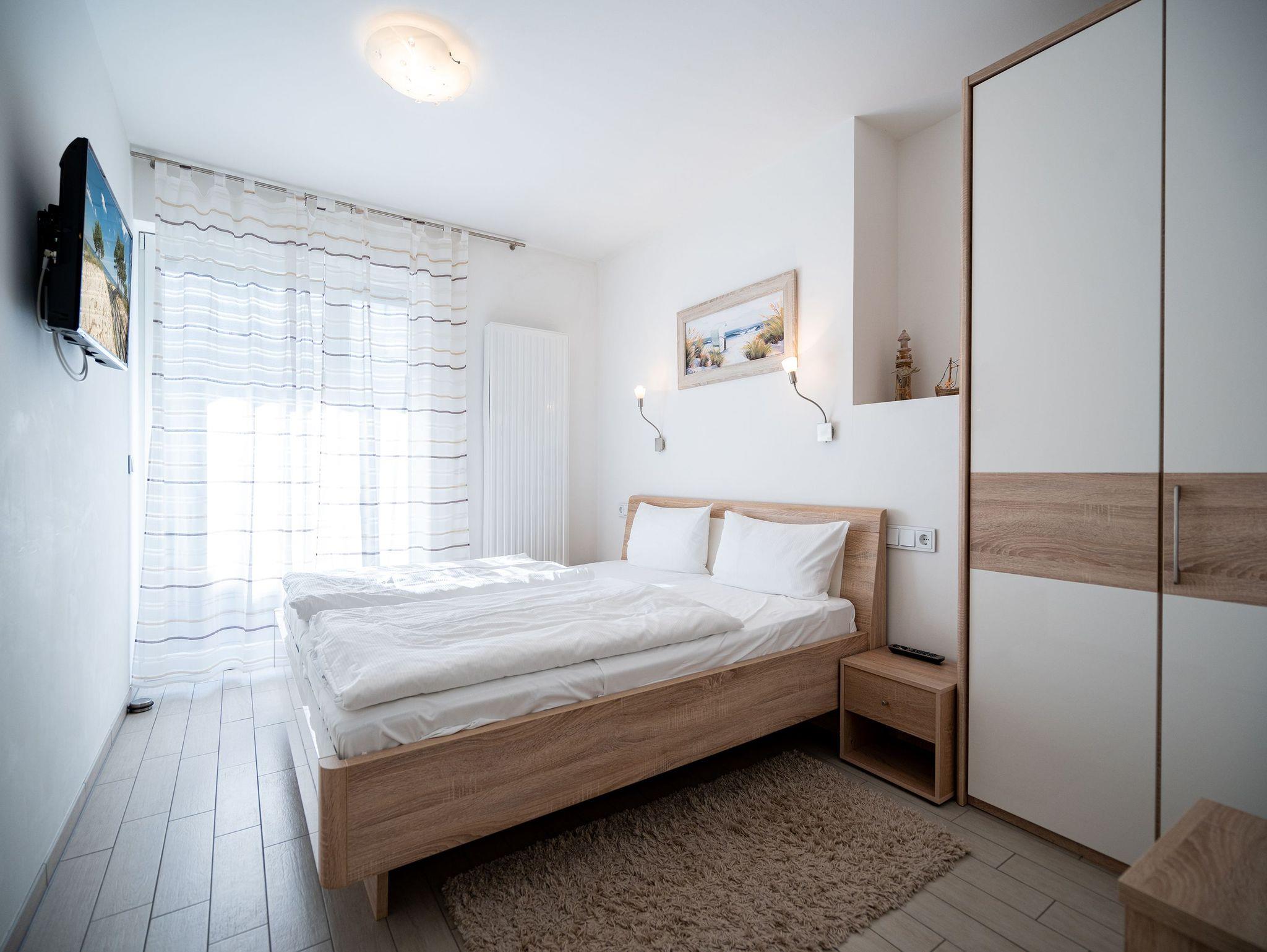 Willkommen in dieser geschmackvoll eingerichteten 3-Raum-Ferienwohnung im Erdgeschoss des Hauses Baltic. Die moderne Möblierung, die harmonisch aufeinander abgestimmten Farben und die liebevoll ausgewählten Dekorationen schaffen ein einladendes Ambiente auf 68 Quadratmetern. Mit zwei Schlafzimmern, die jeweils mit komfortablen Doppelbetten ausgestattet sind und eines davon zusätzlich über einen Smart-TV verfügt, ist diese Wohnung ideal für bis zu vier Personen. Der gemütliche Wohnbereich mit einer bequemen Ledersitzgruppe lädt zum Entspannen ein und grenzt an die offene, komplett ausgestattete Küche mit Essplatz. Ein weiterer Smart-TV sowie ein Blu-Ray-Player mit iPod-Dockingstation bieten Unterhaltungsmöglichkeiten für gemütliche Abende. Das moderne Bad mit Echtglasdusche sorgt für ein angenehmes Frischegefühl, und ein zusätzliches Gäste-WC bietet zusätzlichen Komfort. Wenn Sie keine Lust auf den Strand haben, können Sie die Sonne auf einer der beiden großzügigen Terrassen genießen ? eine nach Süden und eine nach Osten ausgerichtet. Bequeme Gartenmöbel laden hier zum Verweilen ein. Für Ihren Komfort sind die Betten bei Ihrer Anreise bereits bezogen. Alle Räume mit Fenstern, also die beiden Schlafzimmer und das Wohnzimmer, sind mit elektronischen Außenrollläden ausgestattet. Ein eigener PKW-Stellplatz (Nr. 11) befindet sich direkt am Haus und das kostenfreie WLAN im gesamten Haus sorgt dafür, dass Sie immer online bleiben können. Zudem steht Ihnen eine Waschmaschine im Abstellraum zur Verfügung. Freuen Sie sich auf einen unbeschwerten und komfortablen Aufenthalt in unserer Ferienwohnung im Haus Baltic.