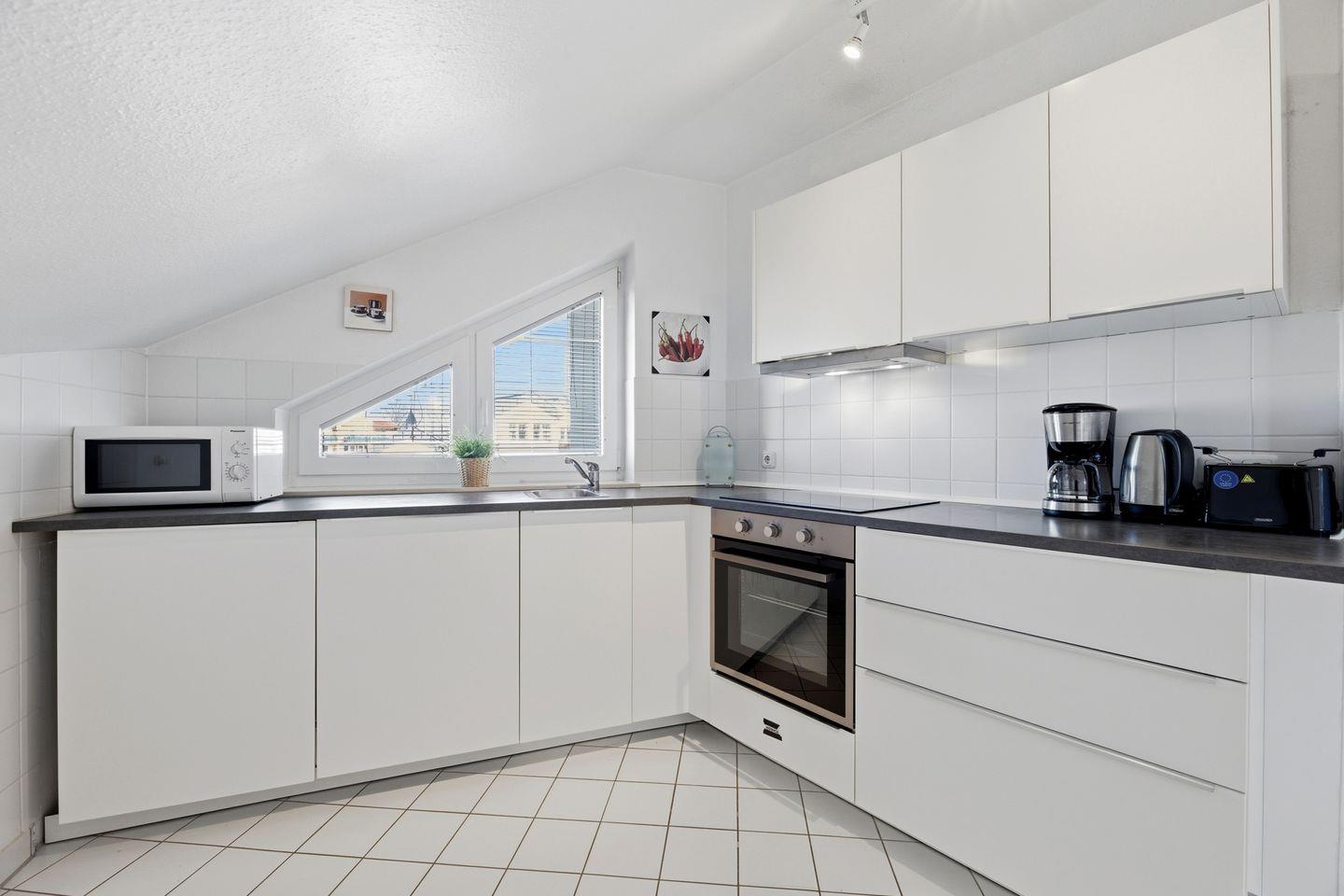 - Waschmaschine und Trockner befinden sich außerhalb der Wohnung im Haus (Münzautomat)