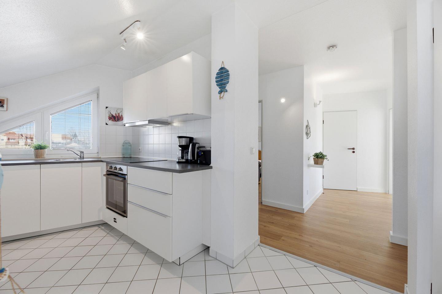 Entdecken Sie Wohnung 410, eine helle 3-Zimmer-Oase zwischen Ostseestrand und Schloonsee. Der Balkon, zugänglich von Wohnzimmer, lädt zum Verweilen ein. Auf der vierten Etage des Seeparks gelegen, bietet die Wohnung Platz für 4 Erwachsene und 2 Kindern. Die gut ausgestattete Küche ermöglicht bequeme Selbstverpflegung.