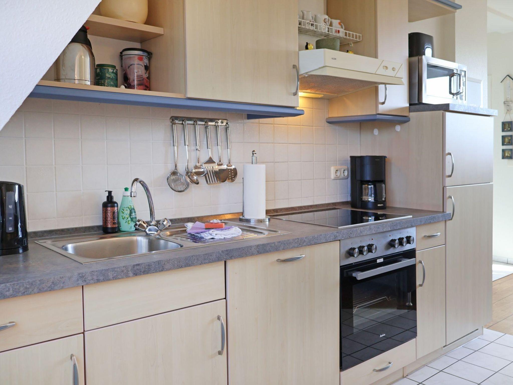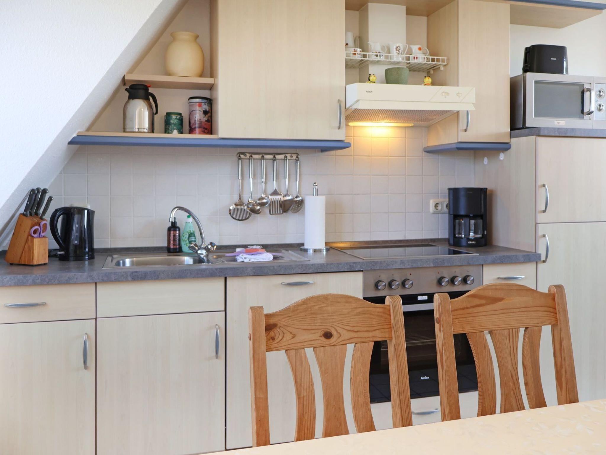 Die familienfreundliche Ferienwohnung -Zollhaus 4- mit Balkon, befindet sich im 1. Obergeschoss des Hauses. Die Wohnfläche umfasst 57 qm. Der gemütliche Wohn- und Essbereich mit behaglicher Einrichtung wie Sofa, Sessel und Esstisch, zu der selbstverständlich auch ein Fernseher, kostenfreies WLAN und Radio gehören, lädt zum Wohlfühlen ein. Die in den Wohnraum integrierte Küchenzeile ist komplett ausgestattetet mit Herd, Backofen, Mikrowelle, Kaffeemaschine, Toaster, Wasserkocher sowie Kochgeschirr und Besteck. Zwei separate Schlafzimmer- 1x Doppelbett und 1x zwei Einzelbetten- bieten entspannte Nächte für bis zu 4 Personen. In zwei Kleiderschränken können Sie Ihre Urlaubsgarderobe unterbringen. In dem attraktiven Ferienappartement befindet sich auch ein Duschbad, in dem die Nutzung einer Waschmaschine kostenfrei möglich ist. Ebenso steht Ihnen am Haus ein PKW- Stellplatz kostenfrei zur Verfügung. Bitte beachten Sie, dass im -Alten Zollhaus in der Wohnung 4- nicht geraucht werden darf und Haustiere nicht gestattet sind.