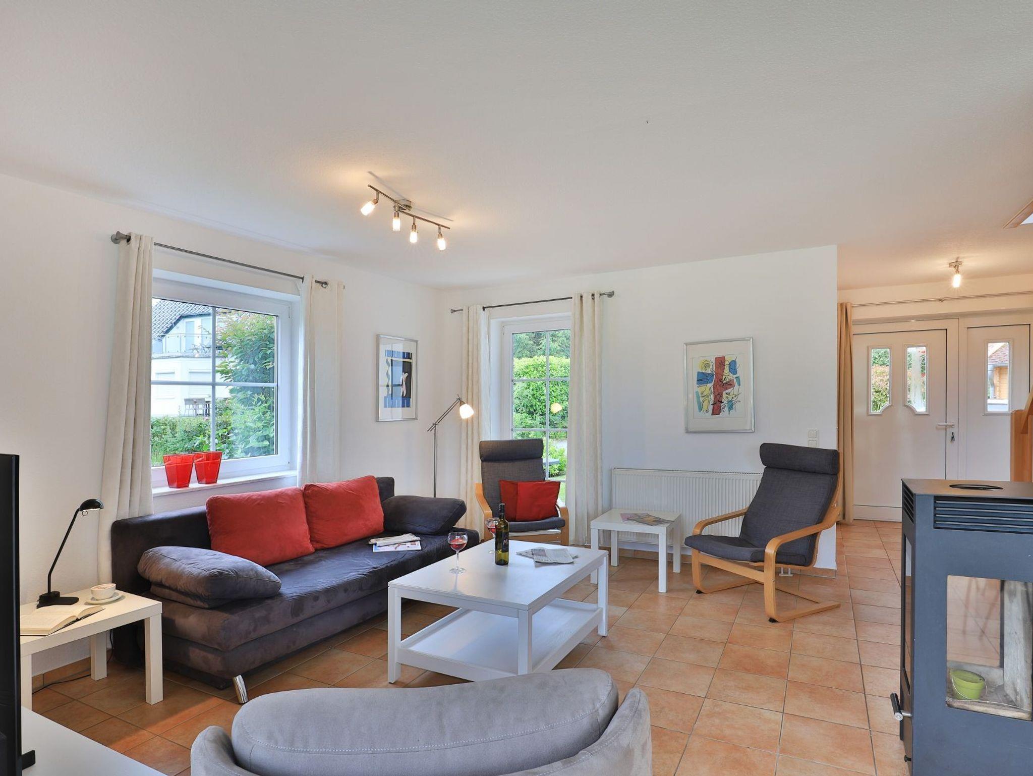 Schon beim Betreten des Hauses werden Sie sich Wohlfühlen. Das Haus Küstenblick ist modern und bestens ausgestattet. Auf einer sehr geräumigen Wohnfläche von 103 m² wohnen bis zu 6 Personen in komfortabler Möblierung. Im hellen Wohn-/Essbereich mit Kaminofen, TV, DVD, Musikanlage steht ein bequemes Sofa, welches auch als Schlafsofa genutzt werden kann. Die angrenzende Komfort Küche ist mit allem ausgestattet, was zur Zubereitung von Urlaubsmahlzeiten benötigt wird so. z.B. Herd mit Ceranfeld und Backofen, Mikrowelle, Dunstabzugshaube, Geschirrspüler, Kaffeemaschine, Toaster und weiteres. Direkt vom Esstisch mit Blick in den Garten gelangt man auf die schöne Terrasse. Auf der unteren Etage finden Sie auch eine hauseigene Sauna und eine Waschmaschine ist ebenfalls vorhanden. Im oberen Bereich des Ferienhauses sind zwei Schlafzimmer jeweils mit einem Doppelbett sowie das Vollbad mit Dusche, Badewanne, Fön und Fenster. Für Ihren PKW ist ein kostenfreier Stellplatz vorhanden.