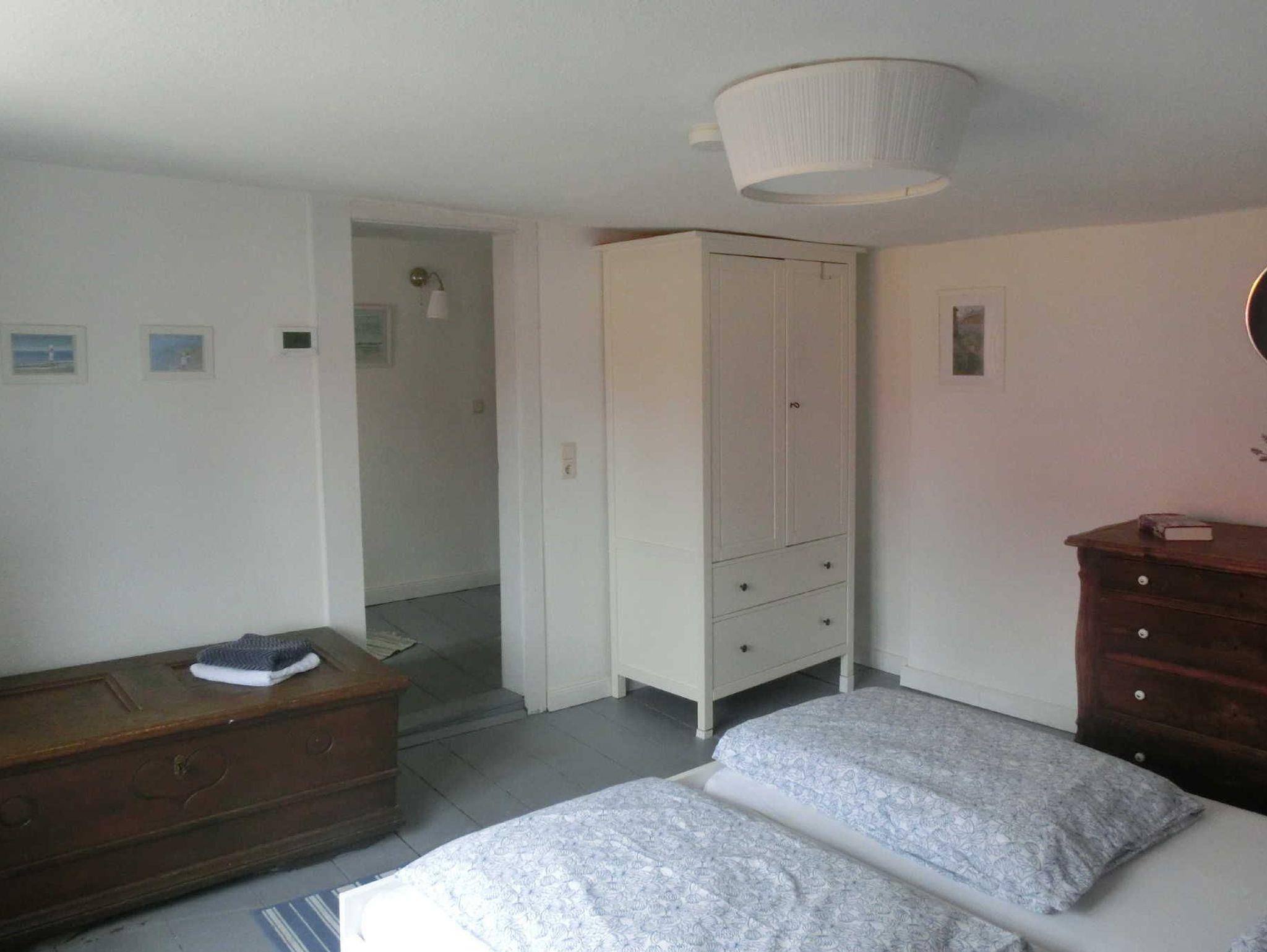 Geräumiges Elternschlafzimmer mit Doppelbett, Schrank, Kommoden sowie Kinderschlafzimmer mit Dachschräge/Gaube.