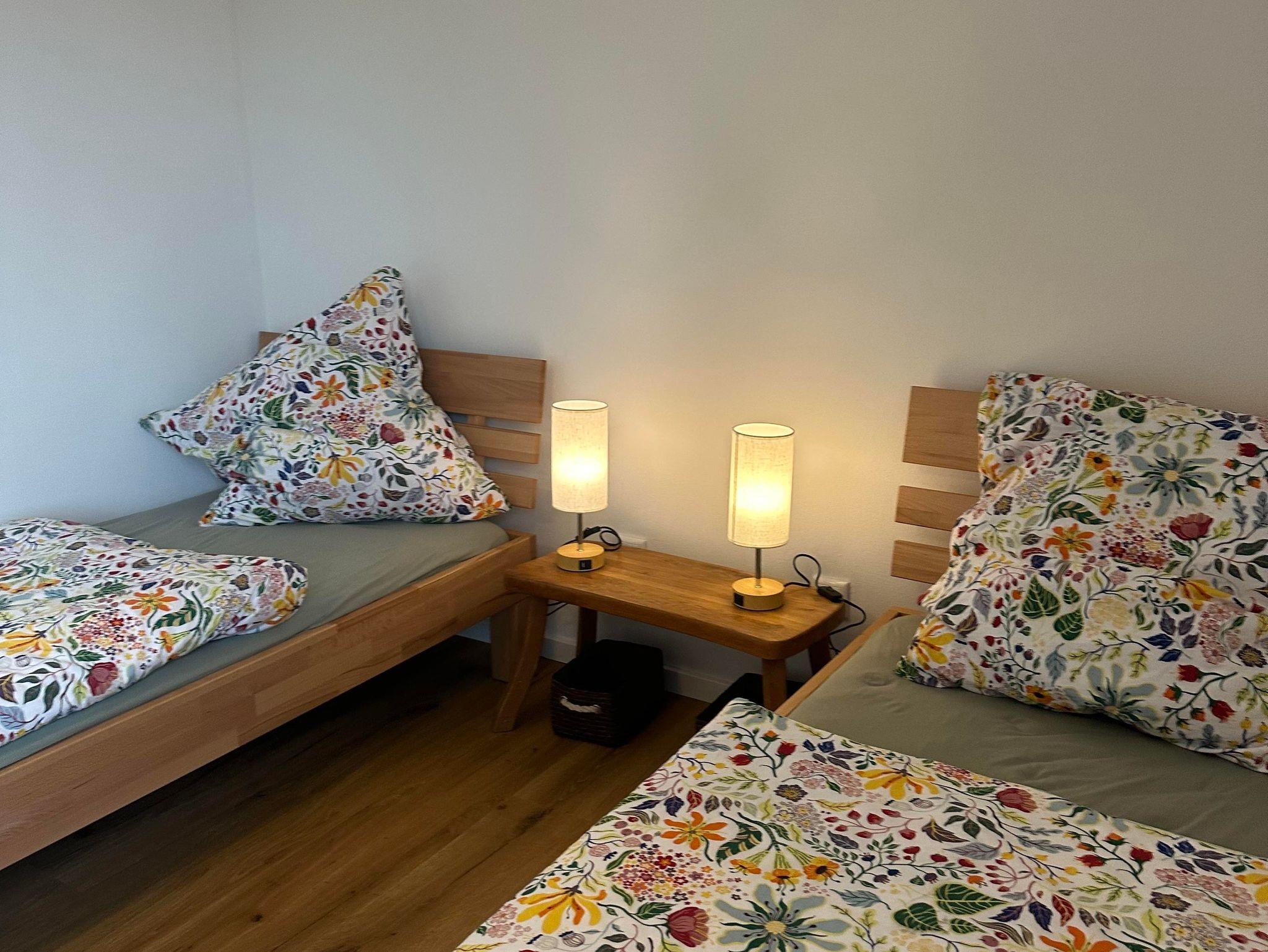 Das Haus Eifelkind verfügt über drei Schlafzimmer, zwei mit jeweils einem Doppelbett und eins mit zwei Einzelbetten (90x200), die auch problemlos zusammengeschoben werden können. Ein Schlafzimmer ist mit einem Arbeitsplatz ausgestattet, sodass auch mobiles Arbeiten aufgrund des vorhandenen wlans problemlos möglich ist. In einem Schlafzimmer ist es aufgrund der Größe möglich, ein Kinder- oder Beistellbett zuzustellen.