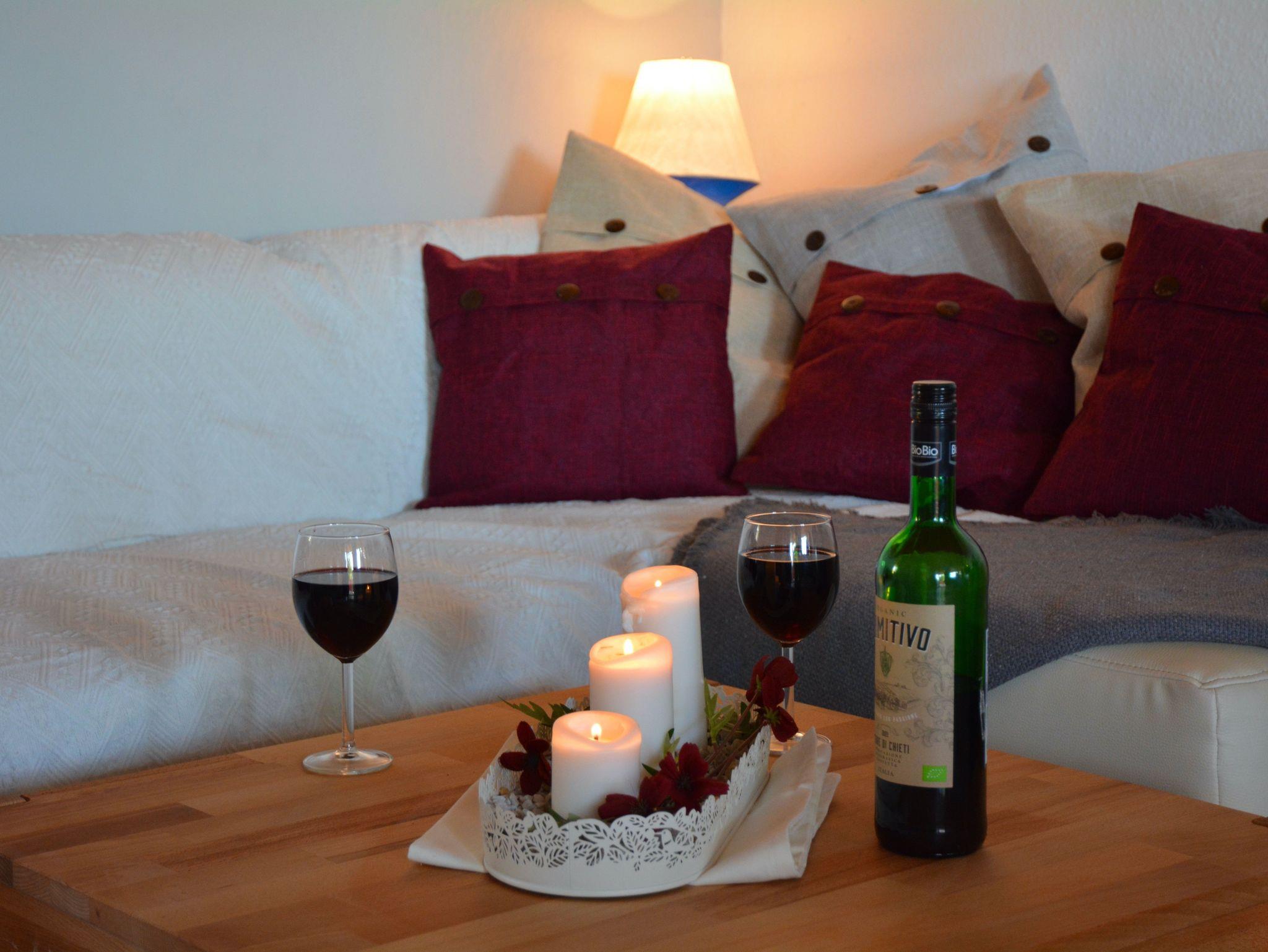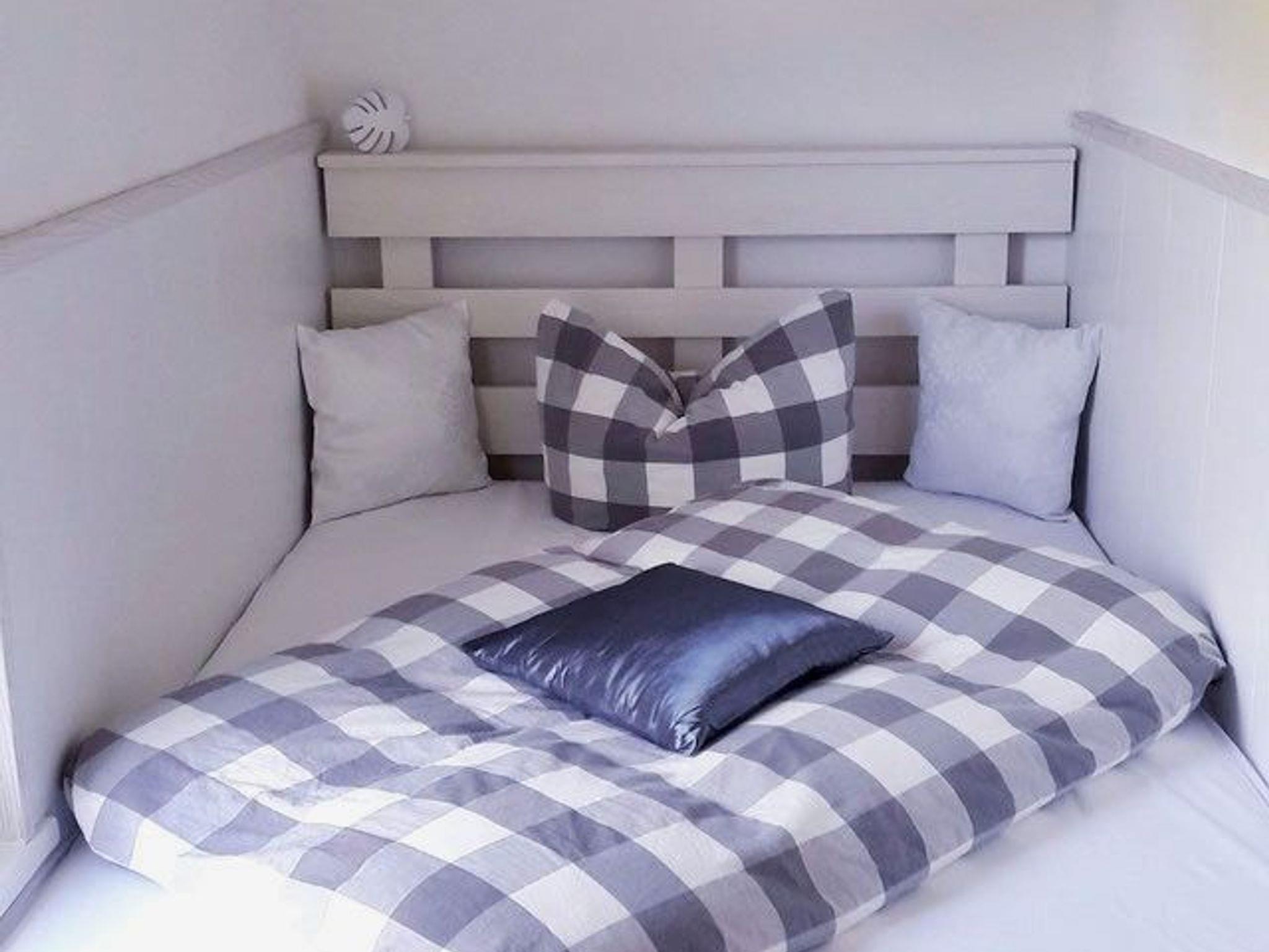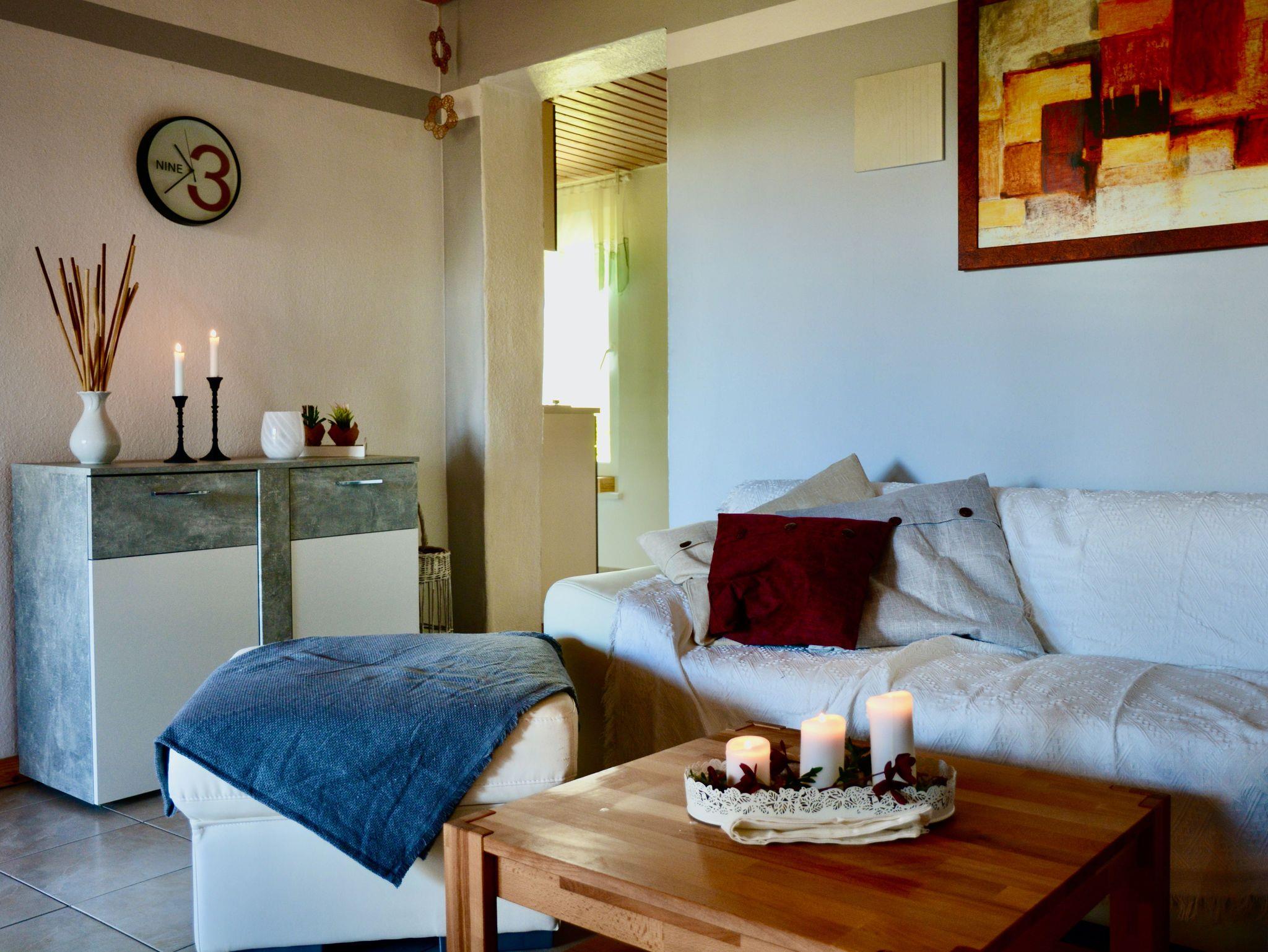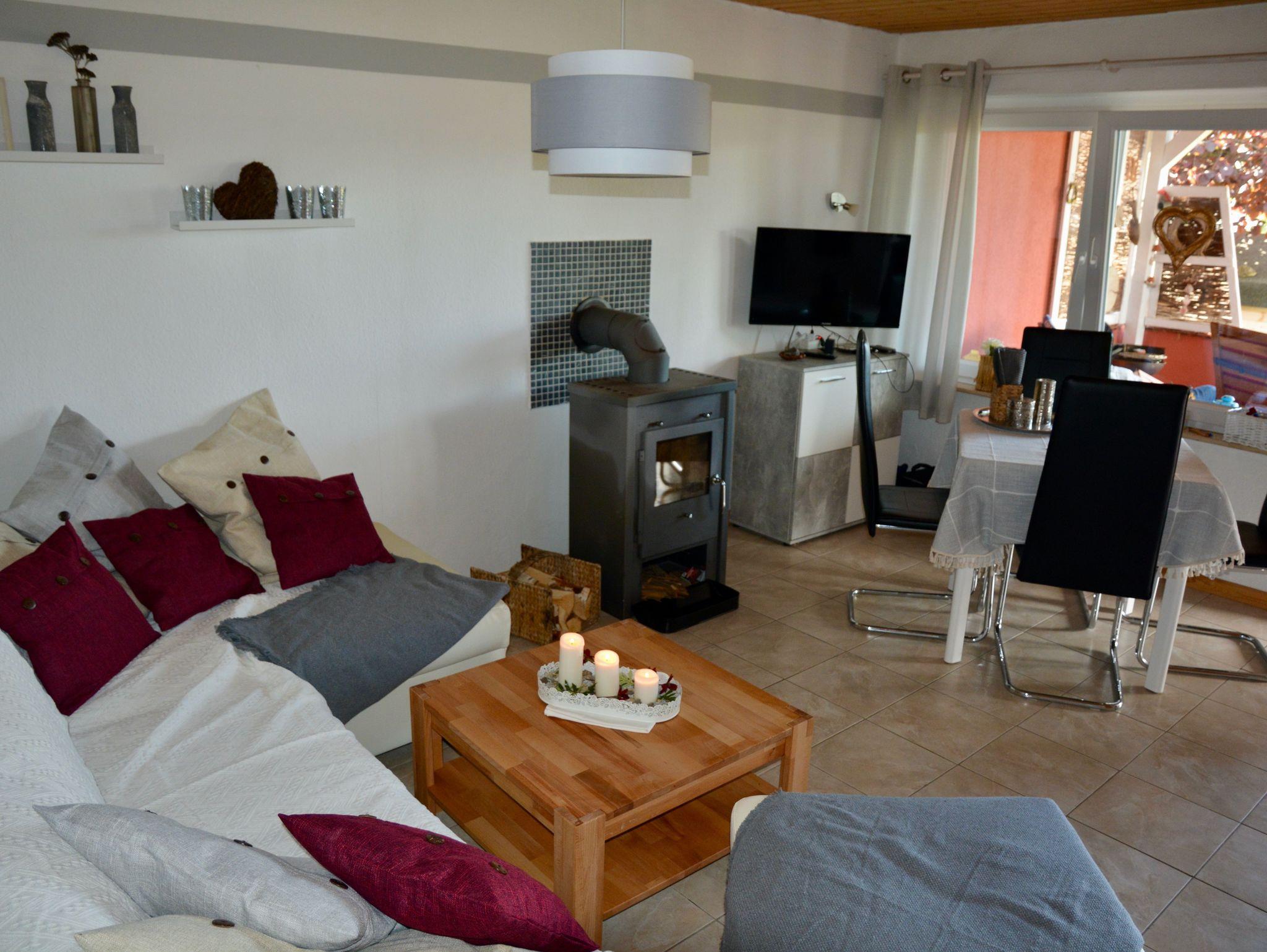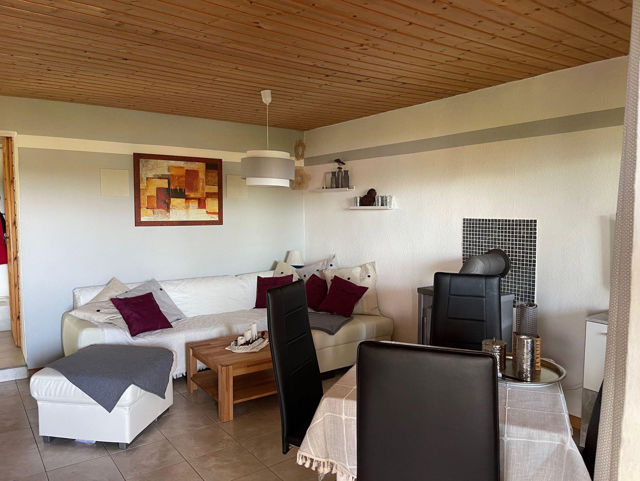 Das geräumige Wohnzimmer mit Flachbild-Sat-TV, bietet genügend Platz für bis zu vier Personen. Für kühle Abende steht ein Holzkaminofen zur Verfügung. Im Schlafzimmer und der Kuschel-Bett-Ecke finden bis zu 4 Personen einen Schlafplatz.
