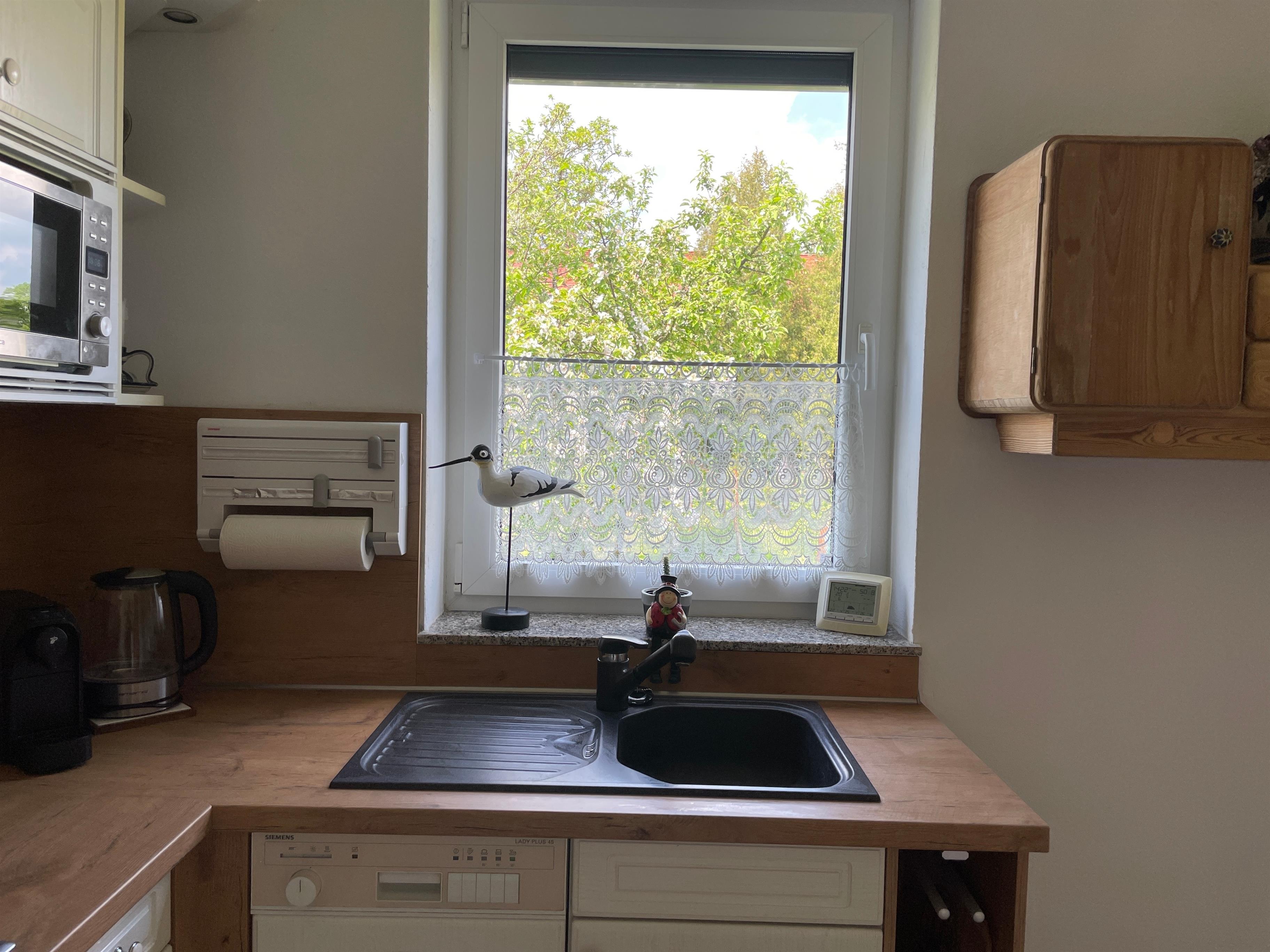 Es gibt einen Kaffeeautomaten und auch die Erstausstattung Tabs finden Sie bei Ihrer Anreise vor .