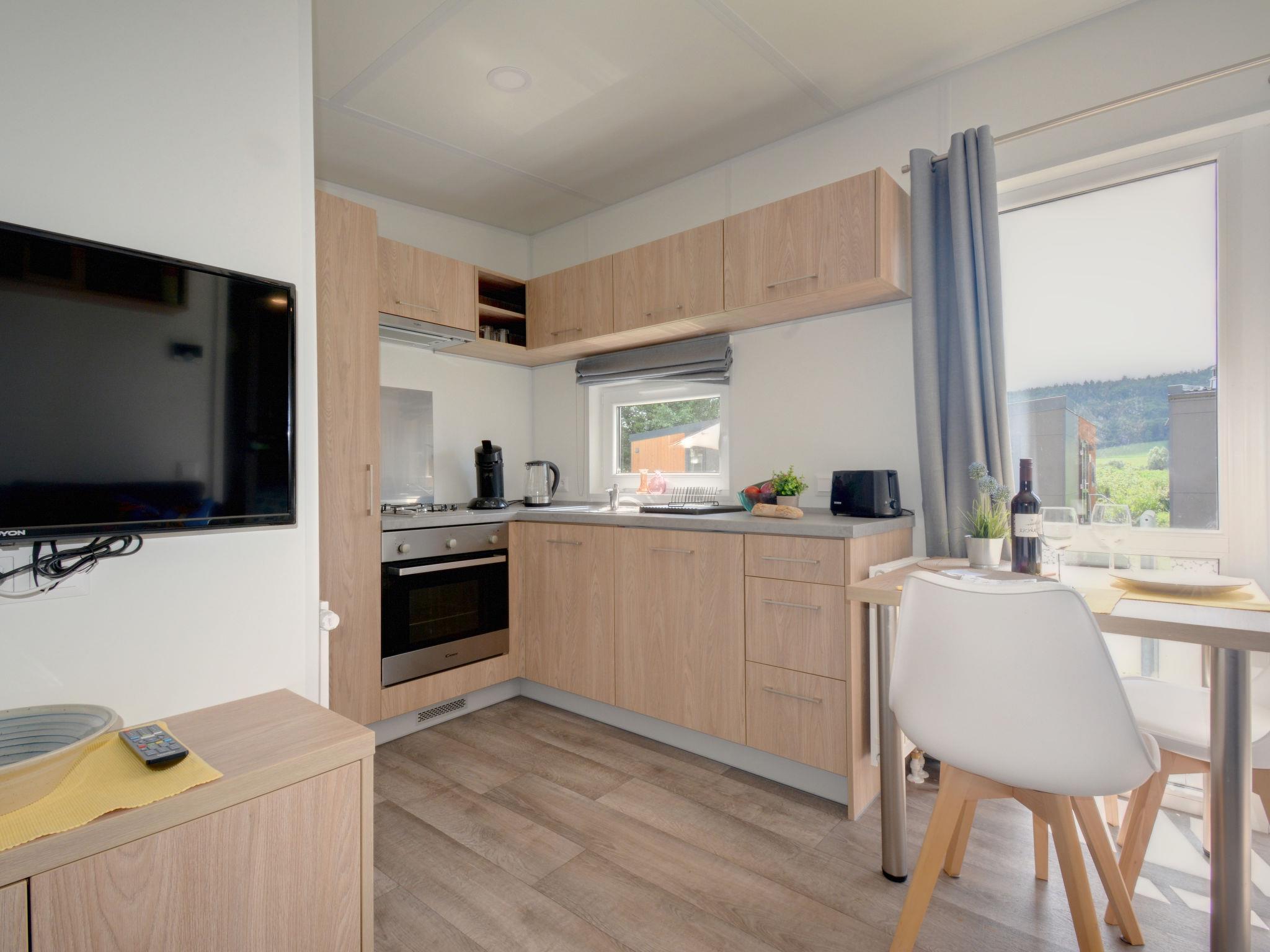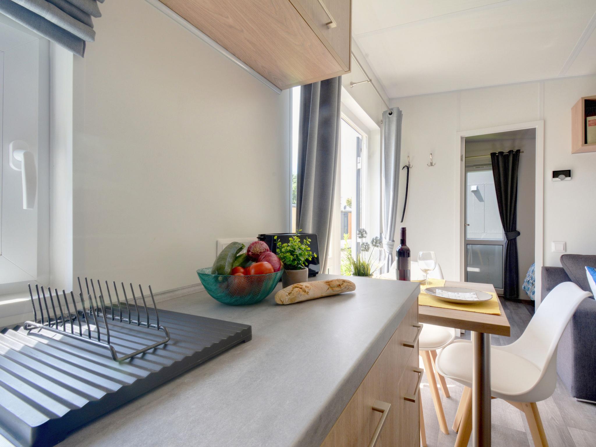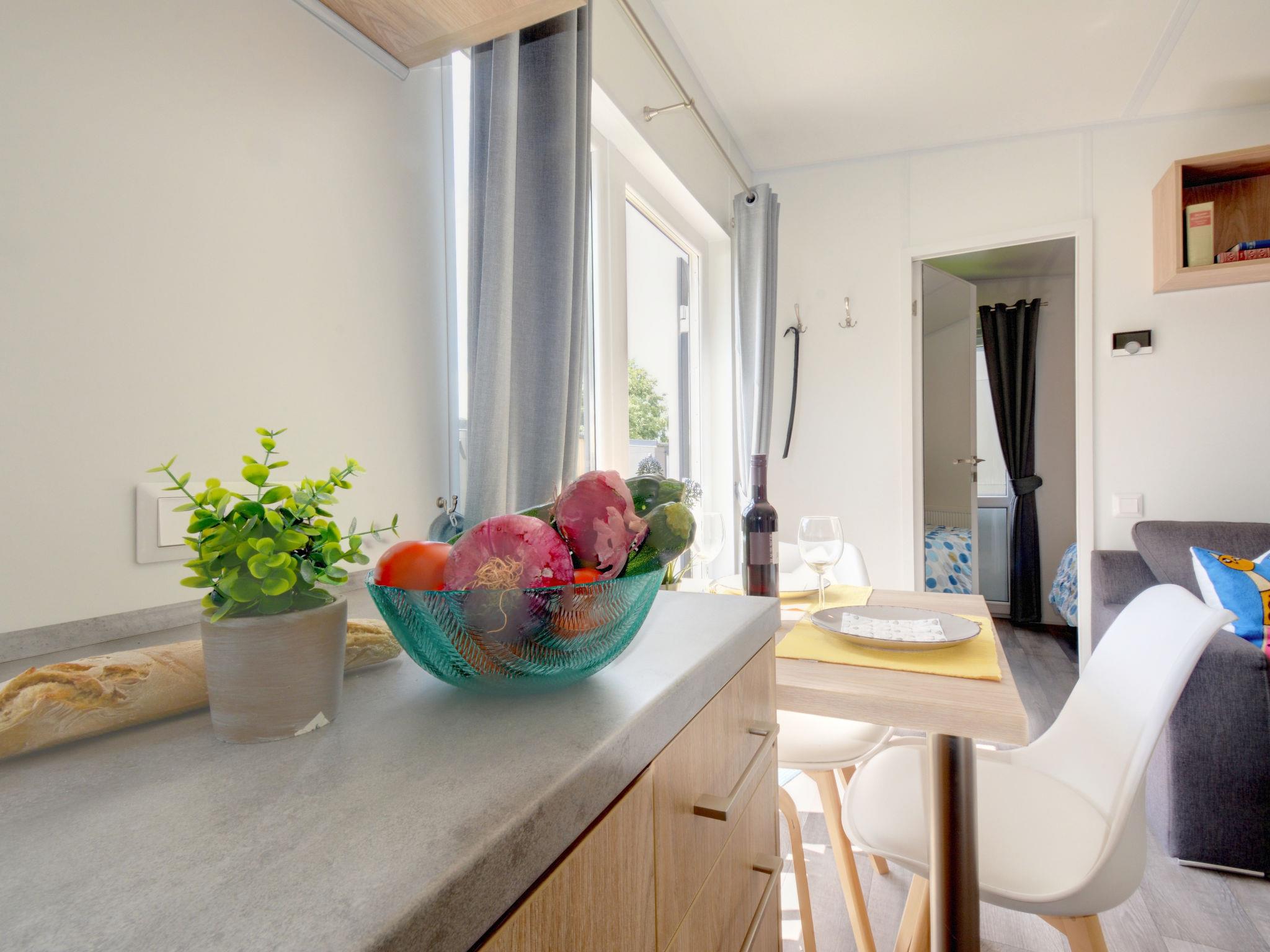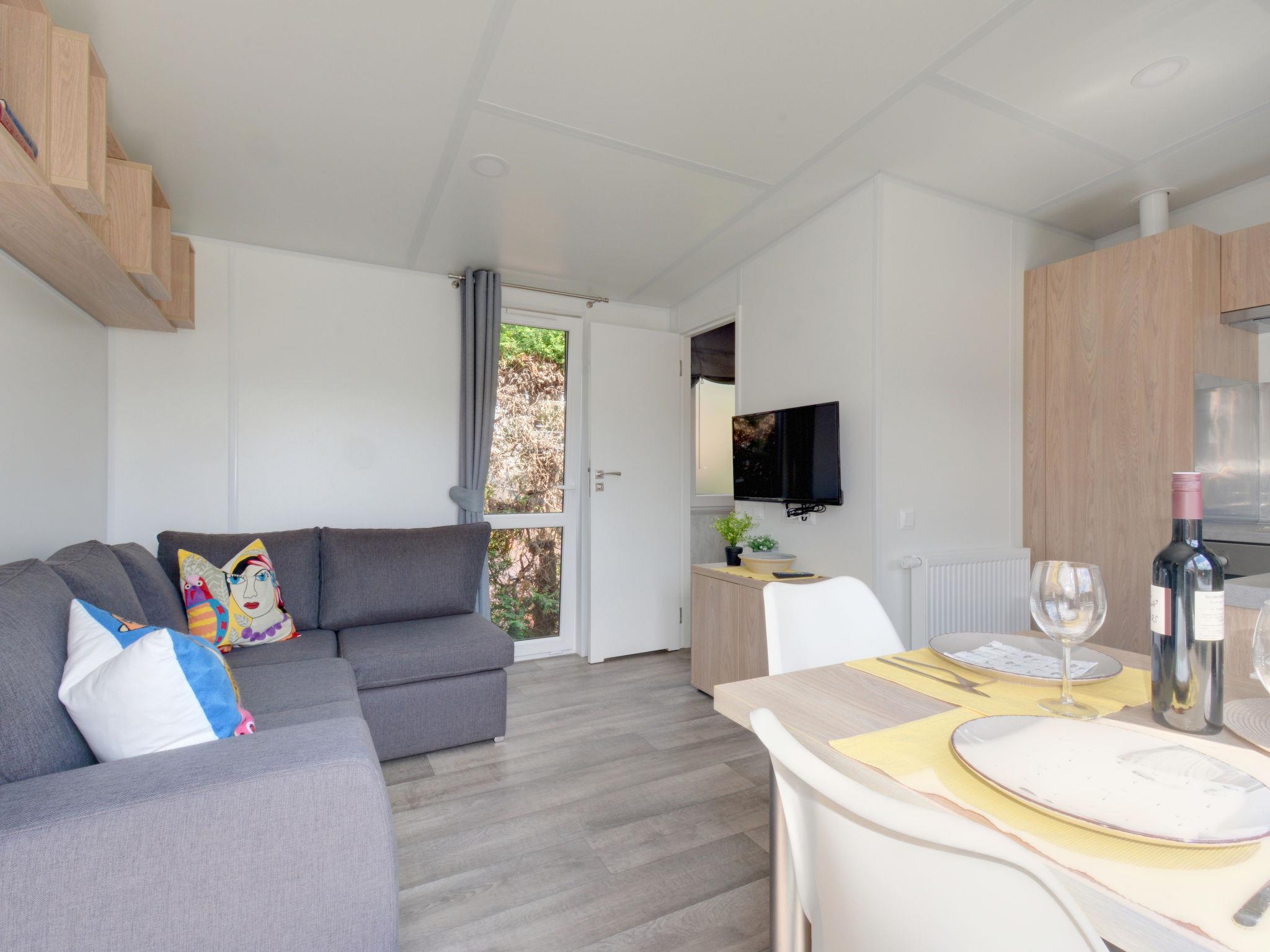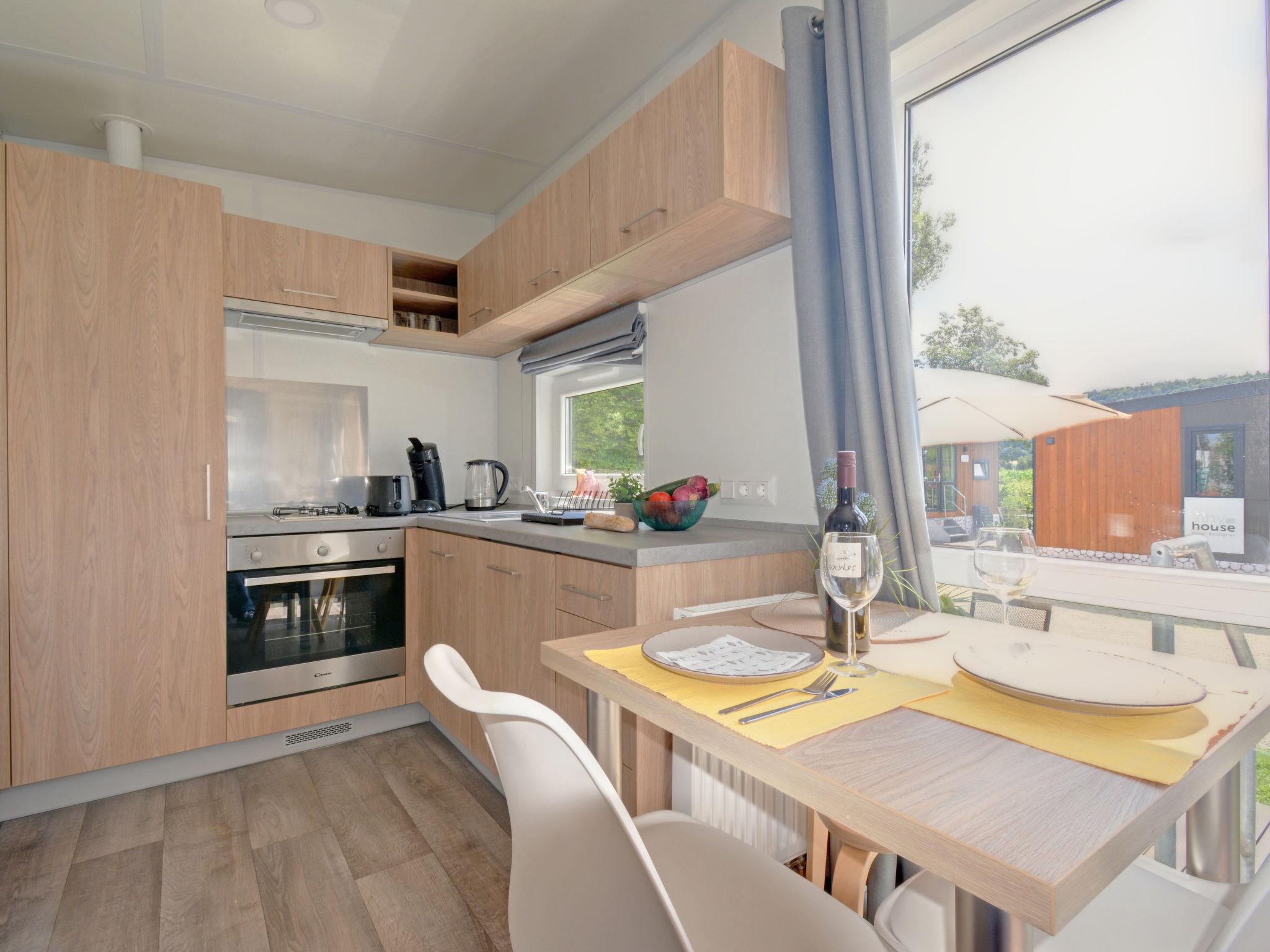 "Tiny Haus Selma", 2-Zimmer-Mobilheim 25 m2. Objekt geeignet für 2 Erwachsene + 2 Kinder. Gemütlich eingerichtet: Wohn-/Schlafzimmer mit 1 Diwanbett (120 cm, Länge 170 cm), Sat-TV. 1 Zimmer mit 1 franz. Bett (140 cm, Länge 200 cm). Offene Küche (Backofen, Gasherd, 2 Flammen, Wasserkocher, elektrische Kaffeemaschine). Dusche/WC. G-Heizung. Kleine Terrasse. Terrassenmöbel. Parkplatz in 50 m. Bitte beachten: Nichtraucher-Haus. Maximal 1 Haustier/Hund erlaubt.