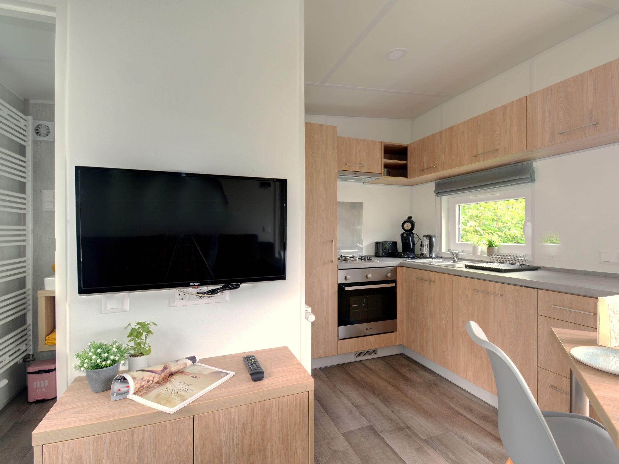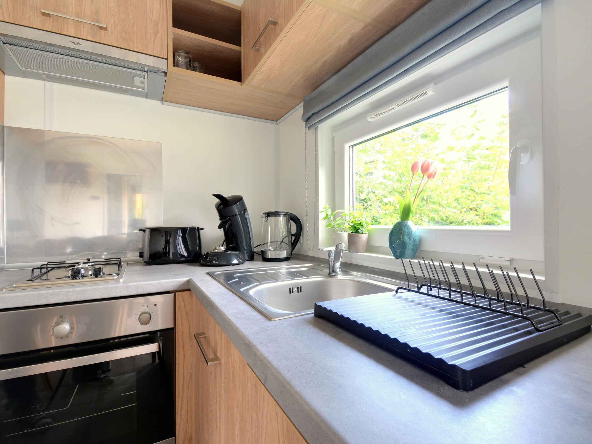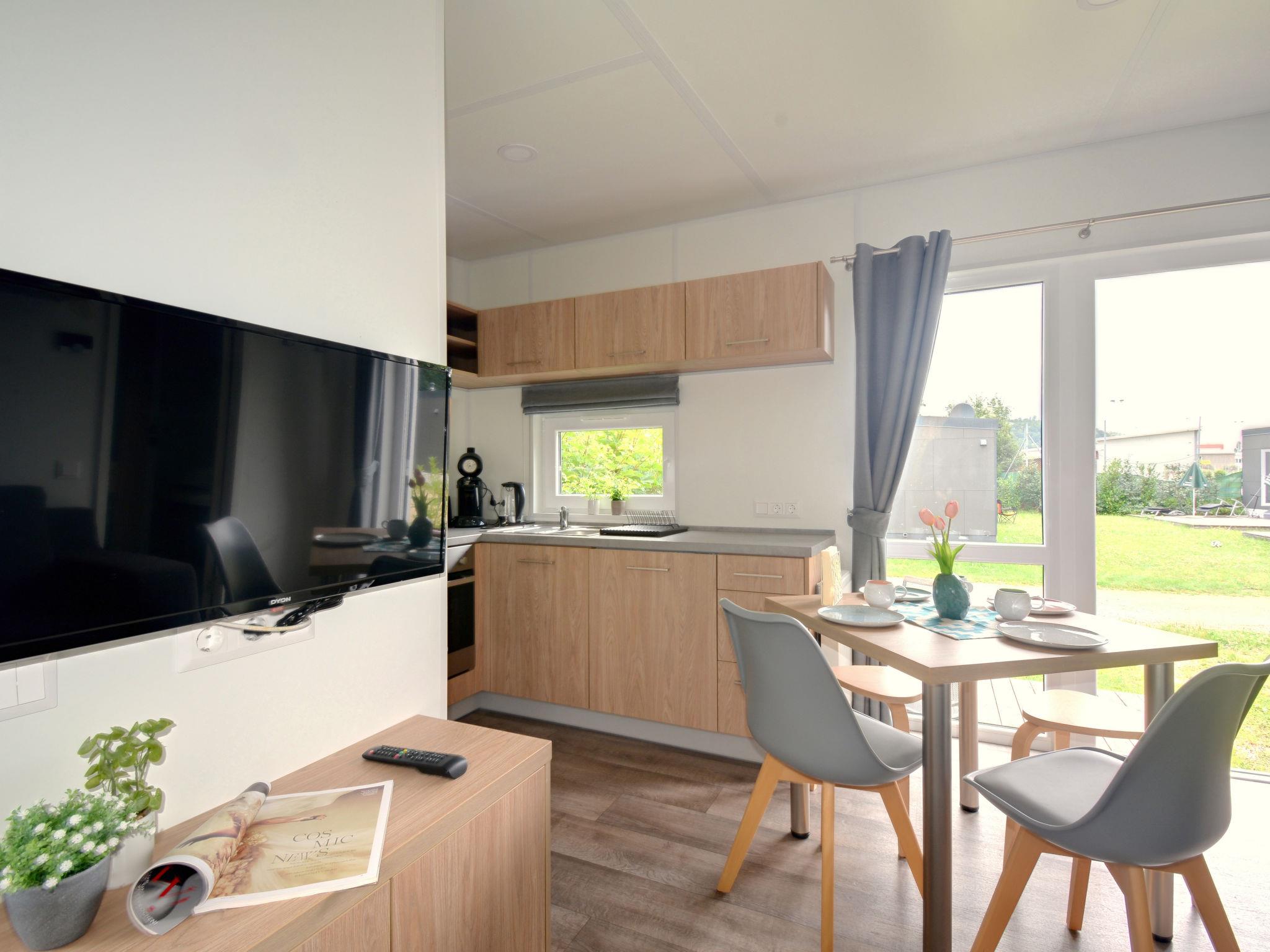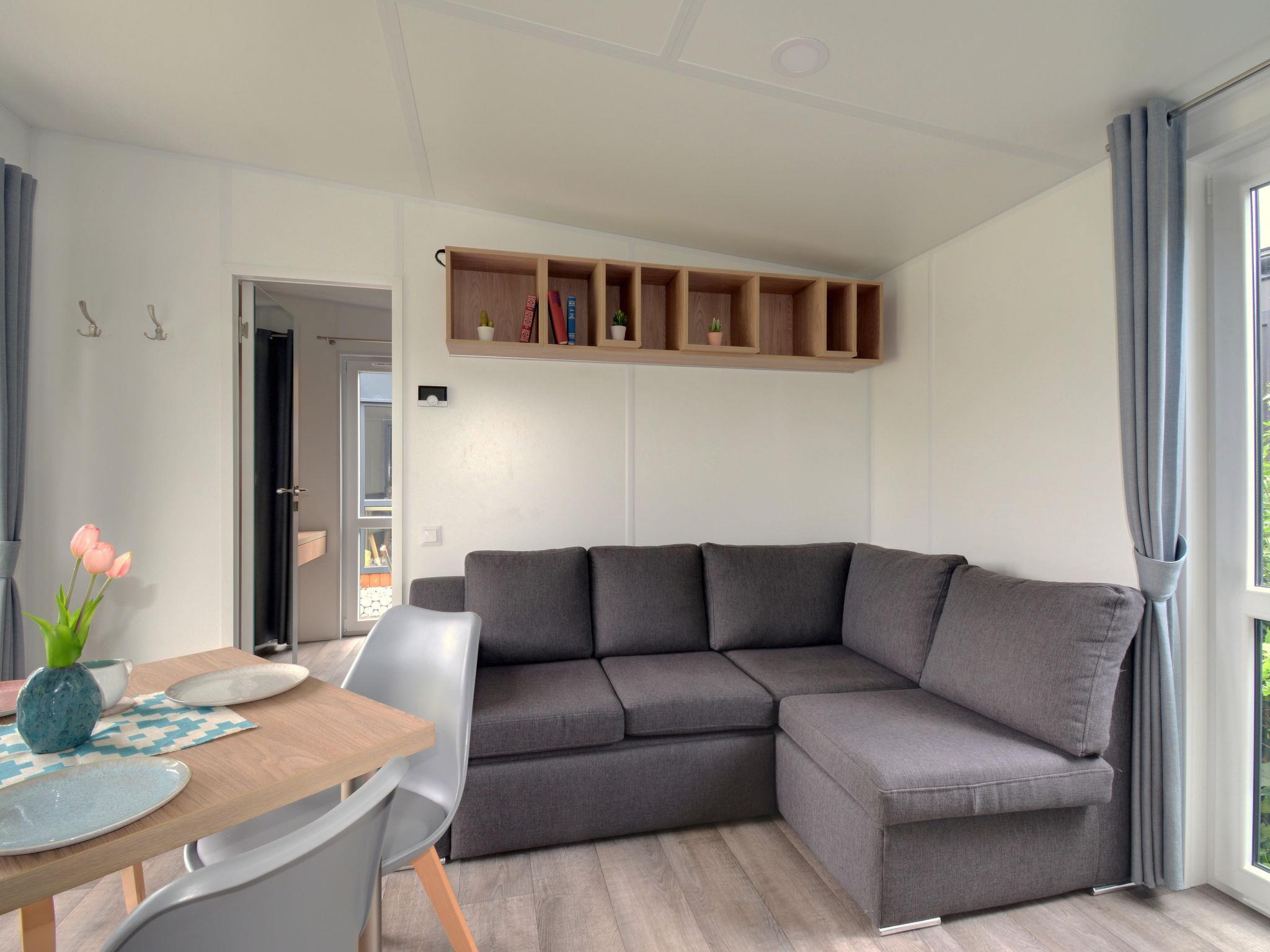"Tiny Haus Sunny", 2-Zimmer-Mobilheim 25 m2. Objekt geeignet für 2 Erwachsene + 2 Kinder. Gemütlich eingerichtet: Wohn-/Schlafzimmer mit 1 Diwanbett (120 cm, Länge 170 cm), Sat-TV. 1 Zimmer mit 1 franz. Bett (140 cm, Länge 200 cm). Offene Küche (Backofen, Gasherd, 2 Flammen, Wasserkocher, elektrische Kaffeemaschine). Dusche/WC. G-Heizung. Kleine Terrasse. Terrassenmöbel. Parkplatz in 50 m. Bitte beachten: Nichtraucher-Haus. Maximal 1 Haustier/Hund erlaubt.
