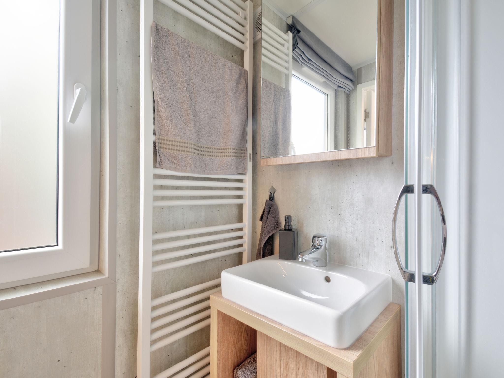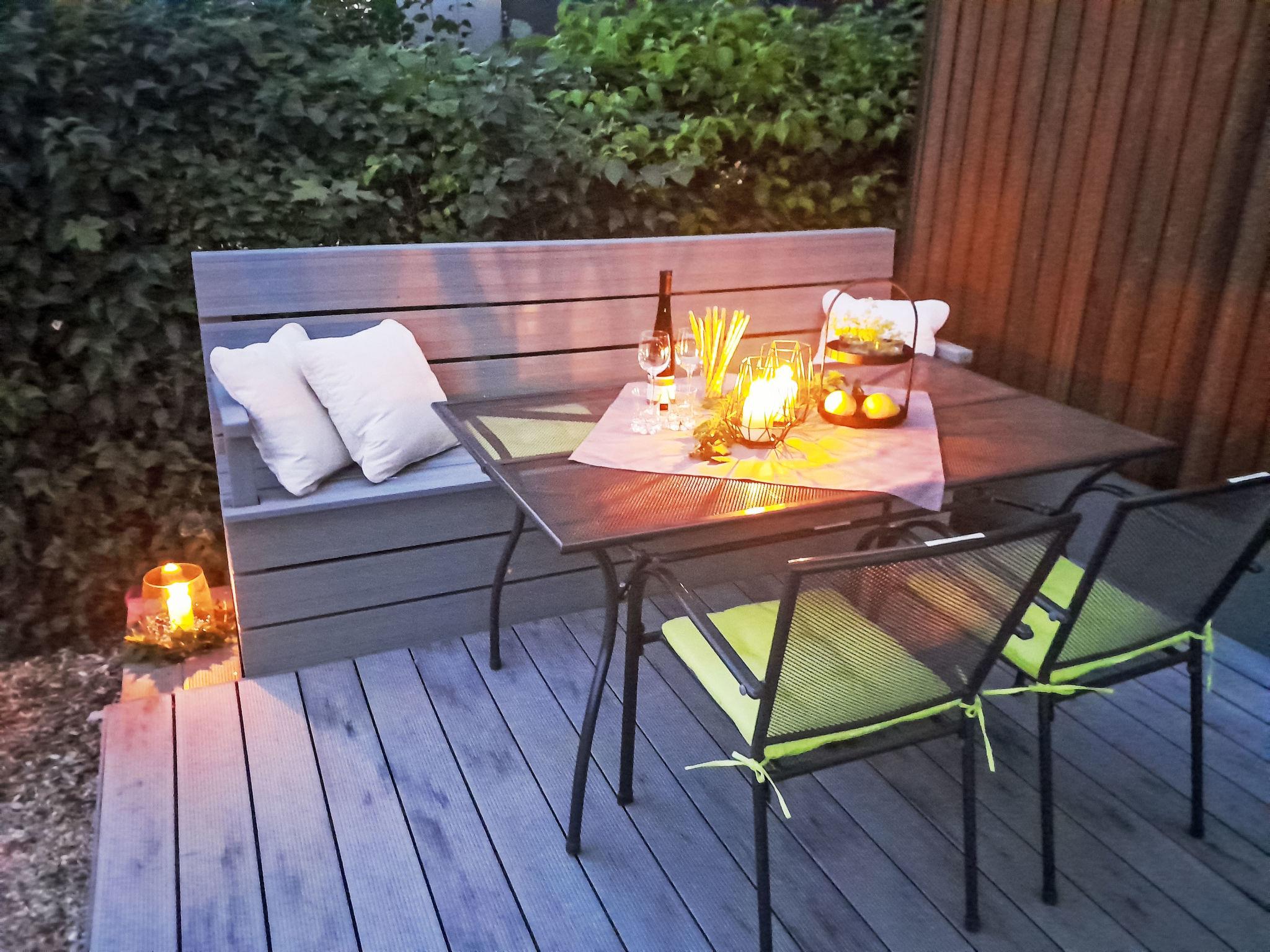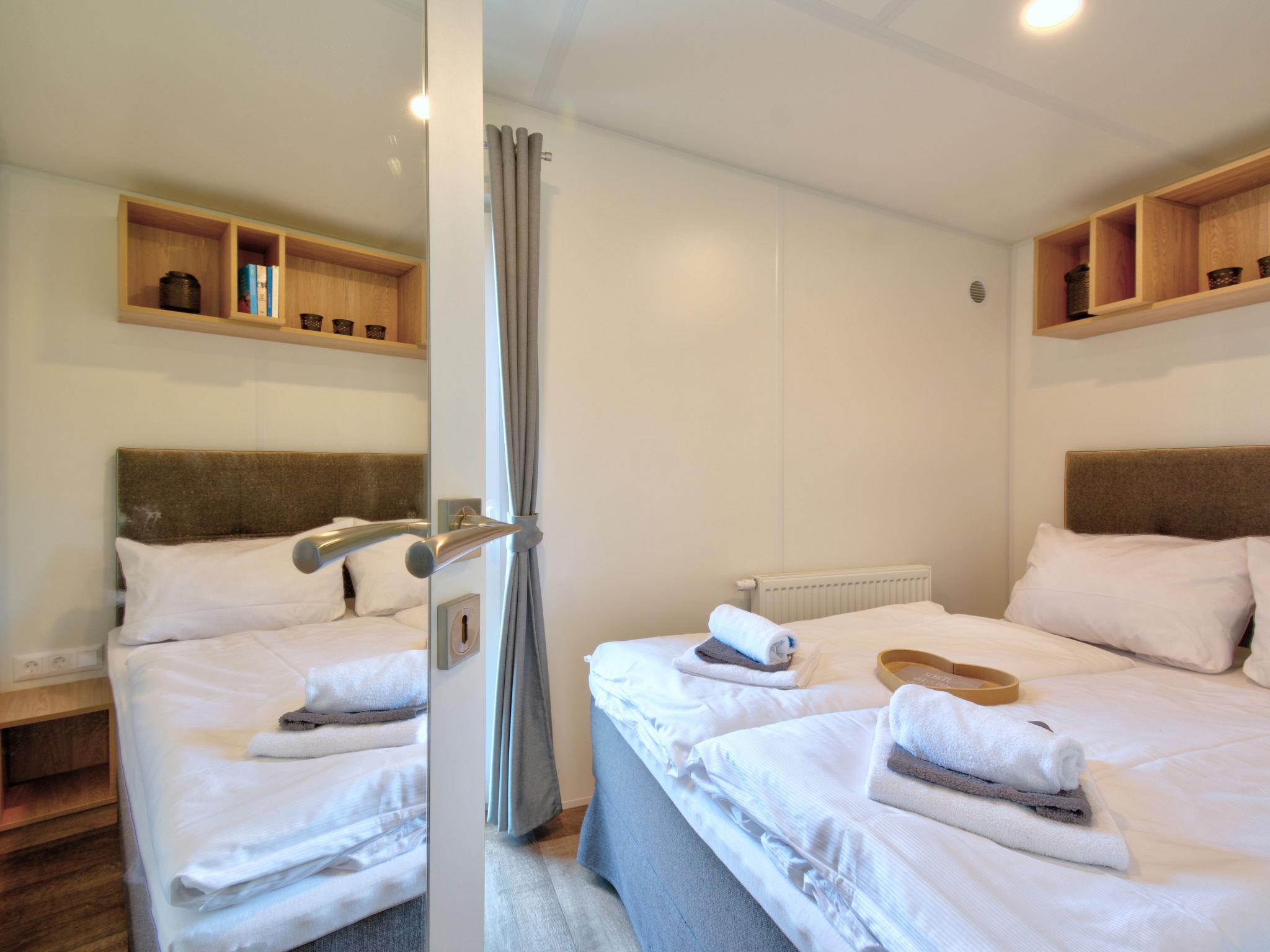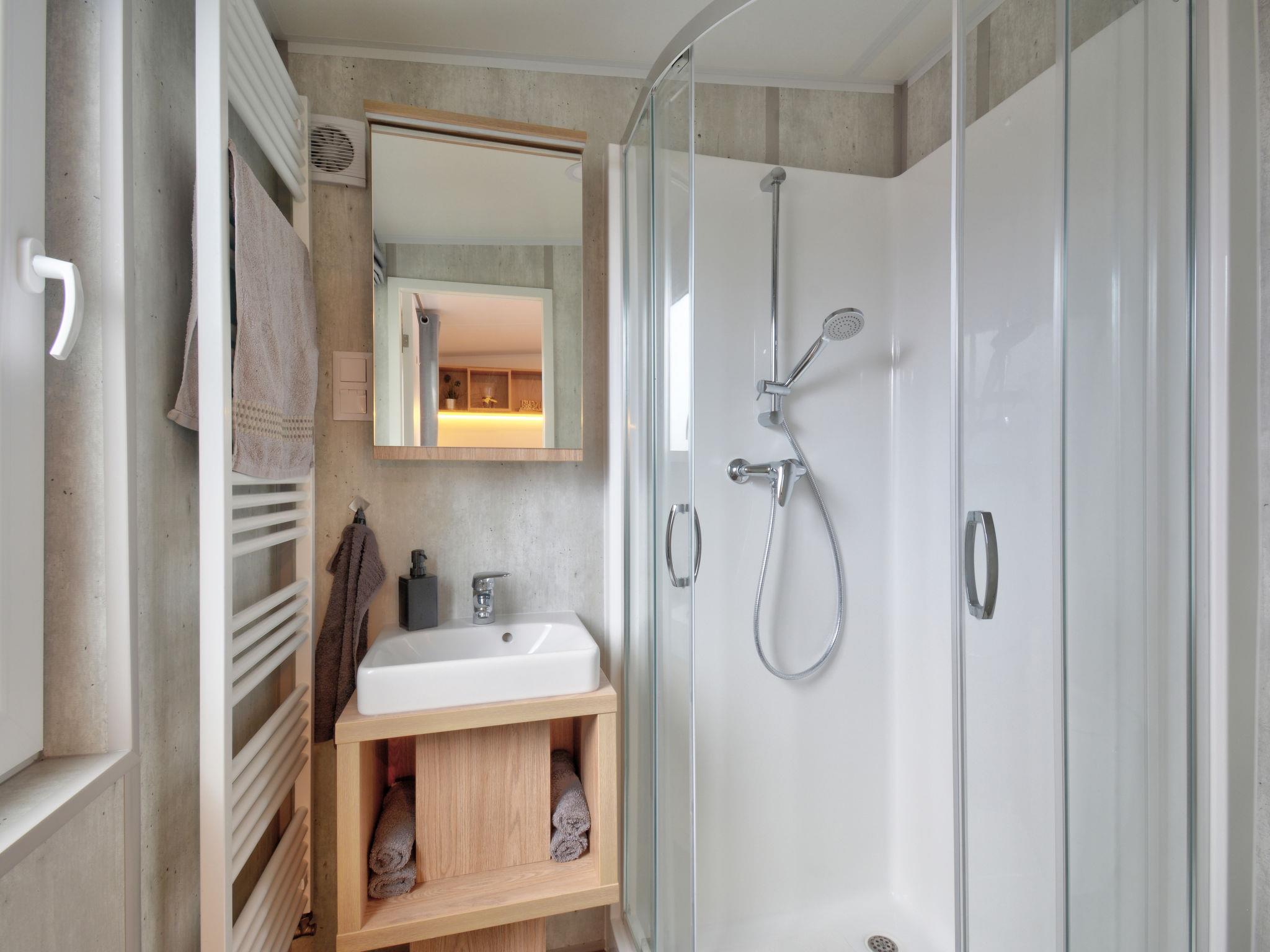 "Tiny Haus Kuschelnest", 2-Zimmer-Mobilheim 25 m2. Objekt geeignet für 2 Erwachsene + 2 Kinder. Gemütlich eingerichtet: Wohn-/Schlafzimmer mit 1 Diwanbett (120 cm, Länge 170 cm), Sat-TV. Ausgang zur Terrasse. 1 Zimmer mit 1 franz. Bett (140 cm, Länge 200 cm). Offene Küche (Backofen, Gasherd, 2 Flammen, Wasserkocher, elektrische Kaffeemaschine). Dusche/WC. G-Heizung. Terrasse. Terrassenmöbel. Parkplatz (1 Auto) beim Haus. Bitte beachten: Nichtraucher-Haus. Maximal 1 Haustier/Hund erlaubt.