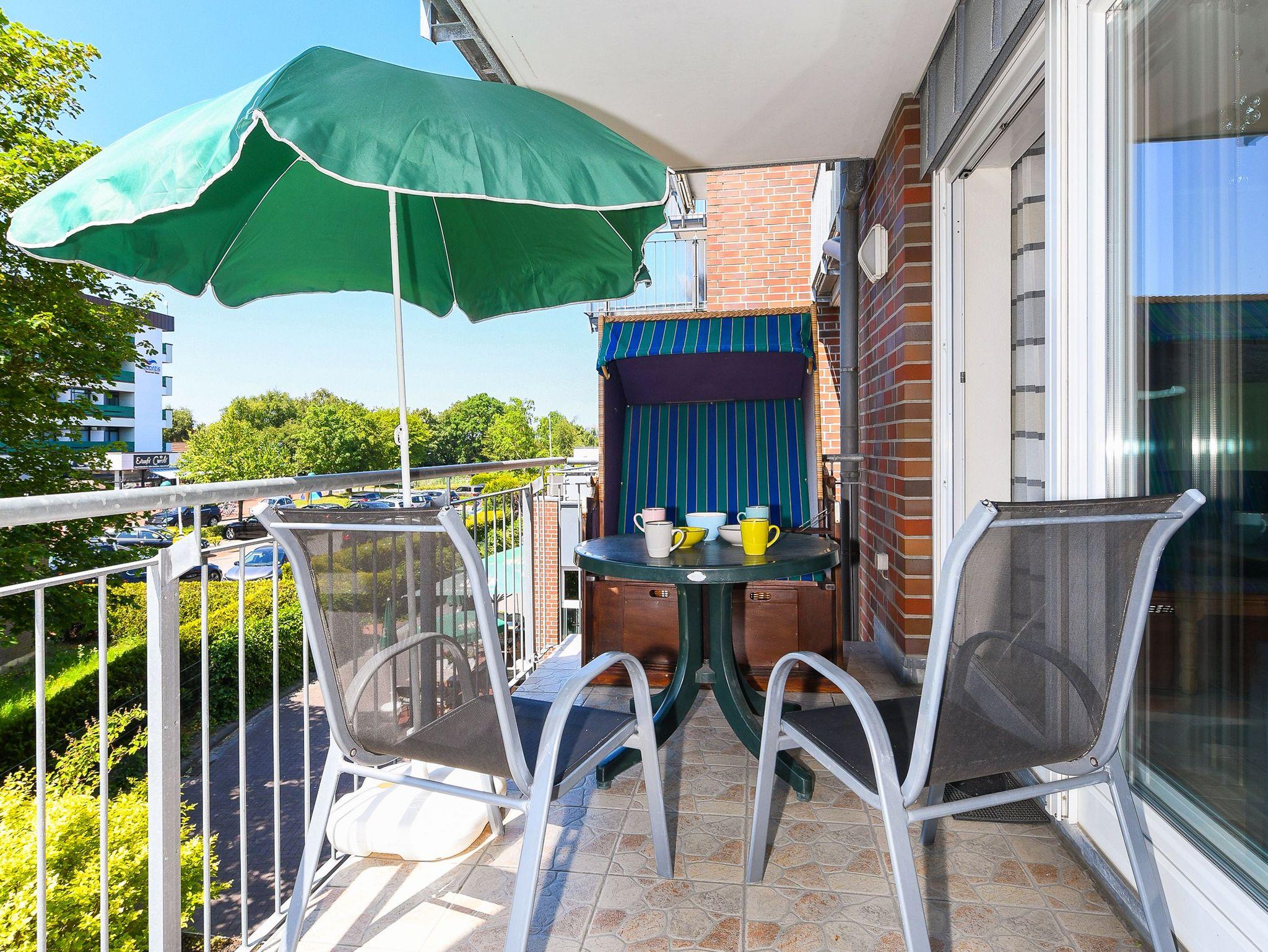 Balkone gibt es in allen Wohnungen, fast alle verdienen das Prädikat Balkonterrasse, denn sie sind groß und mit schönen Gartenmöbeln ausgestattet und sie sind windgeschützt angelegt und teilweise verfügen sie sogar über einen Strandkorb.
